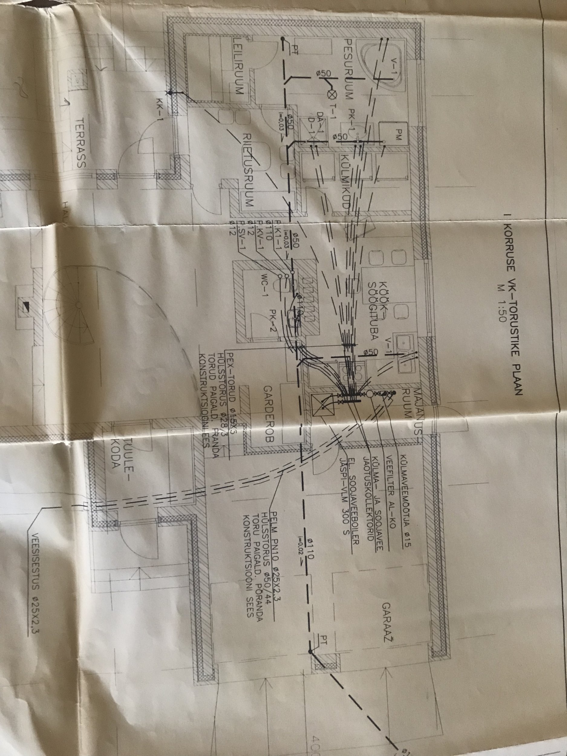Kanalisatsiooni peatrassi (läbi maja 1. korruse) vahetus.