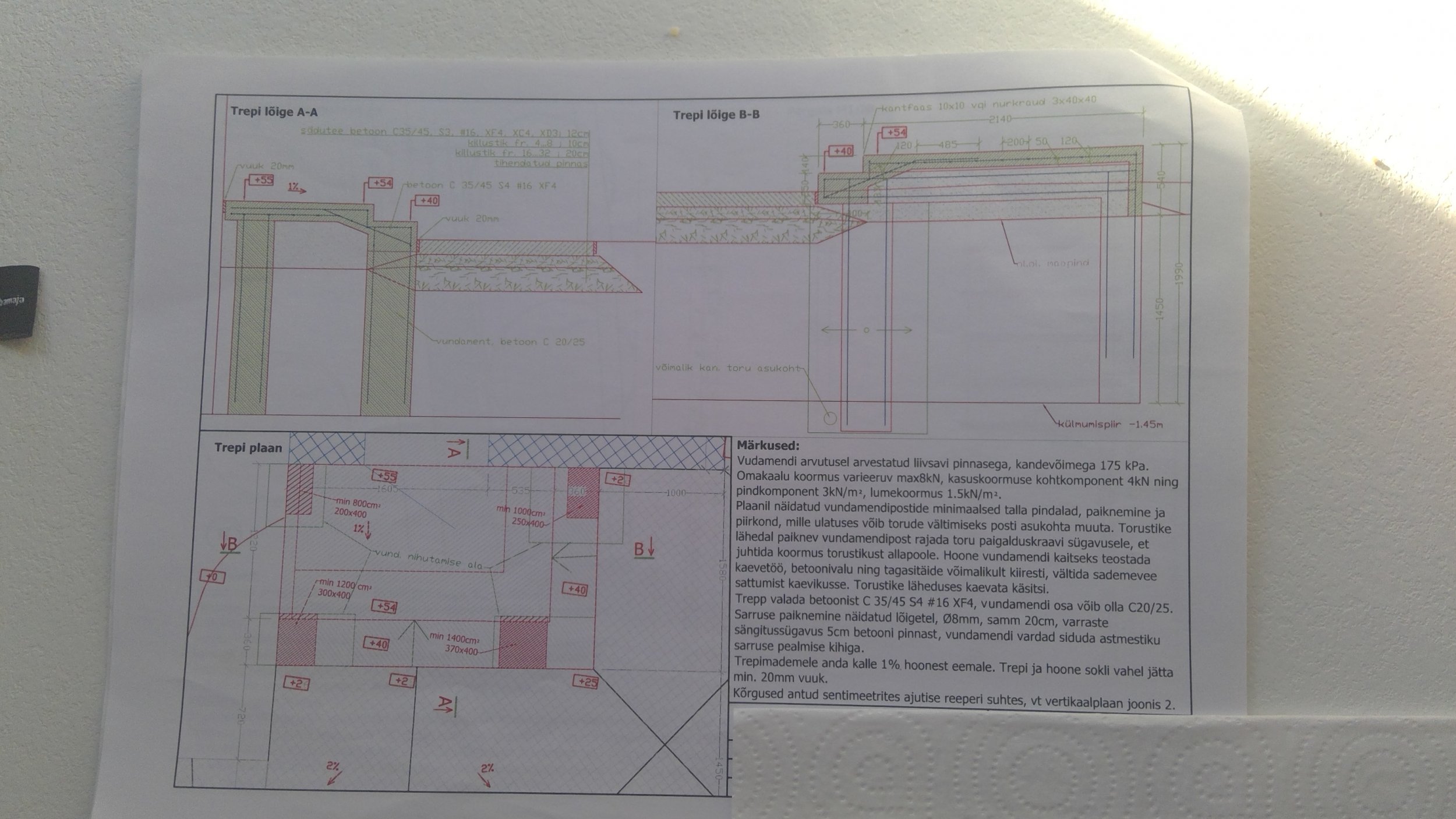 Tartus asuvale eramajale betoontrepi valamine. Ukse esine tasand umbes 1x2m, lisaks üks astet, laiusega 40cm . Hetkel treppi pole, seega lammutama midagi ei pea. Olemas ka trepi joonis.