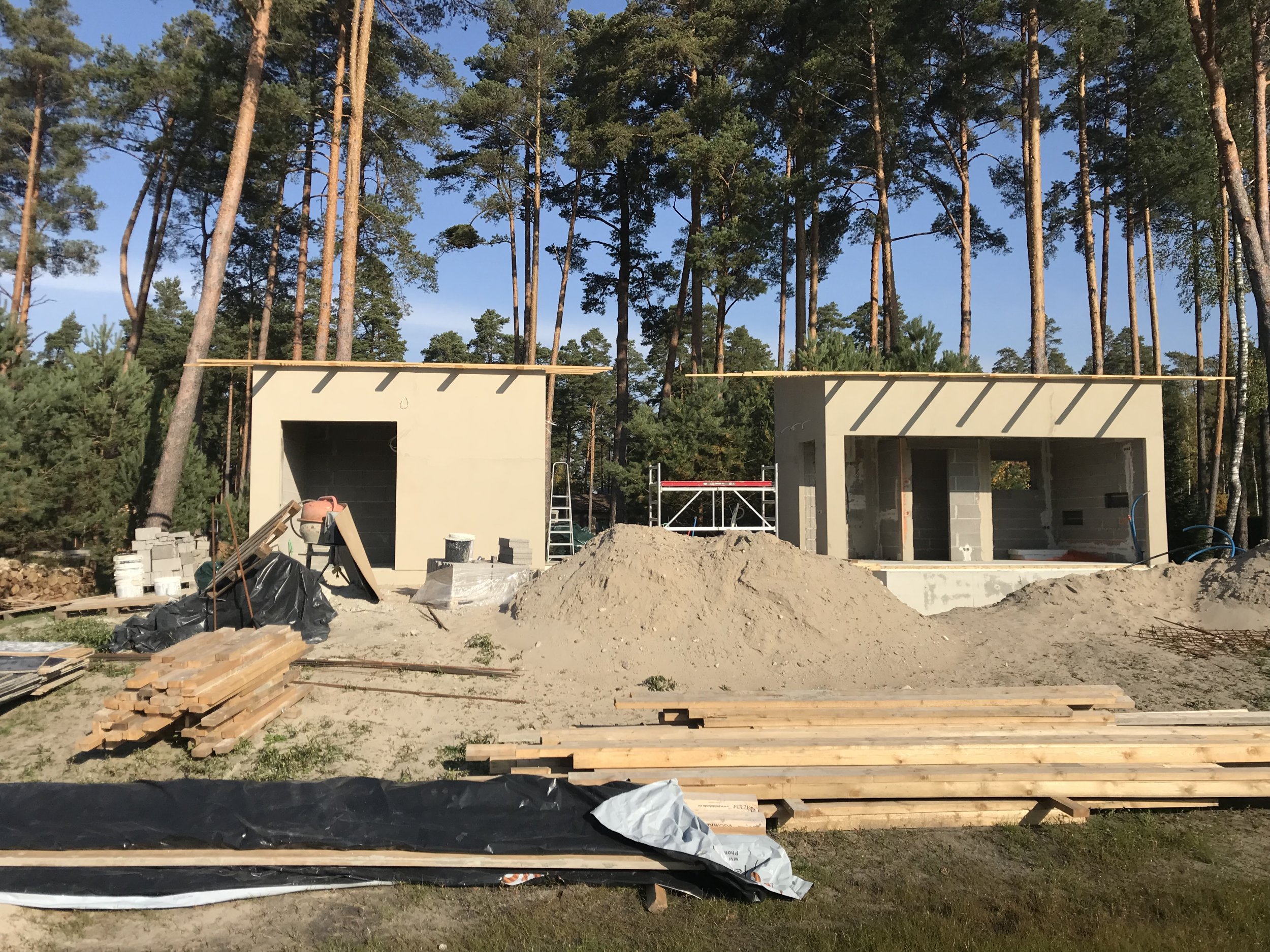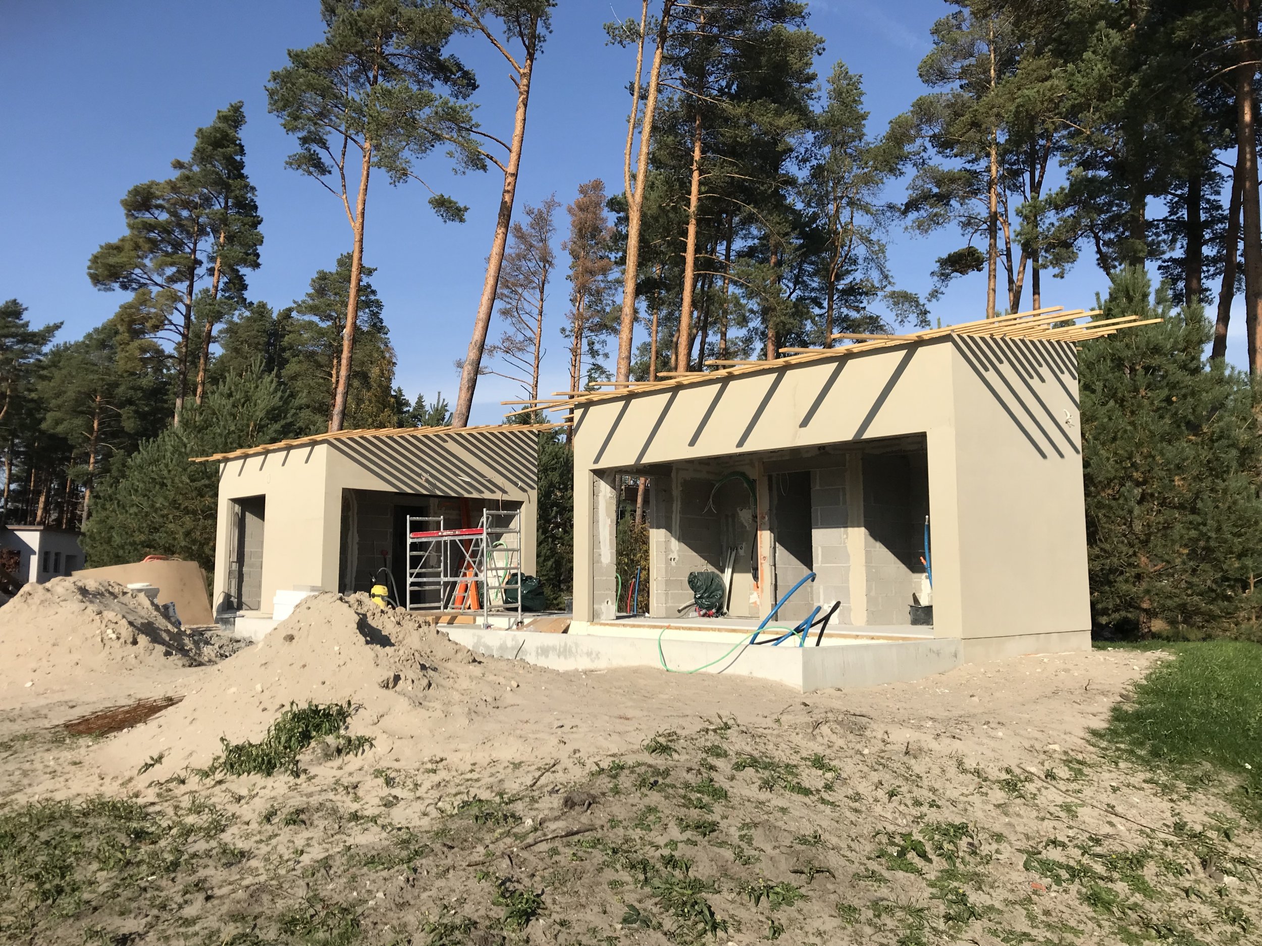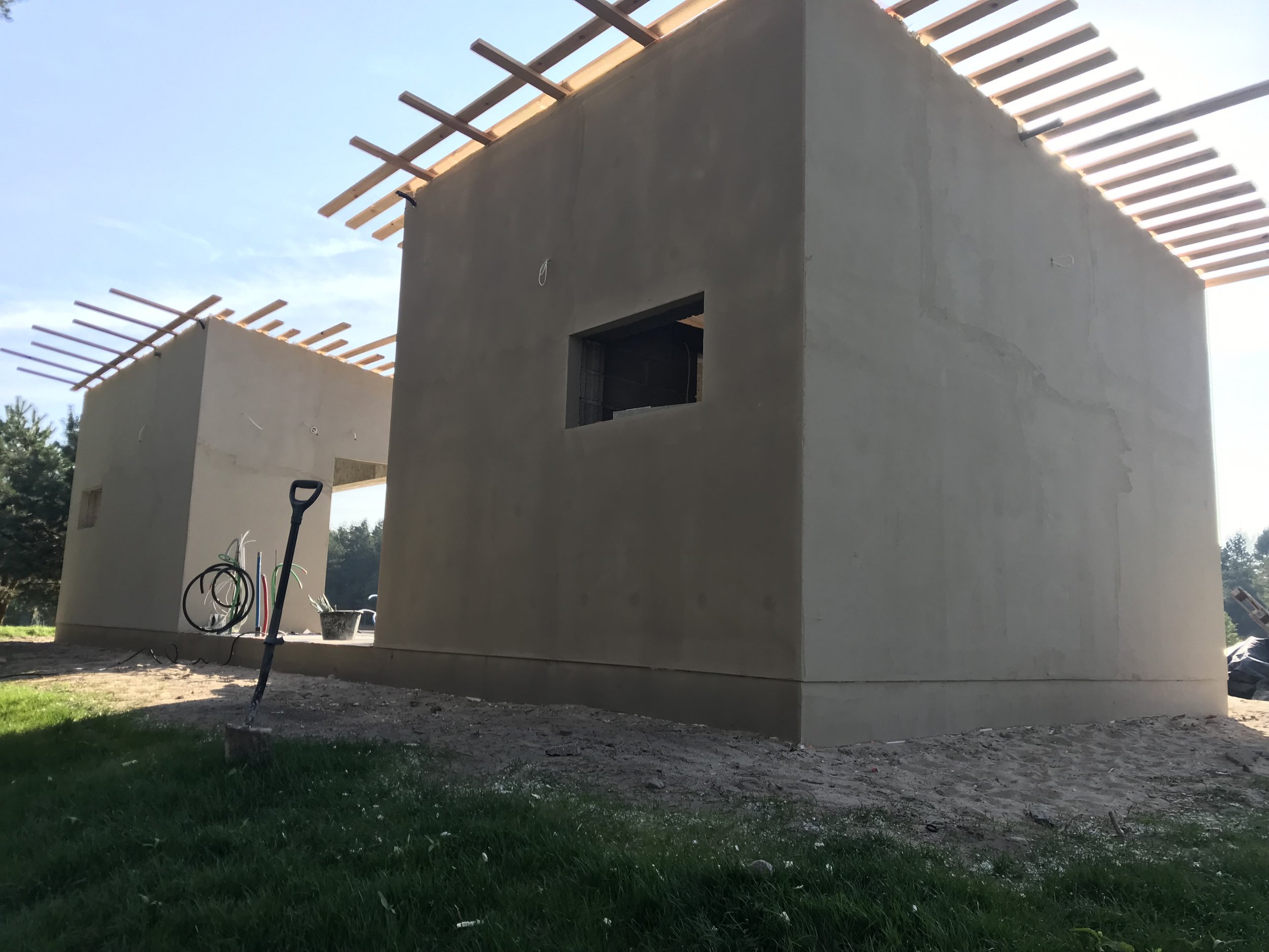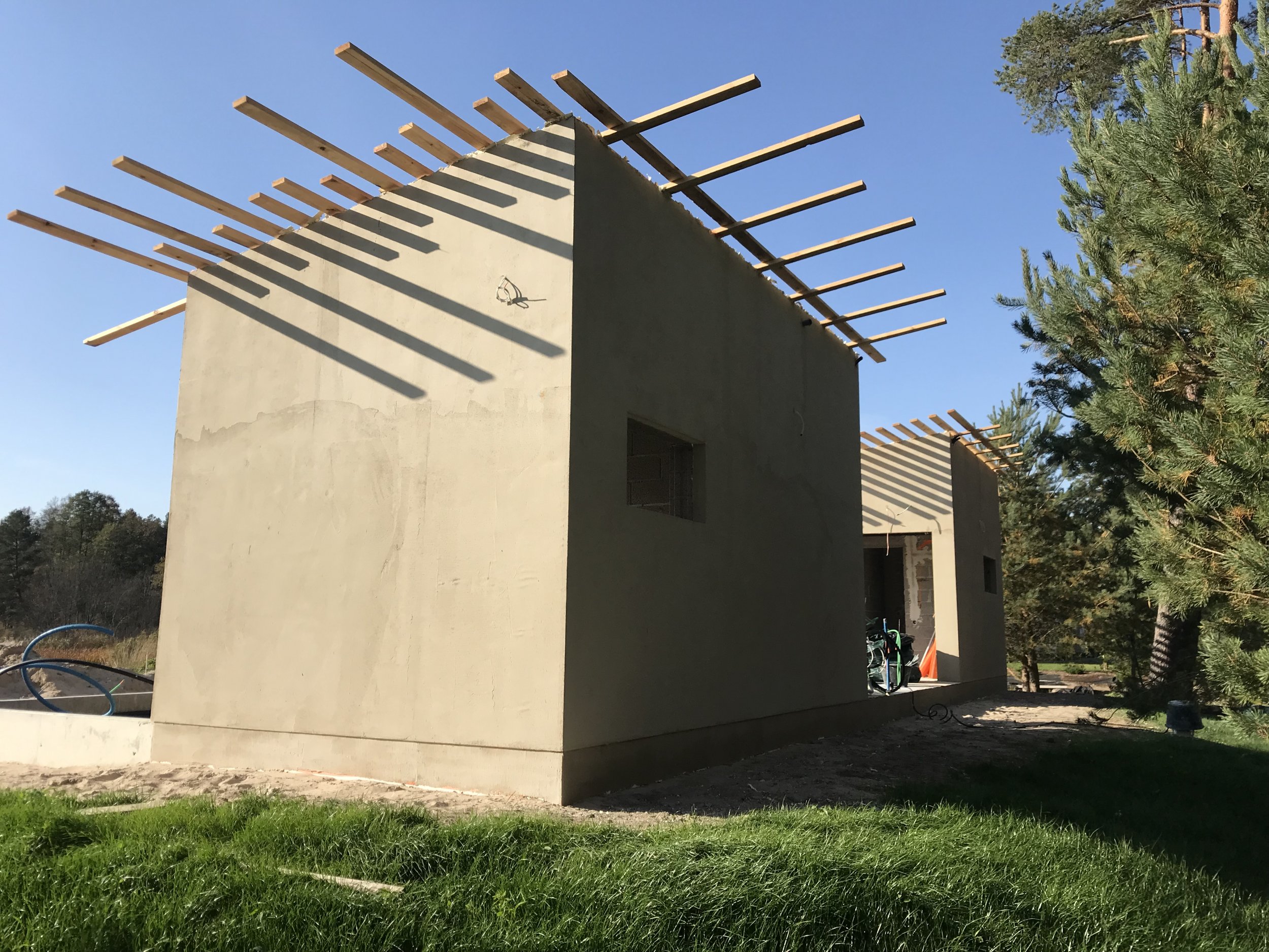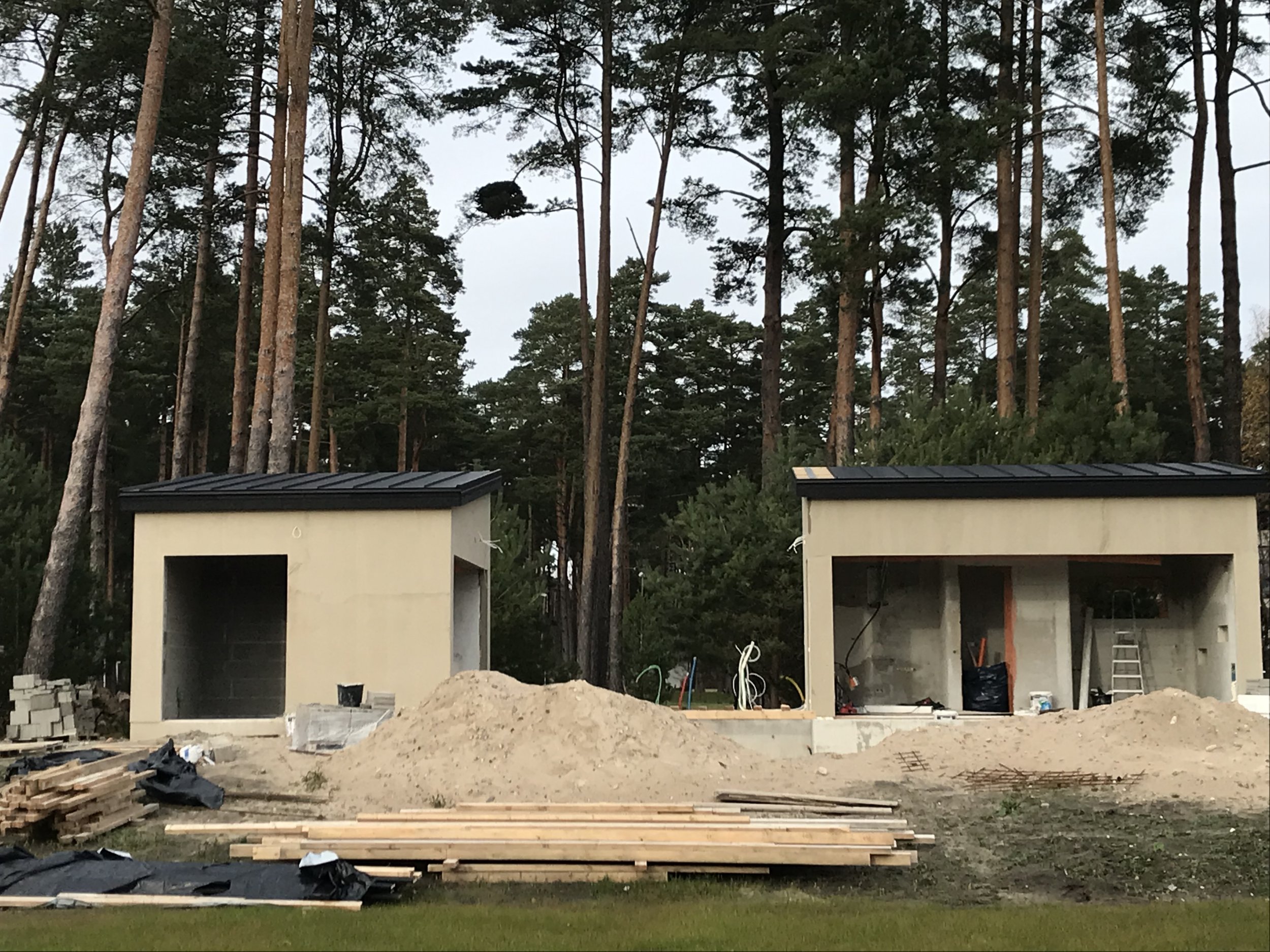 Kahele uuele üksteise kõrval asuvale krohvitud väikeehitistele paigaldada Wienerbergeri tellisplaatid ning vuugid täita. Kokku ca 90 ruutmeetrit pinda ja ala on soojustatud ning kaetud.