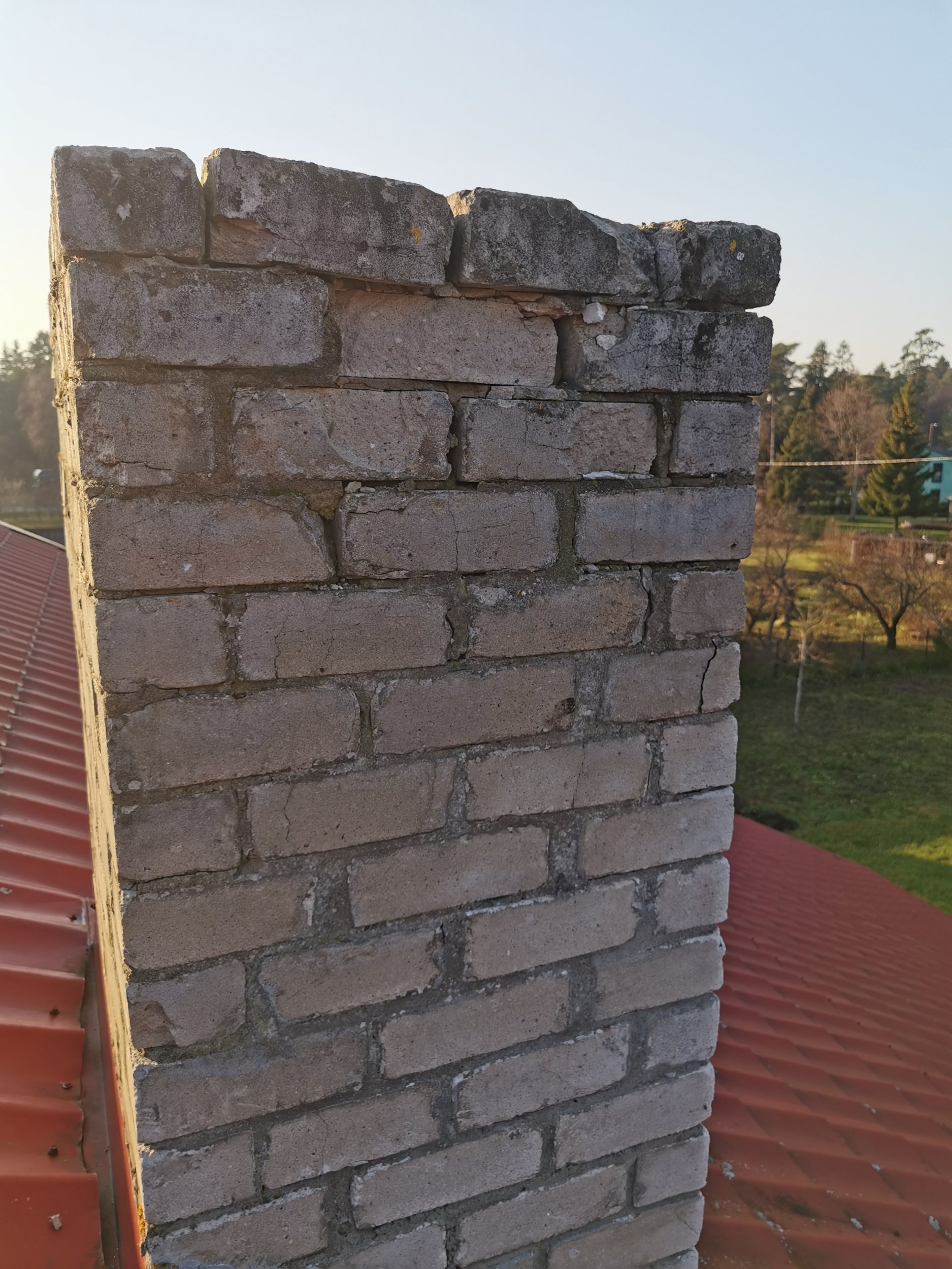 Oleks vaja 4-5 ülemist kivirida korstnal välja vahetada. Korstanpitsi pikkus 100cm, laius 75cm, kõrgus 130cm. Kui vaja, võin materjalid ka ise tuua. Uus korstnamüts olemas.