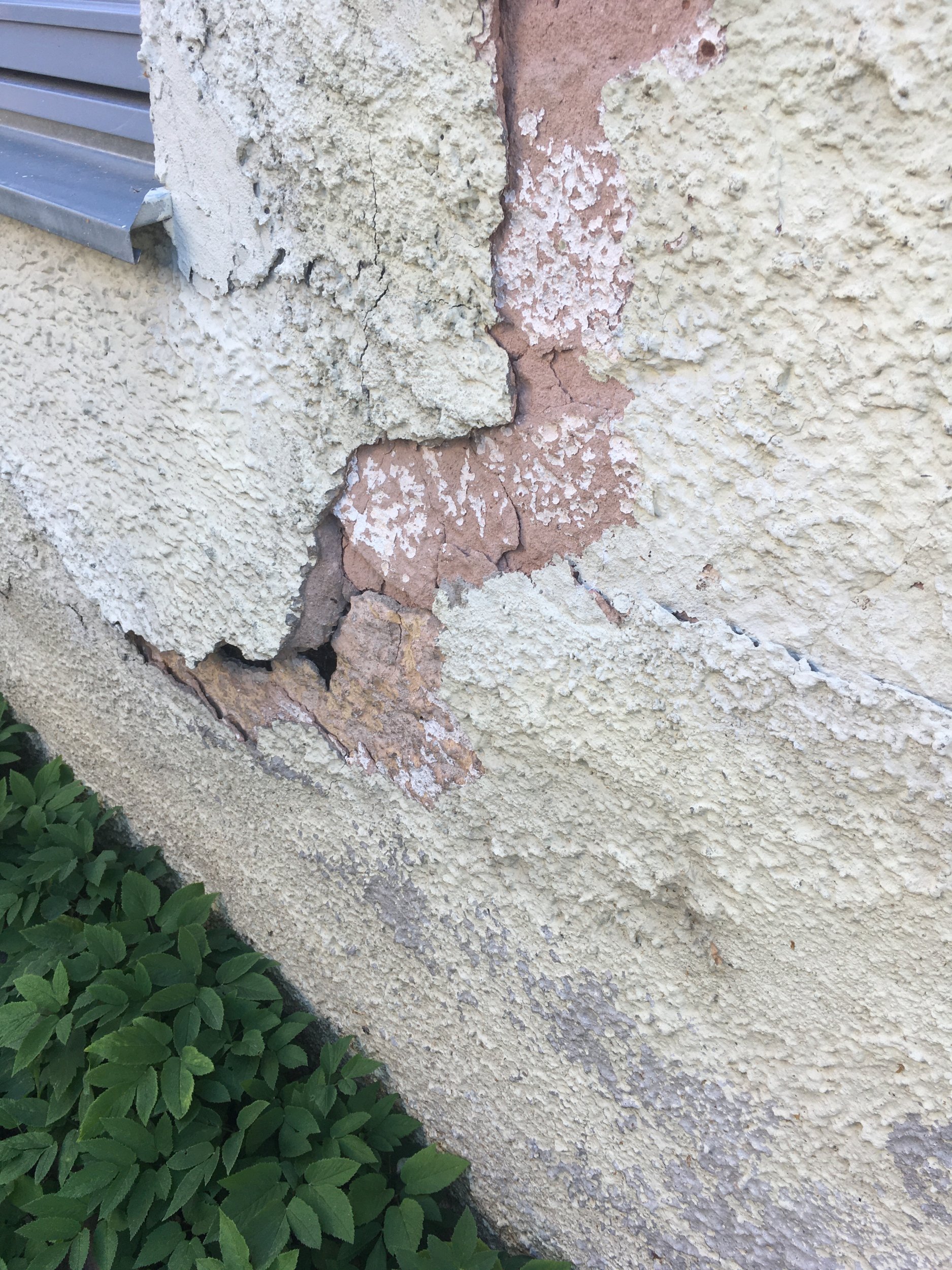 Krohvitud kahekorruselise maja välifassaadis on tekkinud suuremaid ja väiksemaid mõrasid/auke. Vähemalt ühel seinal oleks vaja teha kiire parandus, et tükke ei hakkaks pähe langema. Pikemas perspektiivis oleks vaja kogu fassaad ilmselt üle krohvida, ootaks meeleldi head pakkumist mõlemale tööle.