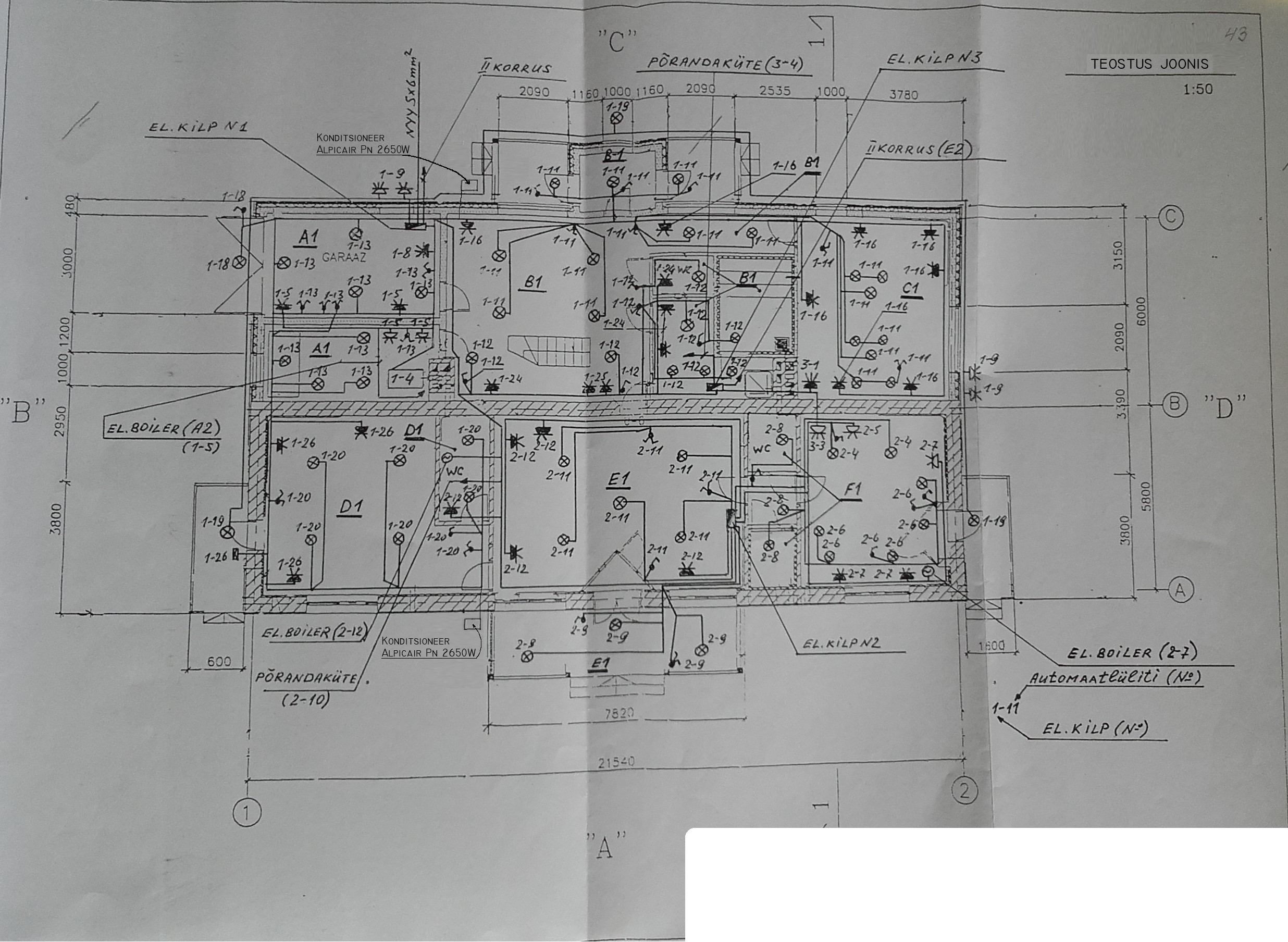 Konditsioneeri paigaldamise järelprojekt majas + ehituspäevik. 2018 majas oli paigaldatud 2 konditsioneerid, olemas vajadus lisada info ehitusregistris , selle jaoks linnvalitsus palunud esitada projekt ( joonised + seletuskiri ) + paigaldusjoonised ja teostatud tööde/ekspertiis akt ning vastav kanne ehituspäevikus. Olemas põhiprojekti joonised + joonis kus neid konditsioneerid juba lisatud, vajalik joonised õigesti vormistada/muuta , lisada seletuskiri ja ehitusepäevik.