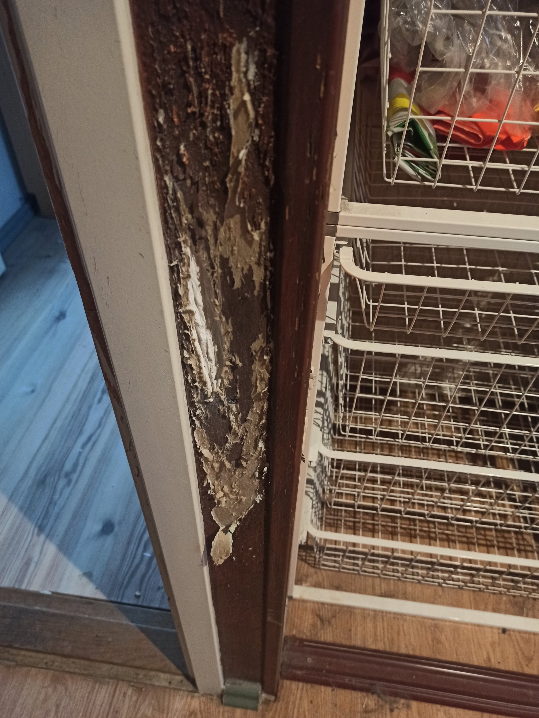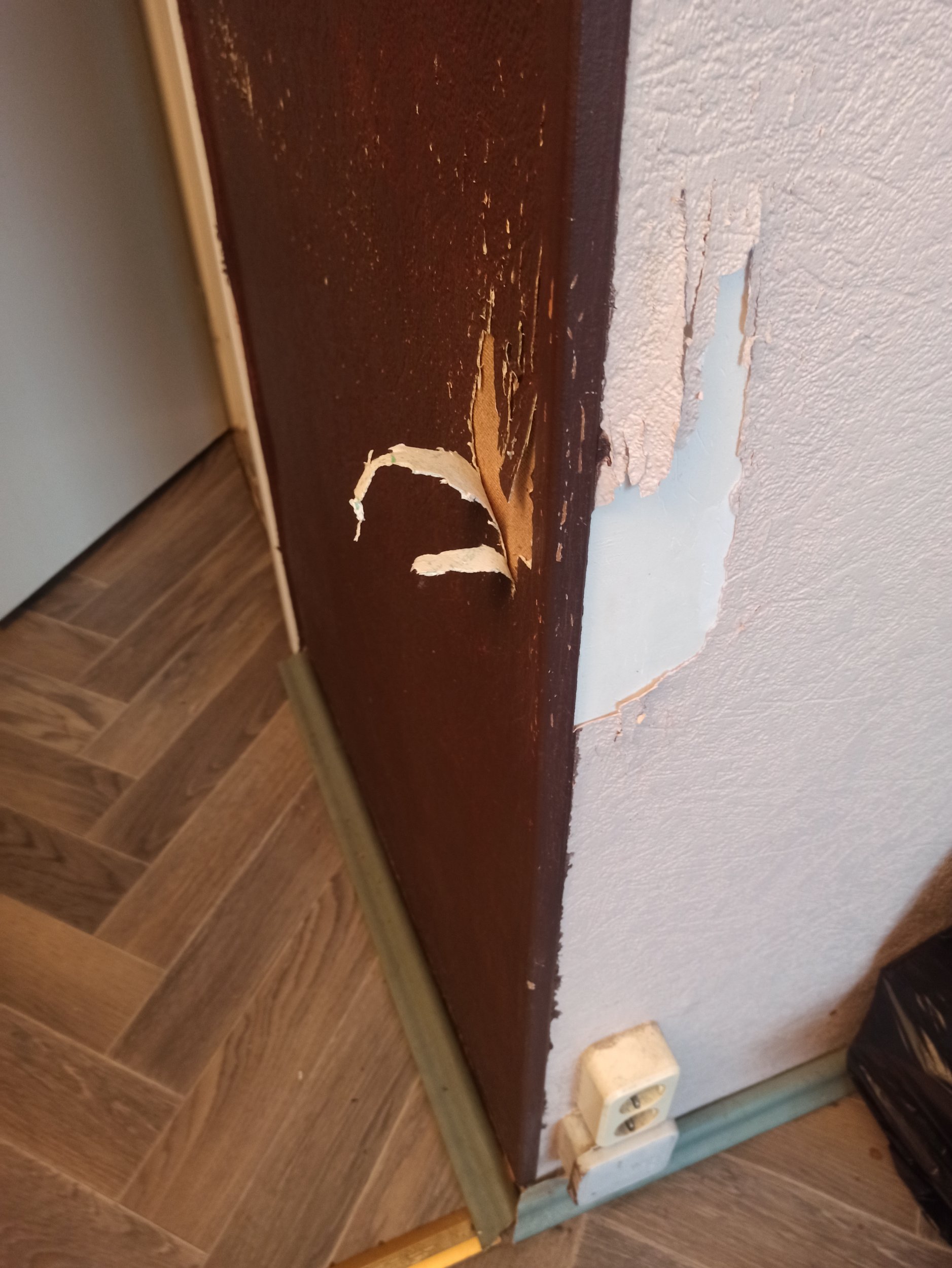 Esikus vana tapeedi eemaldamine, seinte osaline tasandamine (lemmikooma kraapimisjäljed) ja seina värvimine. Pistikute/lülitite vahetamine.