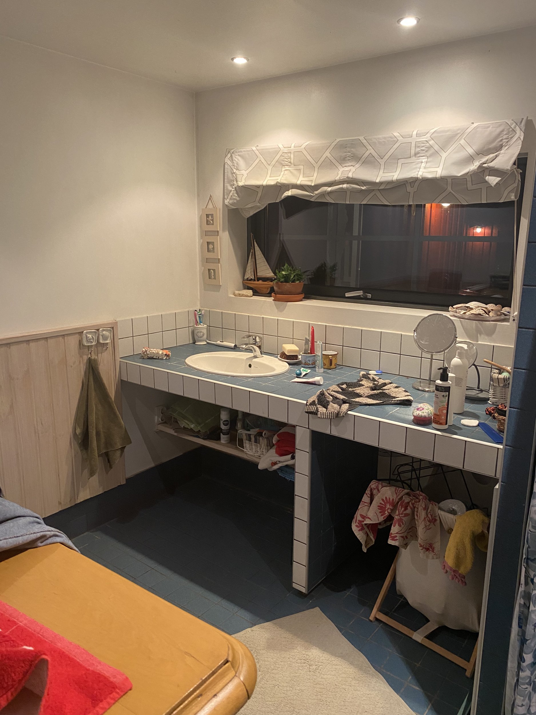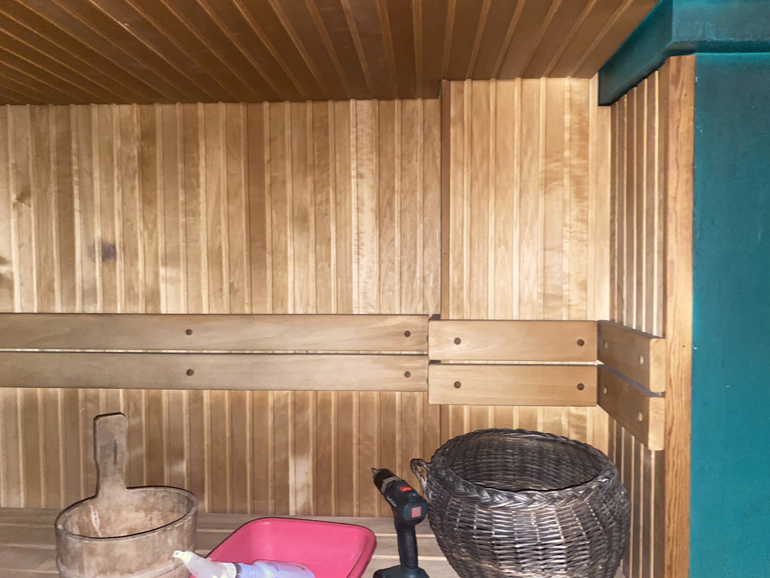 Leiliruumi, duširuumi ja WC värskendusremont. Plaatide vahetamine, värvimine, leiliruumis uue kerise paigaldamine.