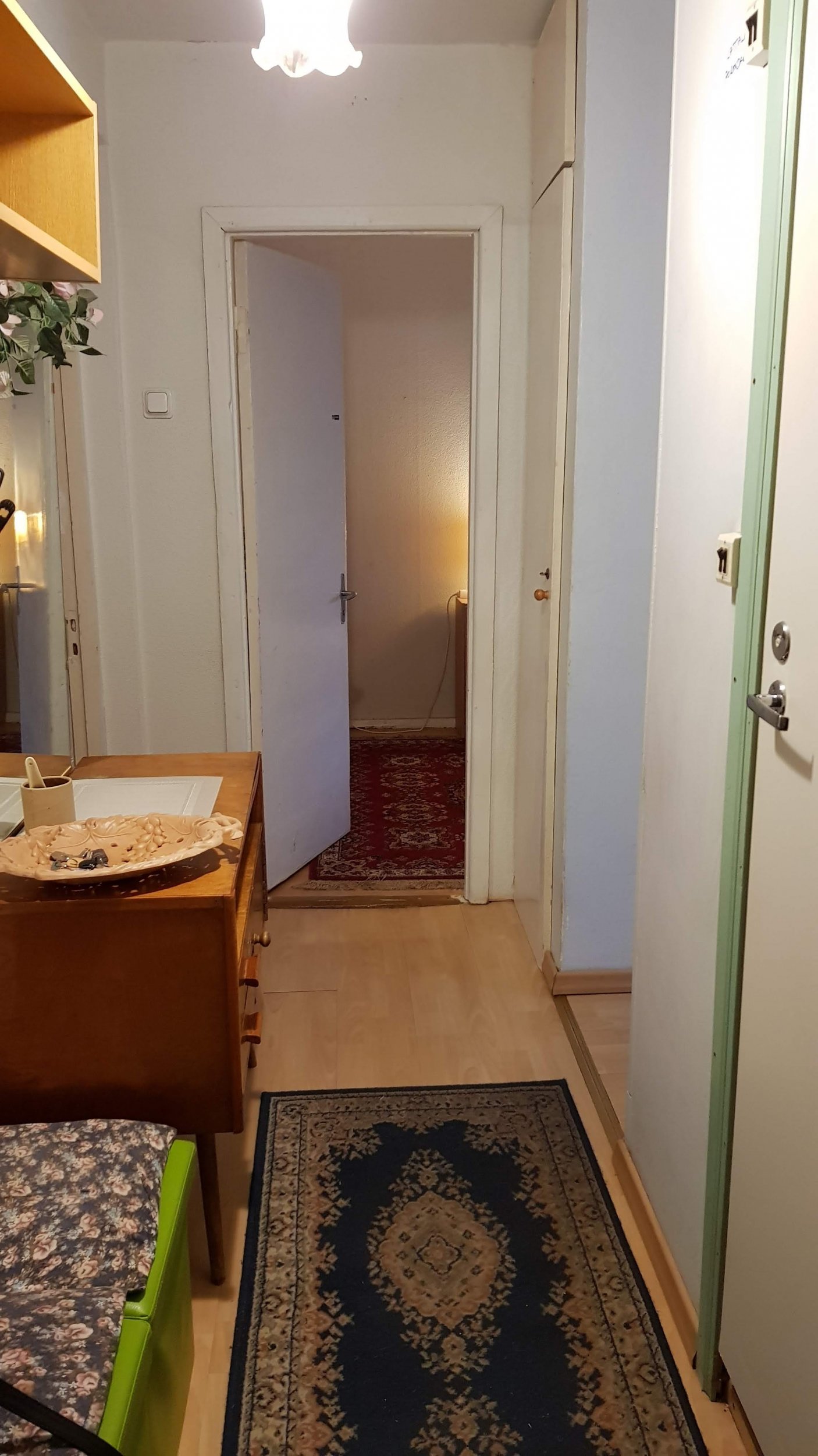 Esik - maha võtta 2m2 tapeeti, sein vajadusel pahteldada, värvida. Lagi värvida.