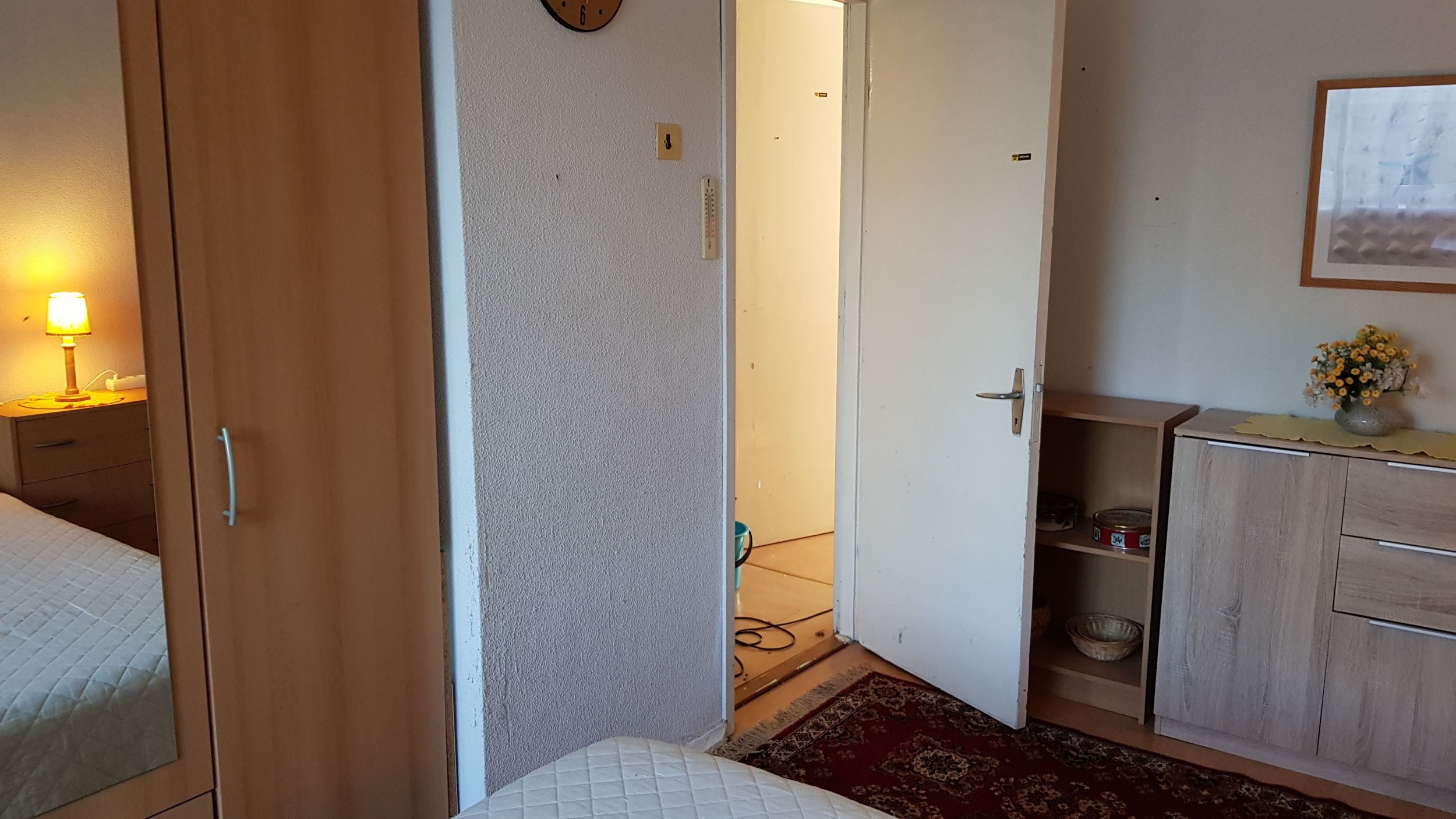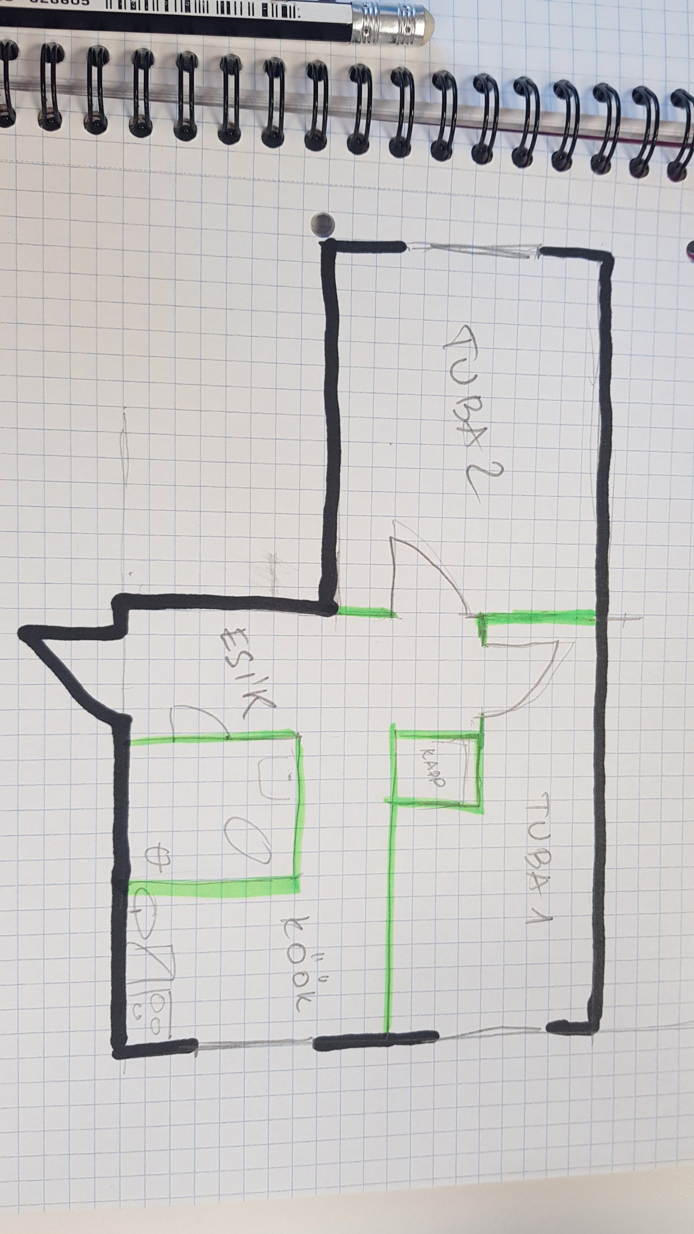Tuba 1 (12m2) - maha võtta seinakate/tapeet, pahteldada, lihvida, värvida. Lagi värvida. Uks vahetada.