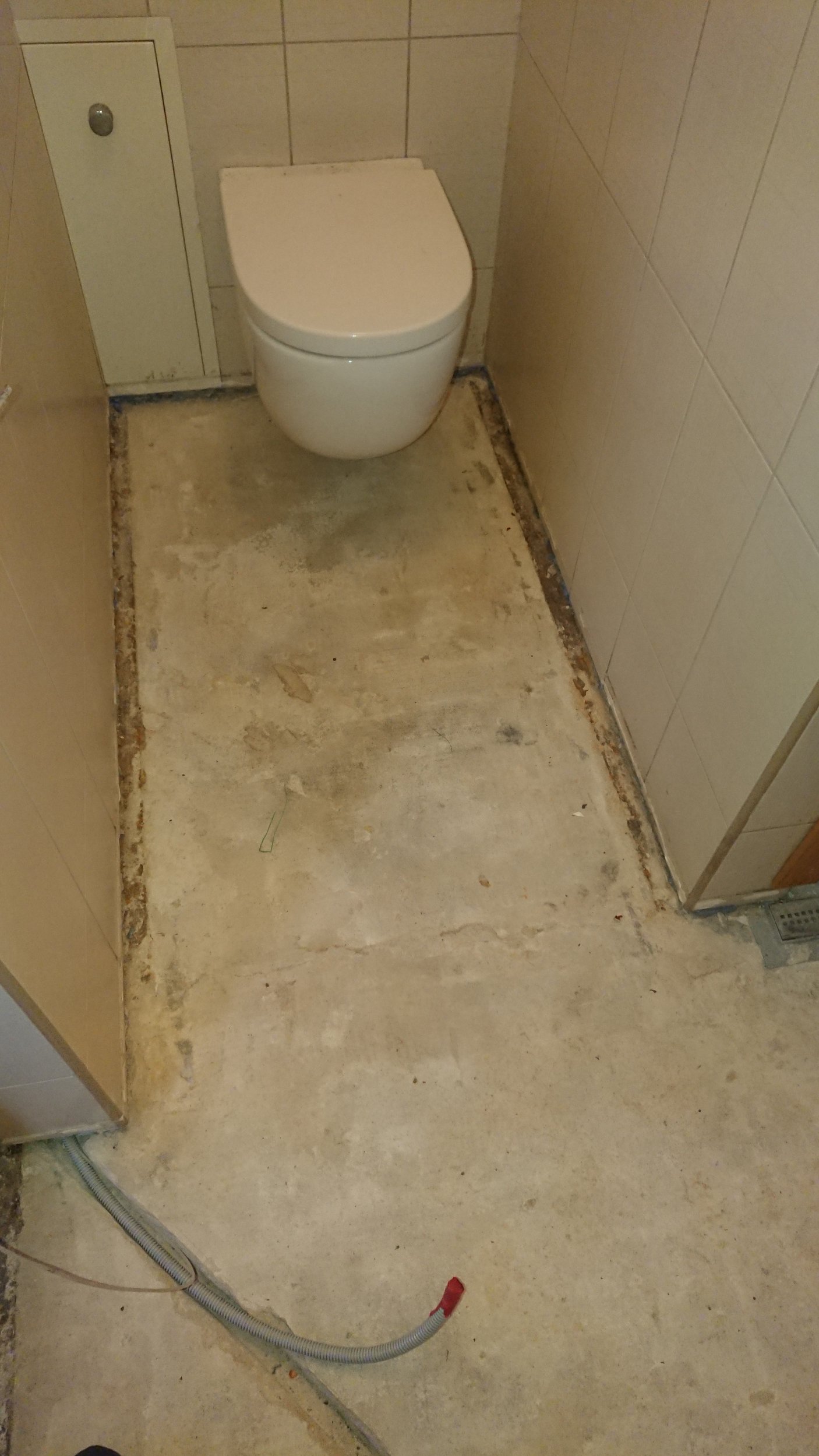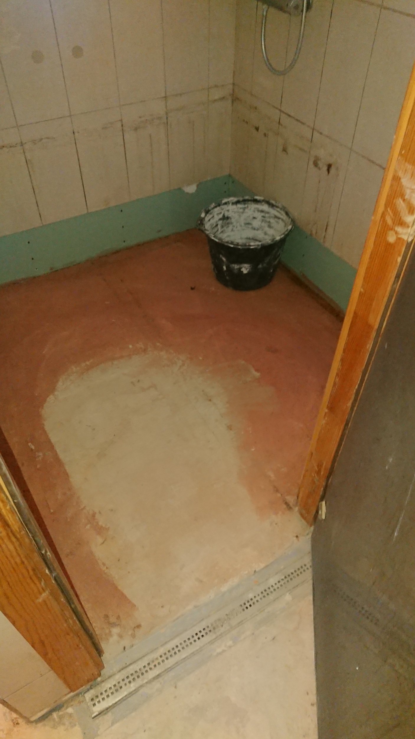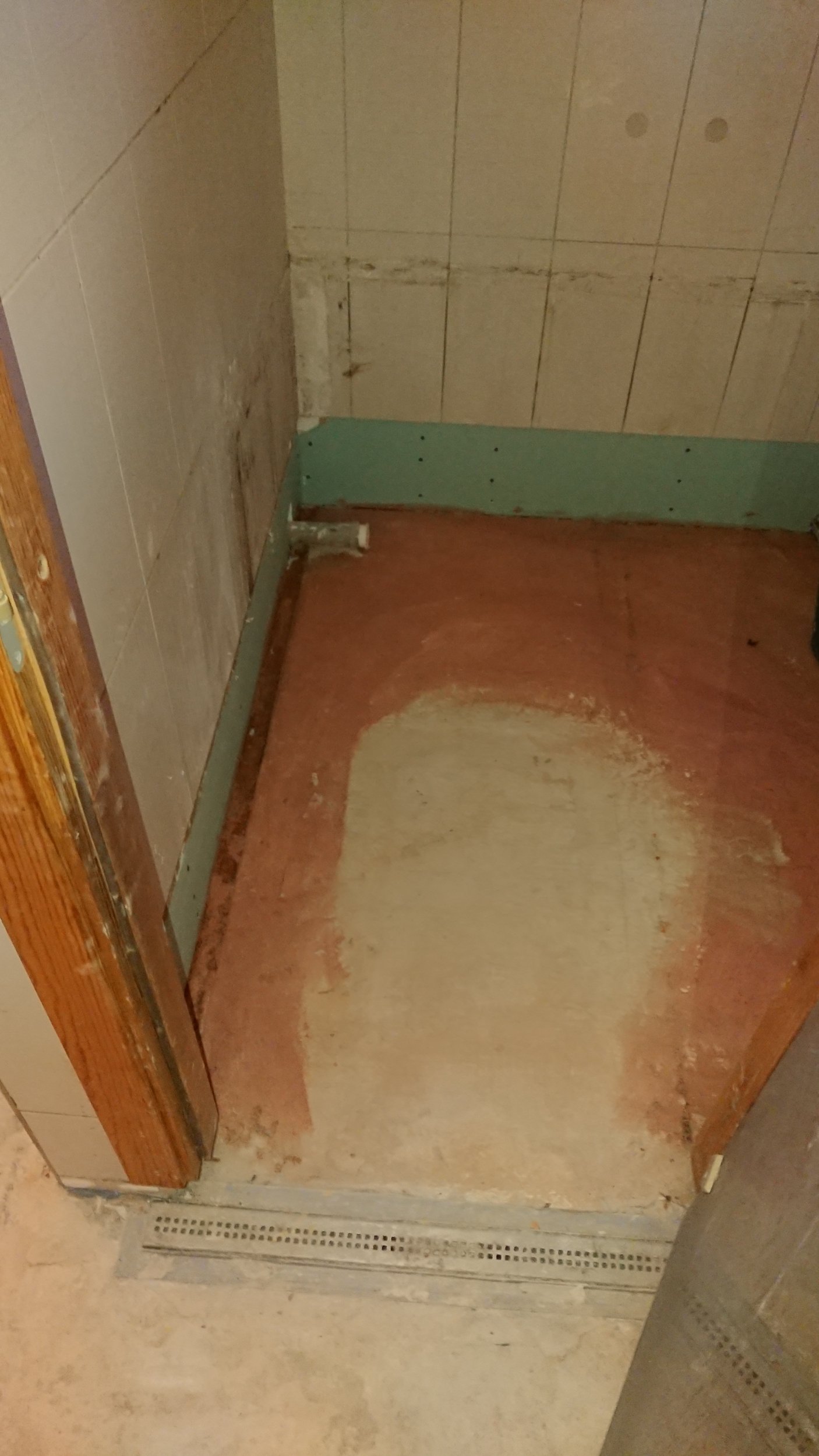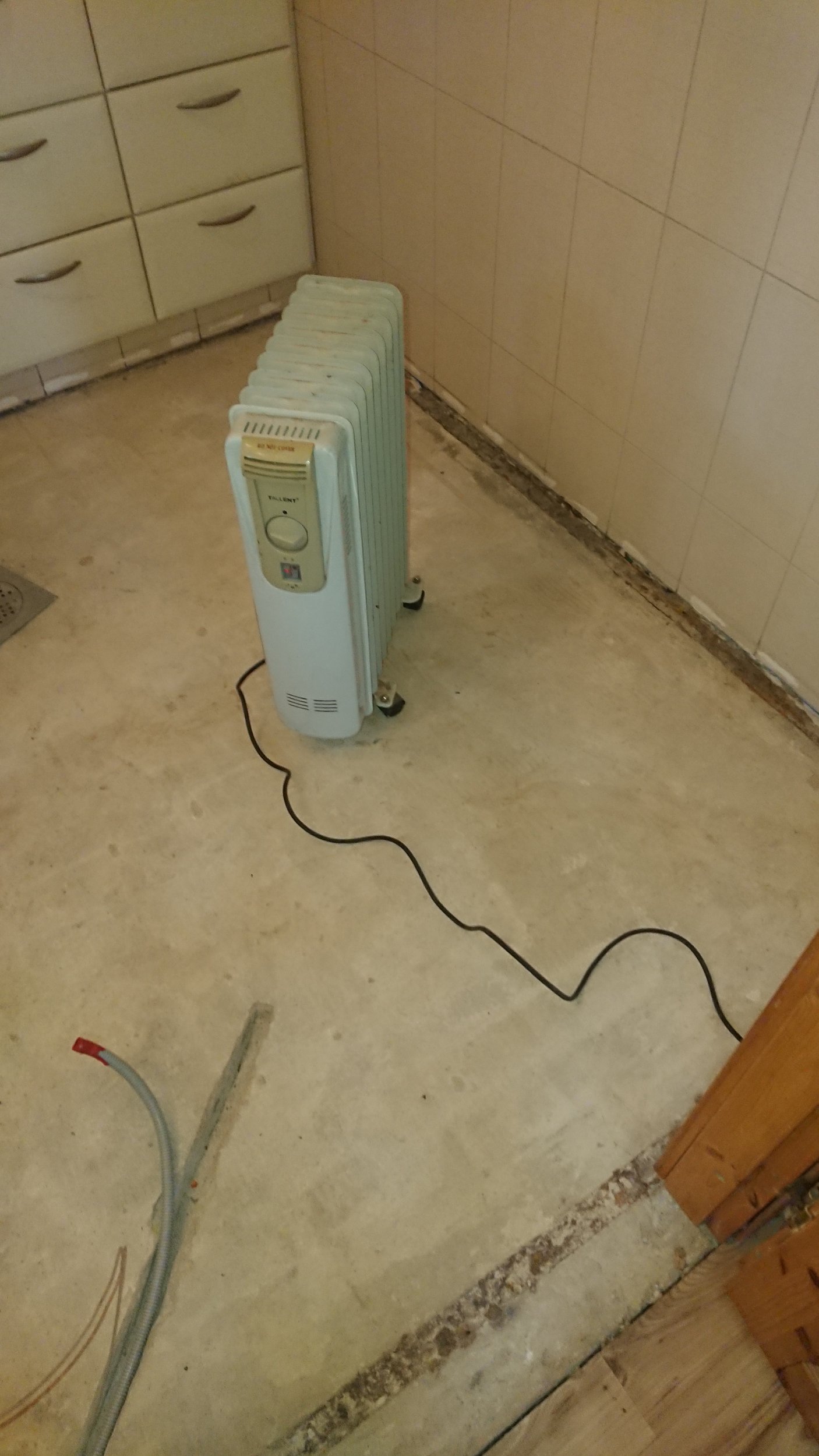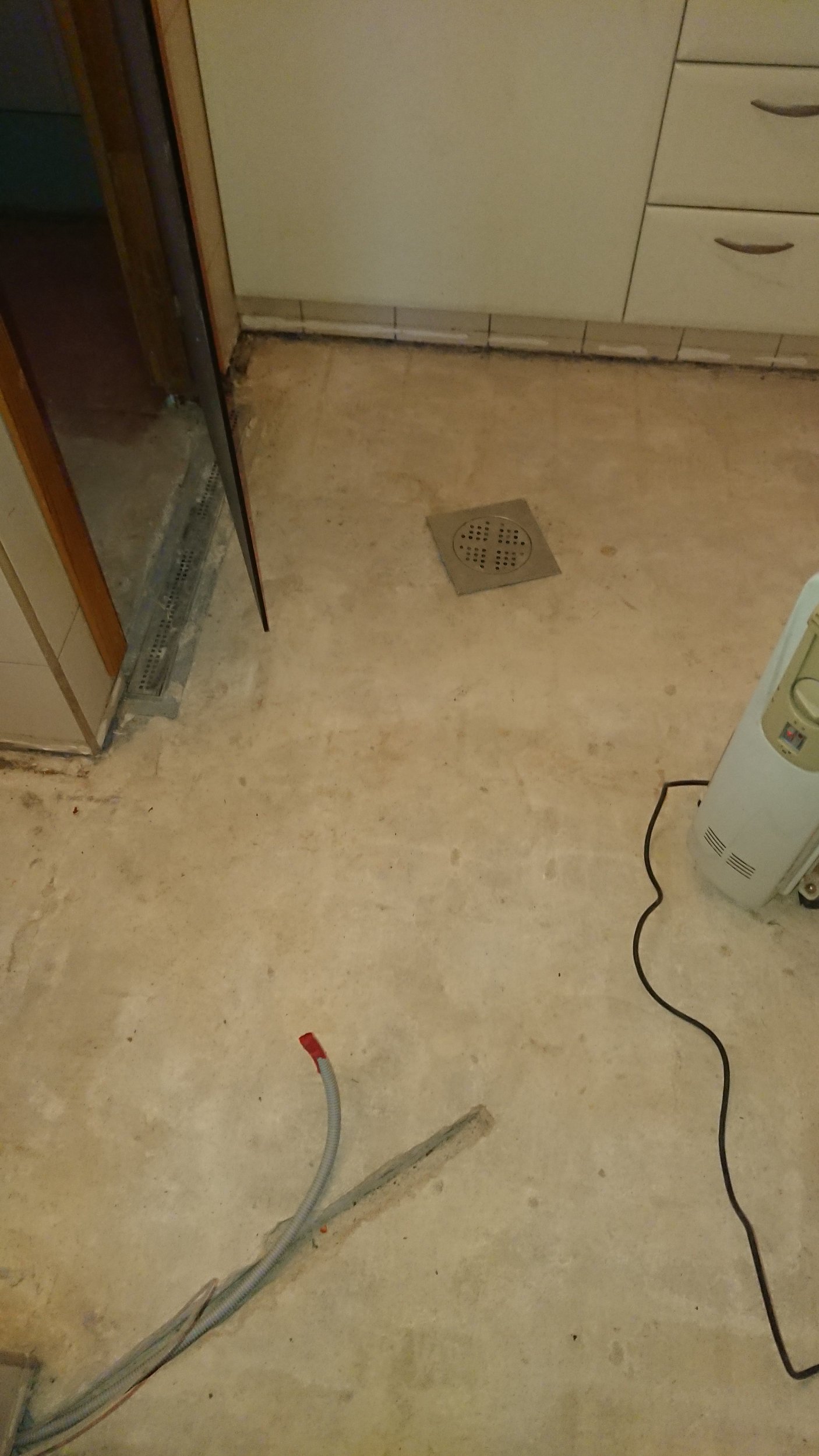 Hetkeolukord: Vana põrandaküte on eemaldatud, alus kuivatatud, seintel ühe plaadi kõrguselt kips ja soojustus välja vahetatud mõningates seintes. Kus seinaplaadid allles, siis selle plaatide alumises servas on natuke silikooni.