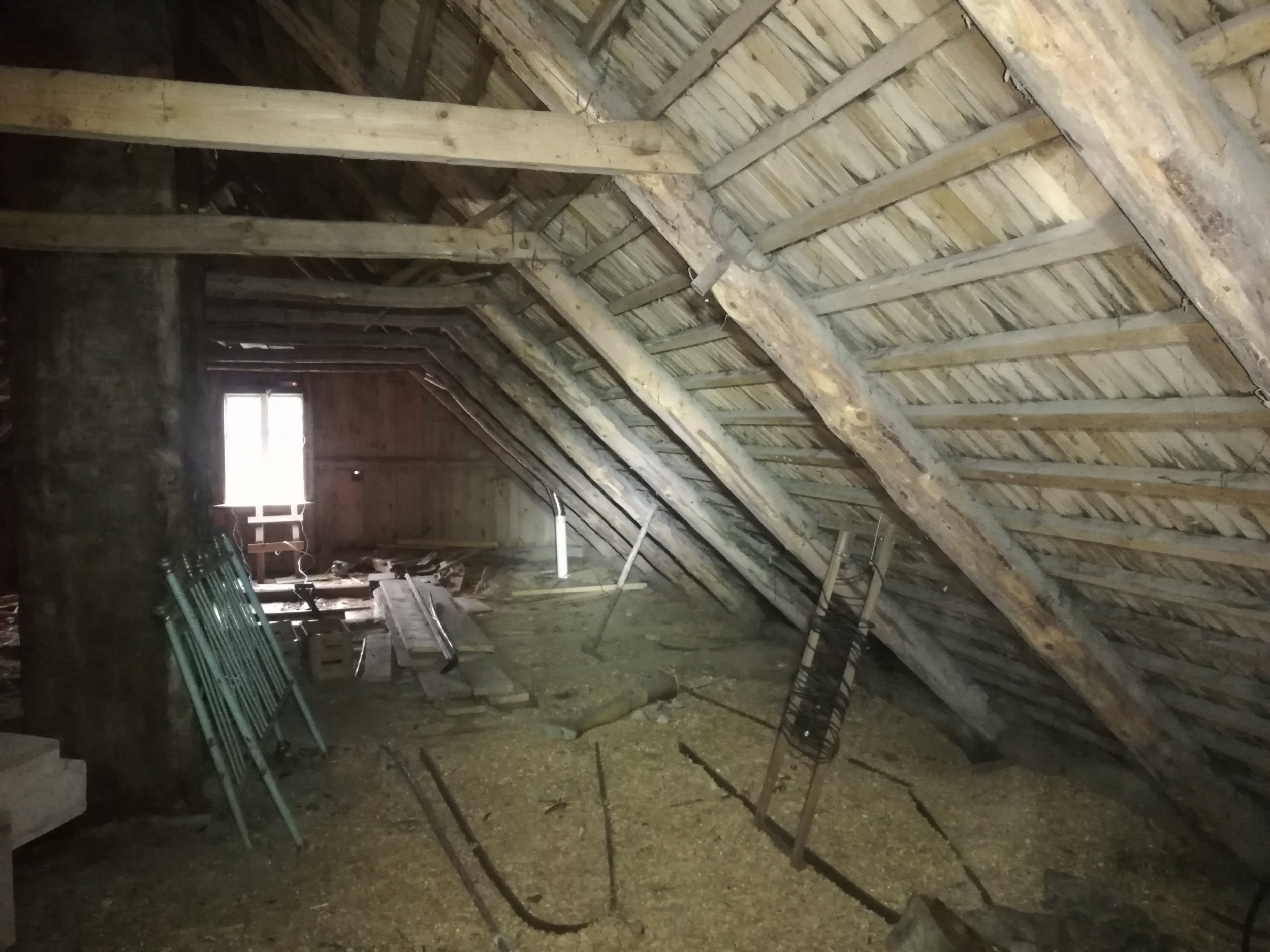 Hetkel olemasolev katus on vana ning vajab täielikult väljavahetamist (eterniitkatus). Olemasoleva katuse kandevkonstruktsioonid omavahel seotud puidust kiiludega. Manuses mõned pildid.