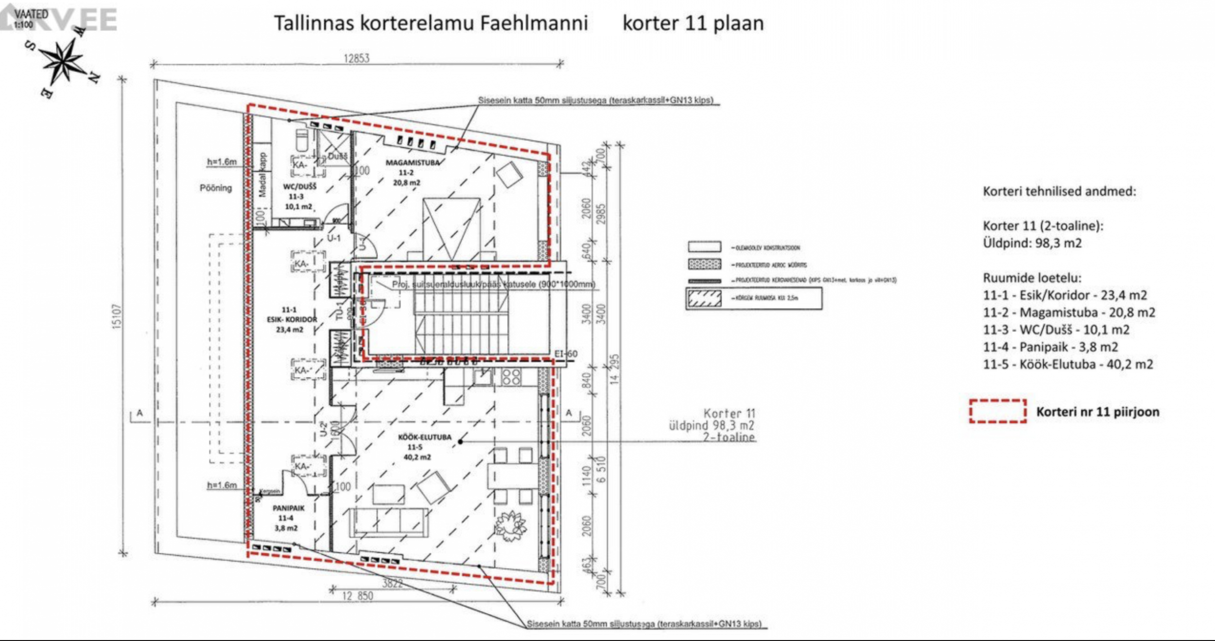 planeeringu järgi 98,3m2 üldpinnaga korteri ehitus ja võtmed kätte lahendus.