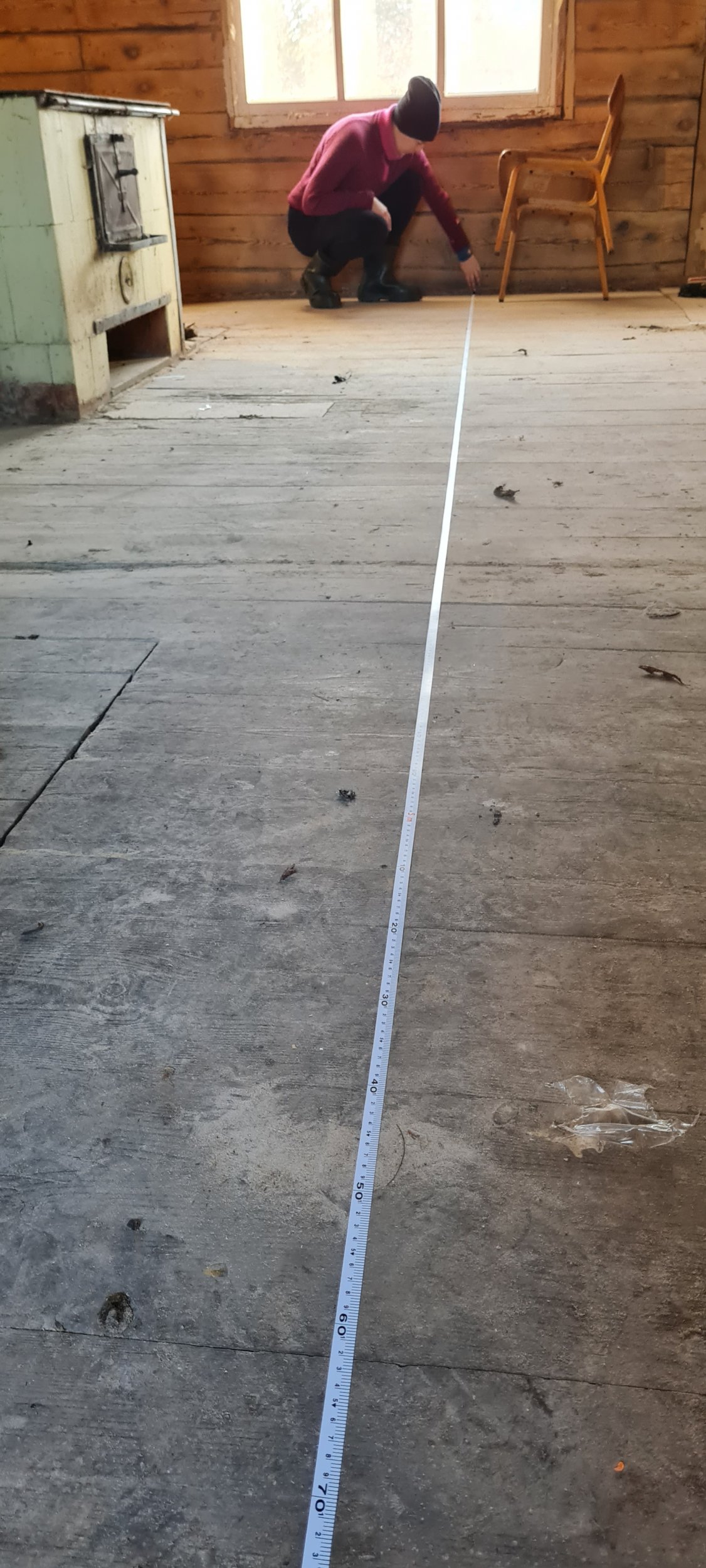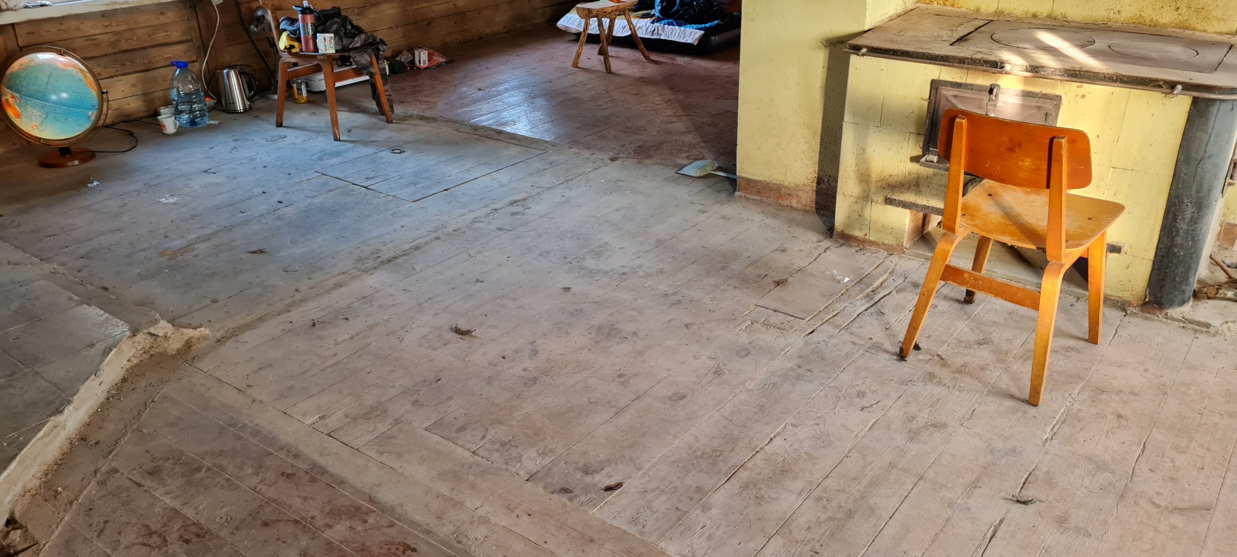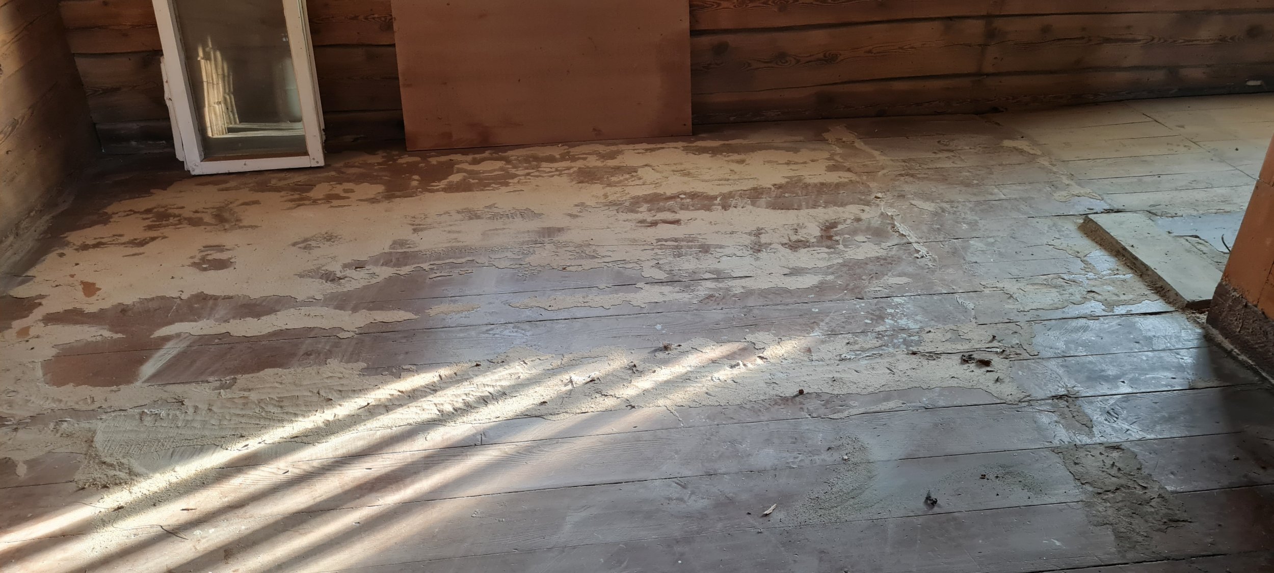 Vanas väikses palkmajas olev üsnagi hästi säilinud põrand oleks vaja ära puhastada ja lihvida enne jõule.