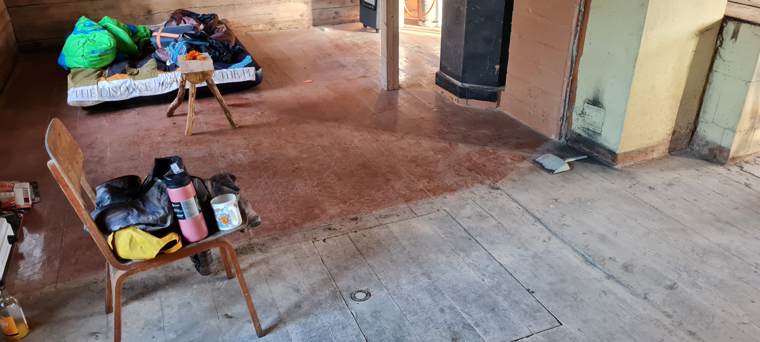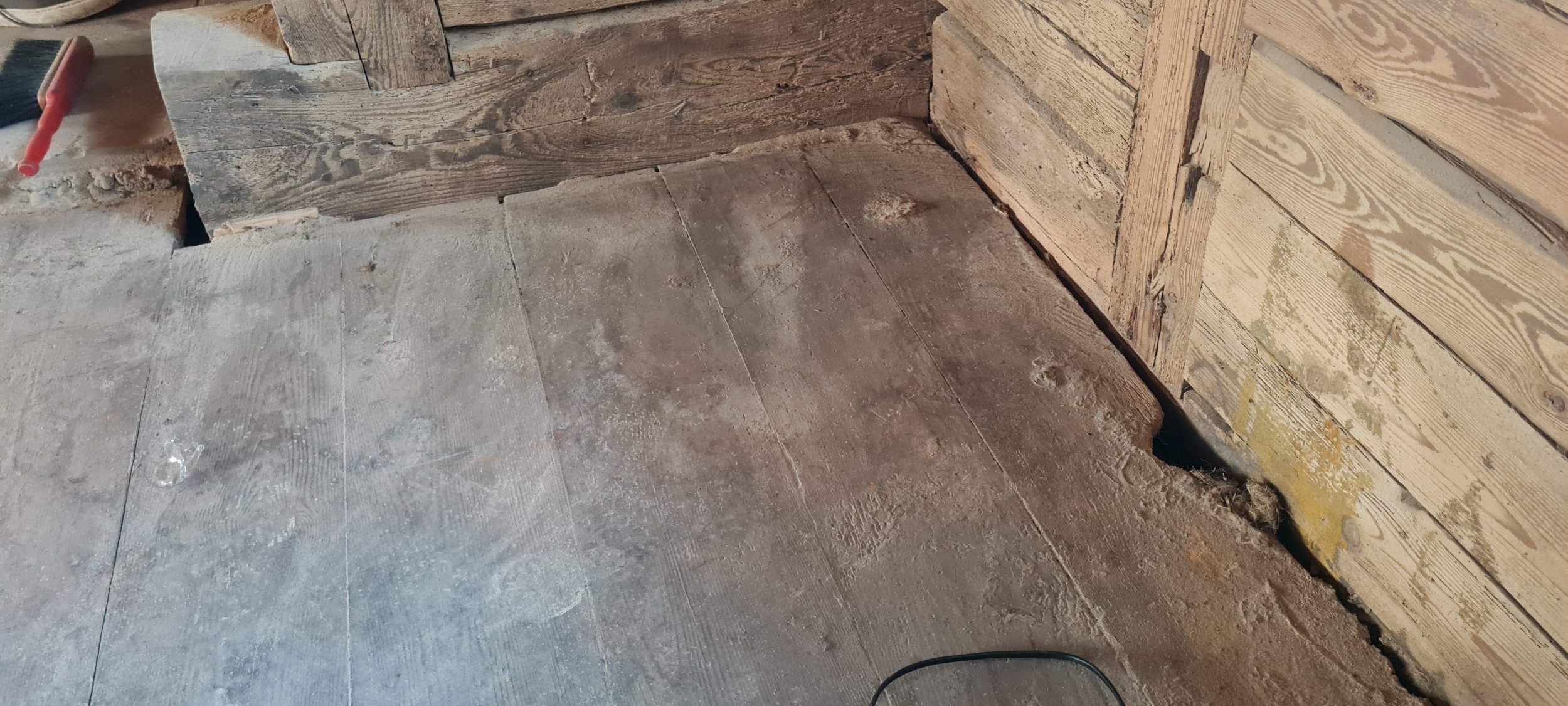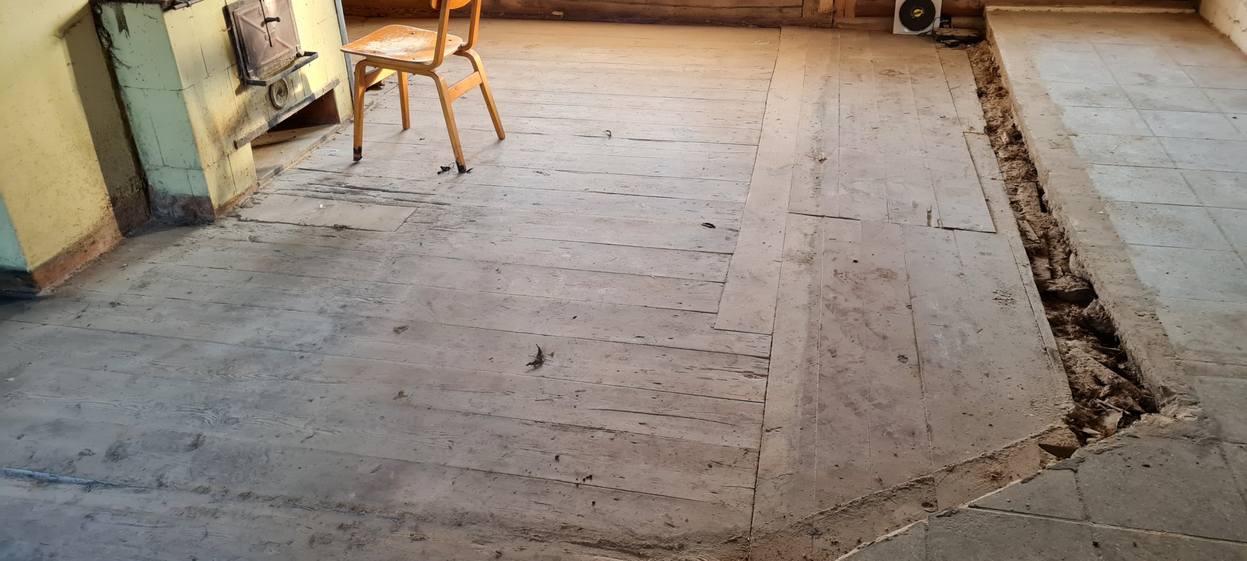 Vanas väikses palkmajas olev üsnagi hästi säilinud põrand oleks vaja ära puhastada ja lihvida enne jõule.