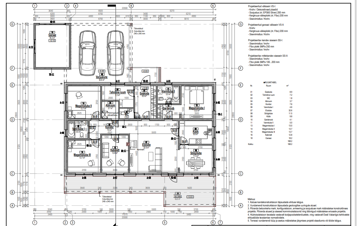 1) Tugev vool, maja, garaazi ja tuleviku abihoone liitumine