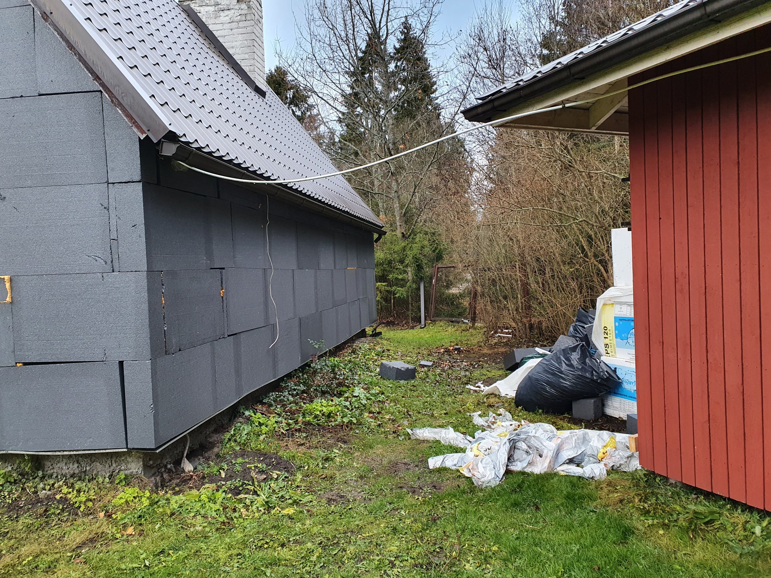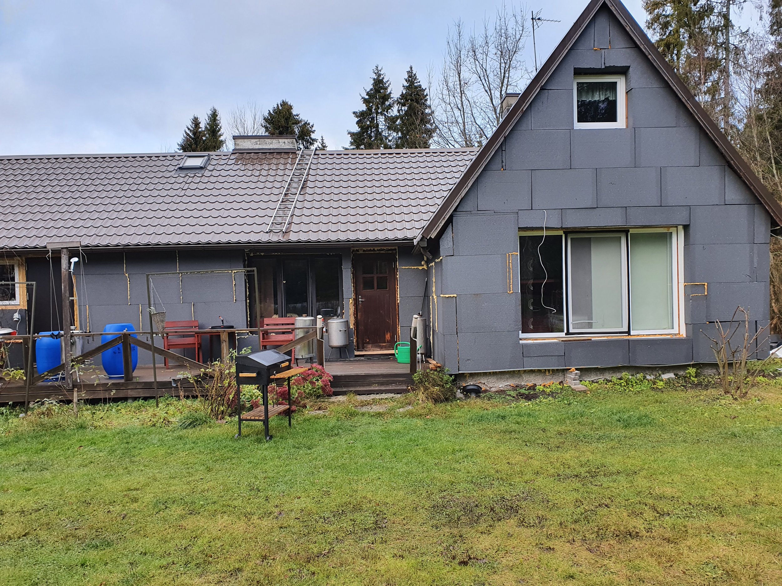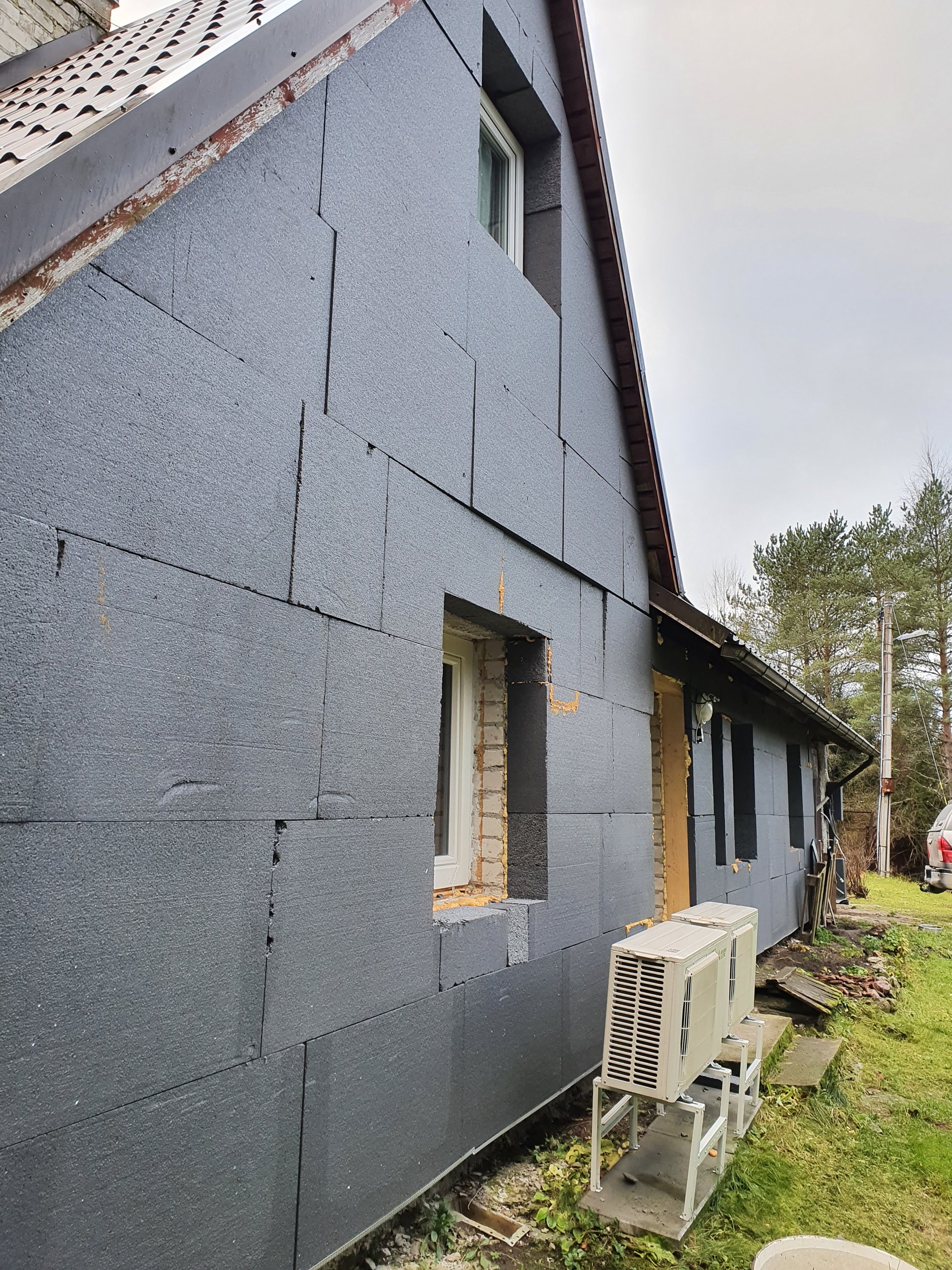 Eramu fassaadi katmine krohviga. Fassaad kaetud 200 mm vahtpolüstürooliga. Pindmine kiht tuleb mosaiikkrohv. Eramu otste katuseharja kõrgus maapinnast 6 m. Kaetavat pinda kokku orienteeruvalt 120 ruutmeetrit.