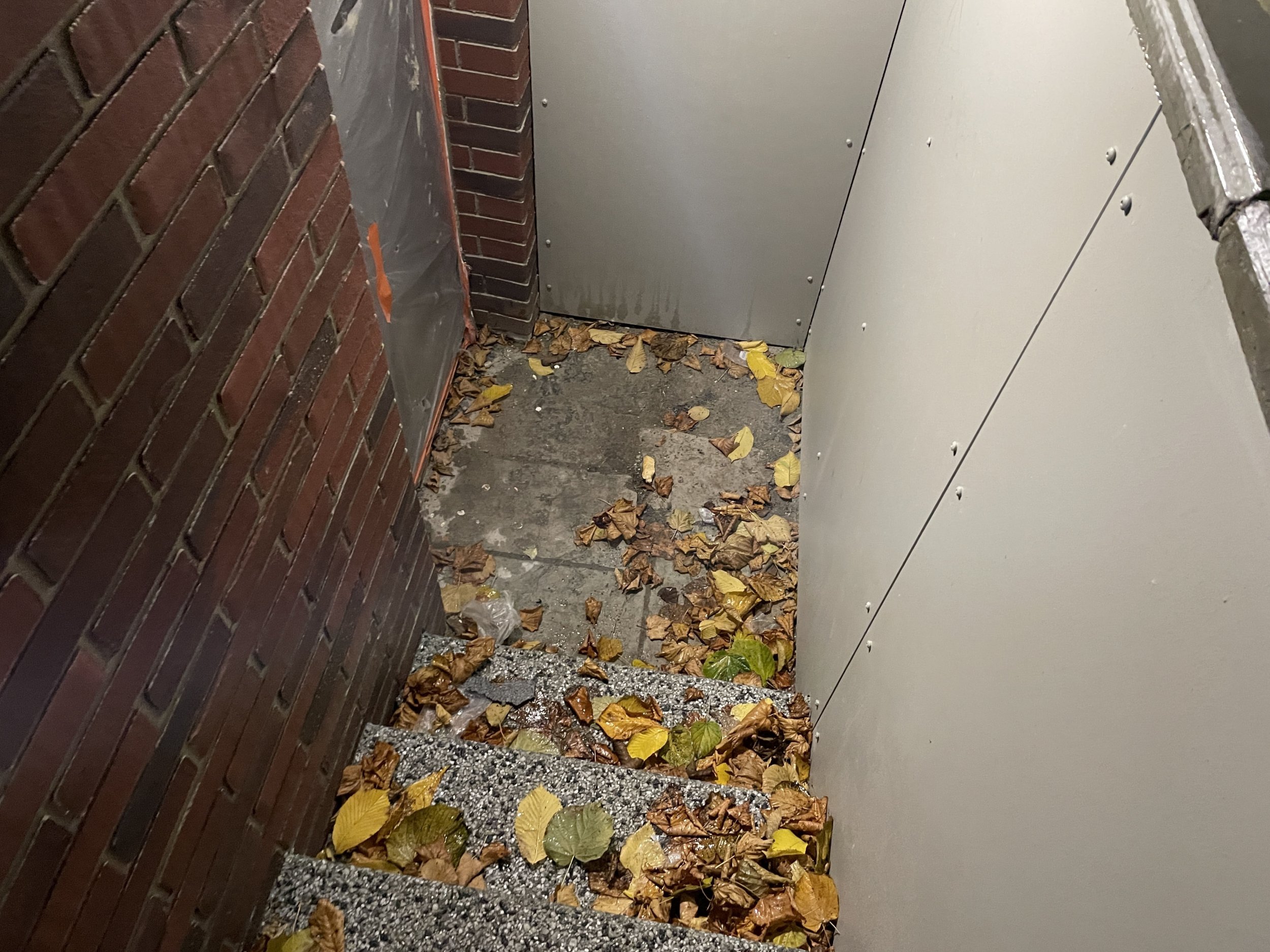 Keldrikorrusel õues asuva ukse ette põrandale vihmavee äravoolu paigaldamine. Töö kirjeldus: Vihmaveetrapi paigaldus + sissepääsu esise betoneerimine. Tuleb võtta vana betoon ülesse, täita killustikuga, lisada imbtoru ja trapp. Vesi, mis sinna koguneb, tuleb juhtida maa sisse. Ukse esine uuesti betoneerida. Tegu on umbes 1x1 m suuruse põrandaga.