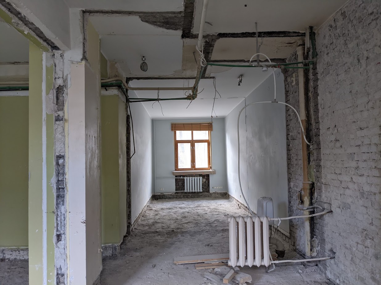 Vaja keevitada gaasitoru ümber vastavalt projektile (ainult et pliidi suunas pole vaja teha ühendust). Korteris vana toru jookseb lae all, uus toru hakkab jooksma põranda all. Korteris on kõik vaheseinad lammutatud, nii et ruumi on ja saab koheselt tegutsema hakata.
