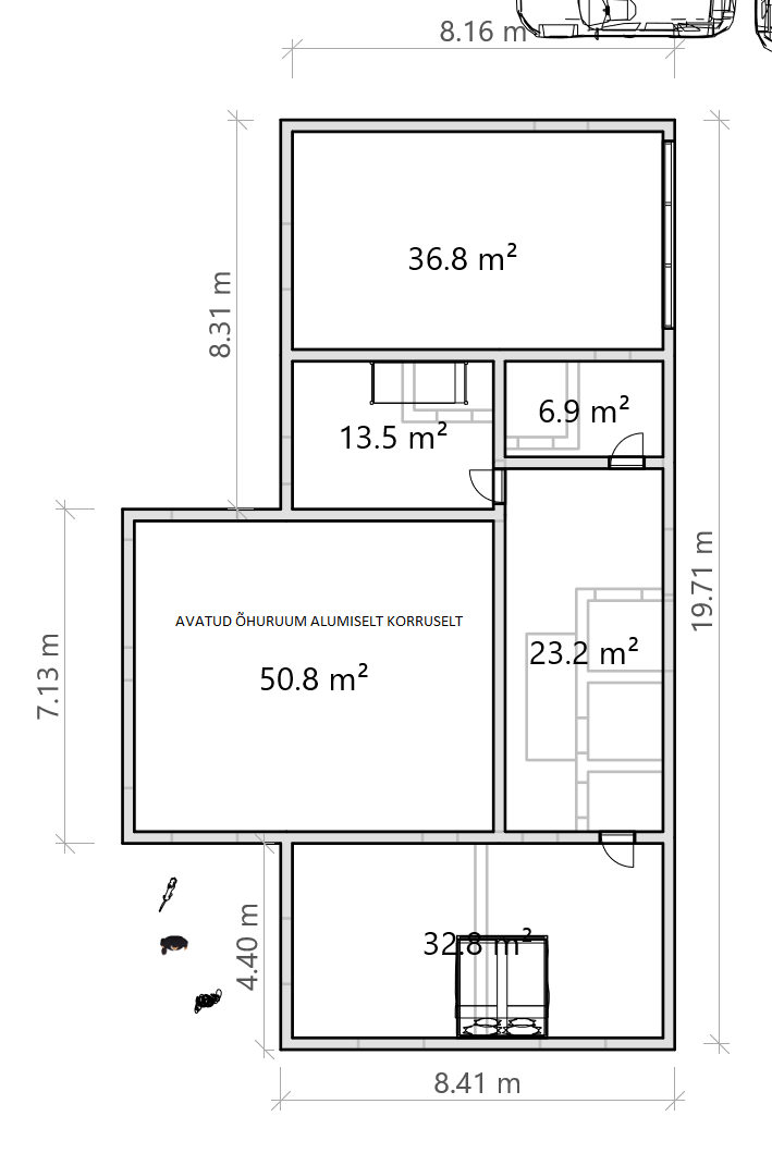 - 1 vannituba/wc /leiliruum (kui mahub siis saun koos eesruumiga eraldi)