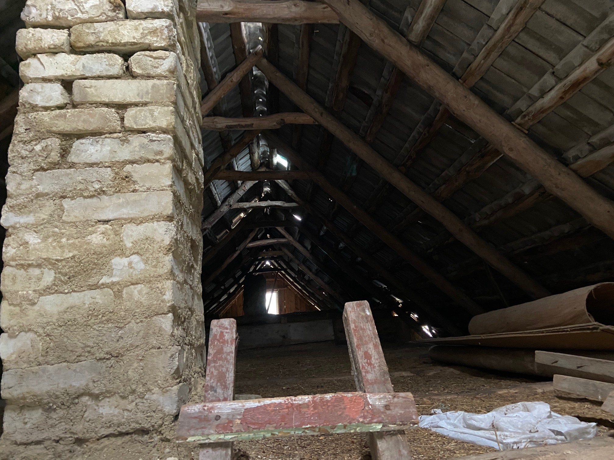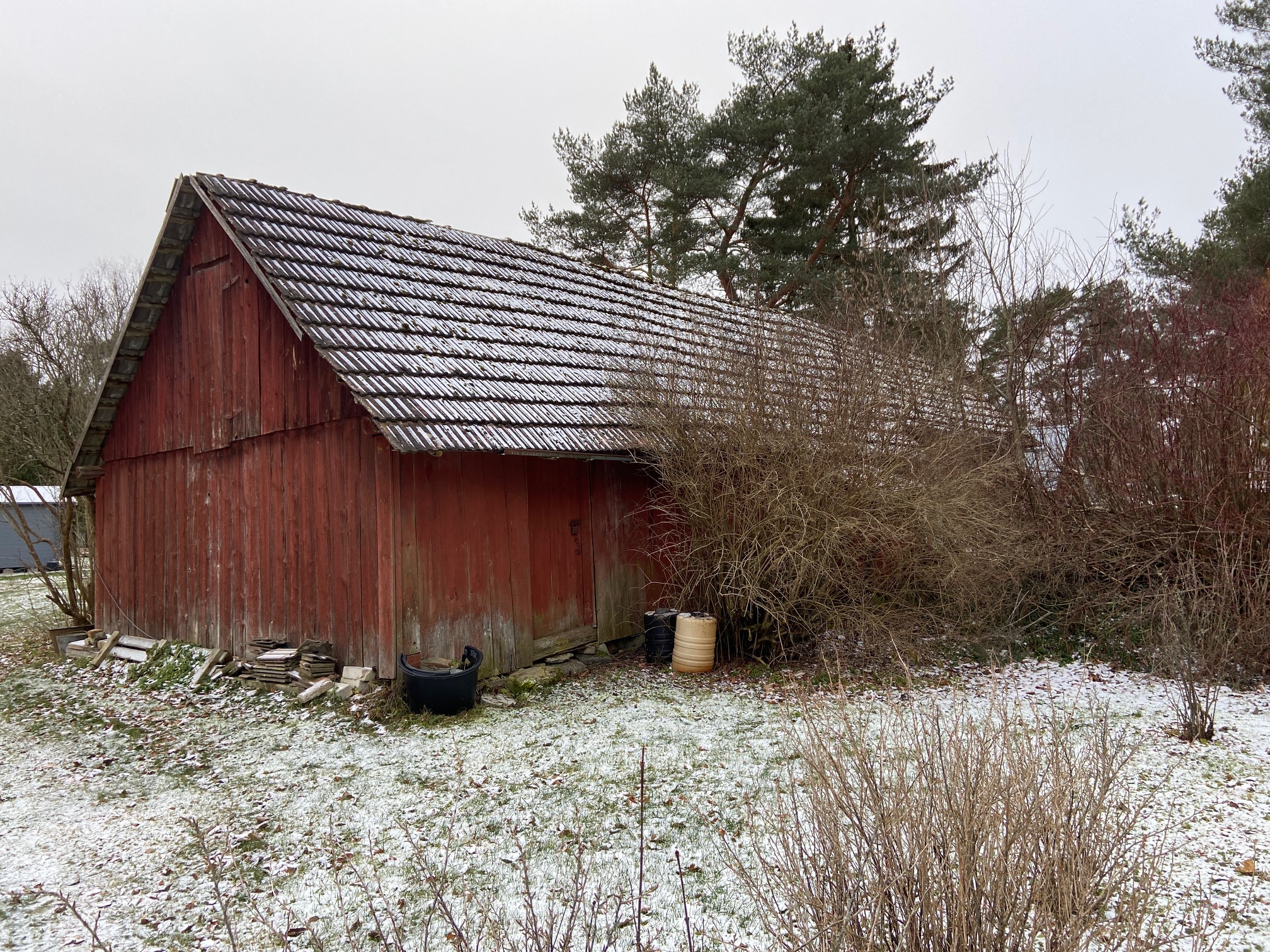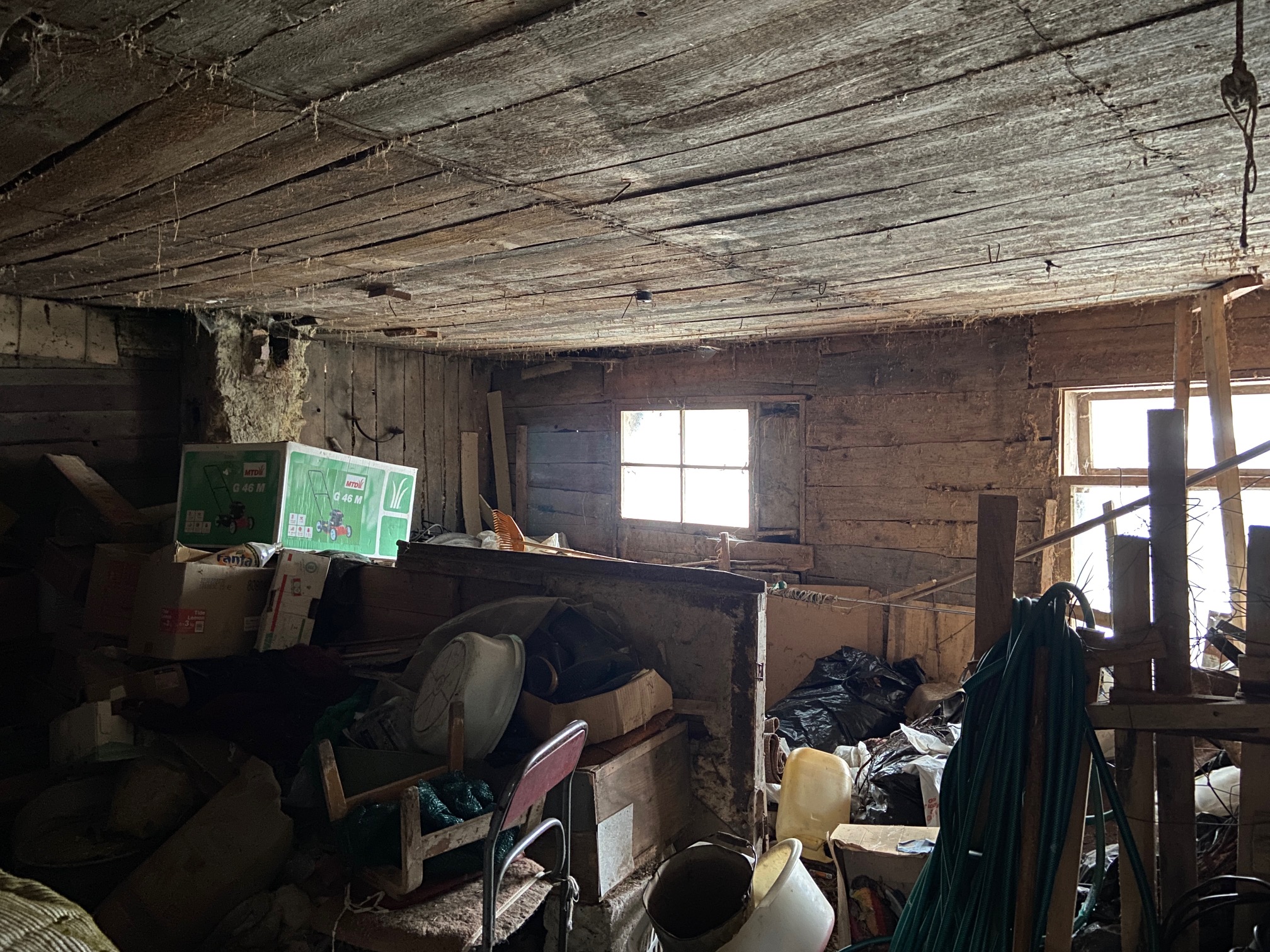 Katusekatteks käsitsi valatud katusekivi, sobib taaskasutuseks. Seinad, sees ja väljas laudis, keskel saepuru. Küttekeha puudub, on vaid ühe lõõriga korsten.