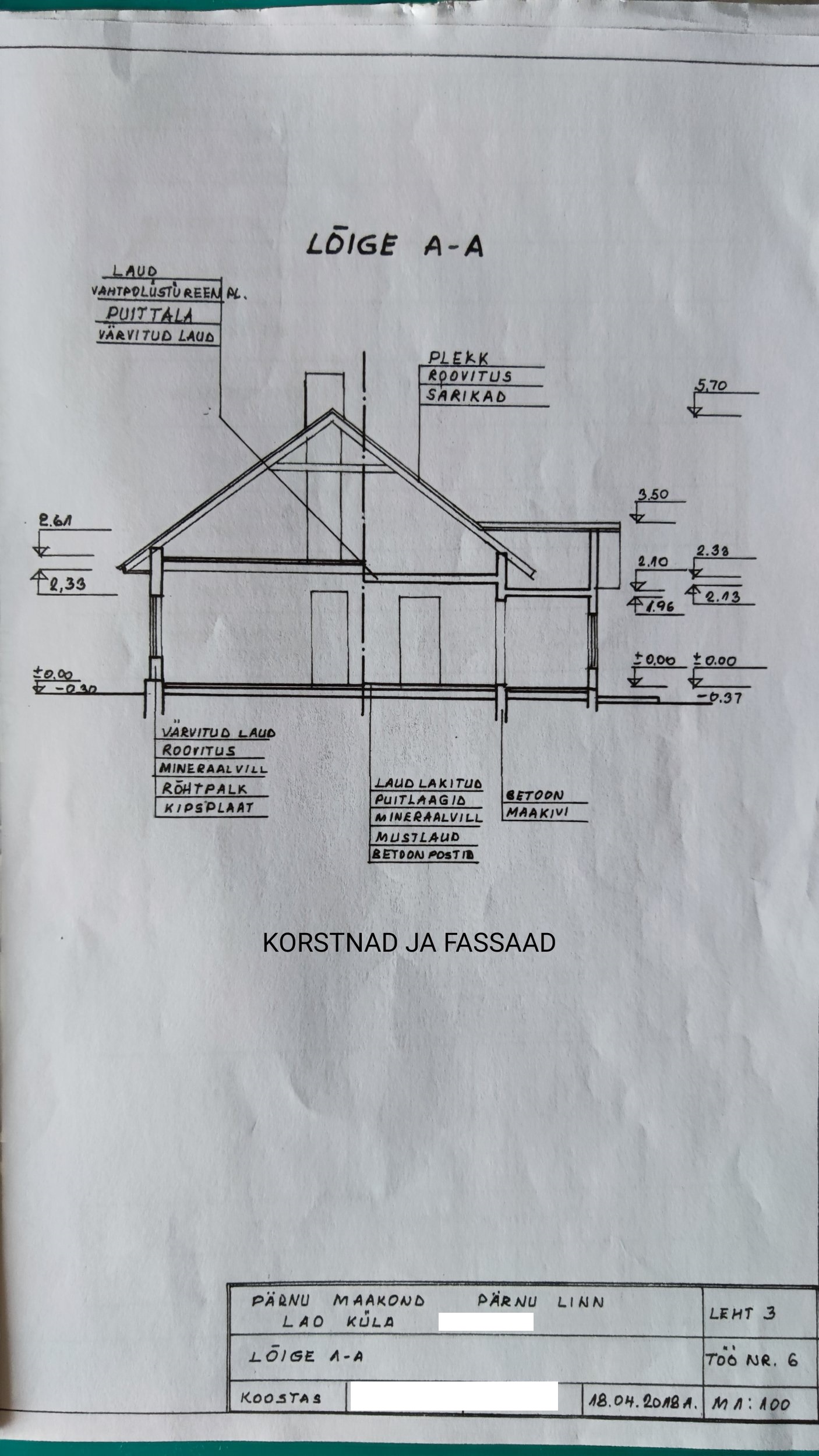 | Ehitusmaterjalid: | Töö tegija poolt |