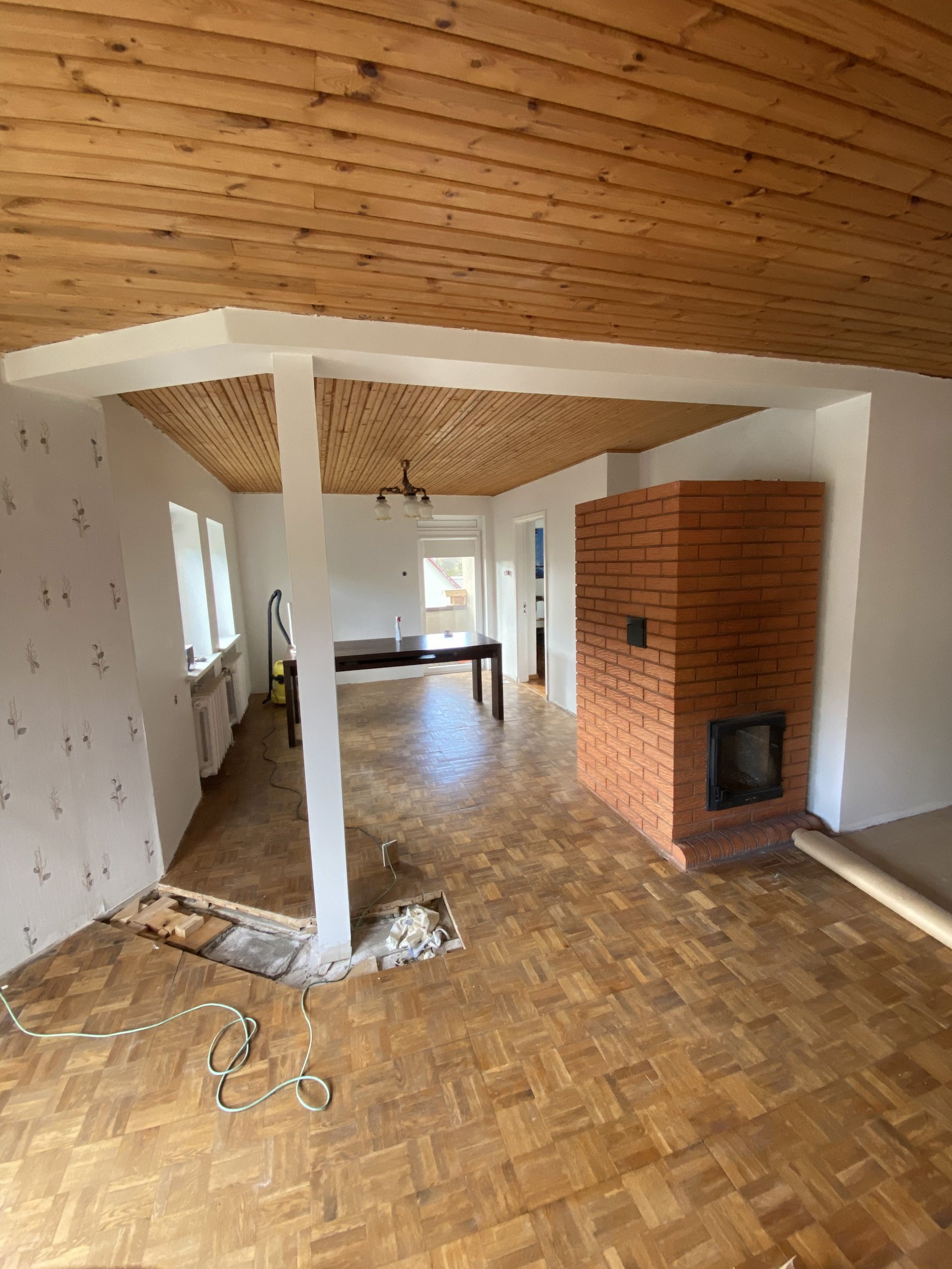 parketikilbi vahed tuleb kõik täita. Pildil olev auk tuleb täita analoogse põrandaga. hetkel on peal lakk ja tundub olevat kerglane kiht mitte paks. peale lihvimist katta laki/õli vms. Seda arutaks kohapeal ja võimaluse korral prooviks näidis tooni.