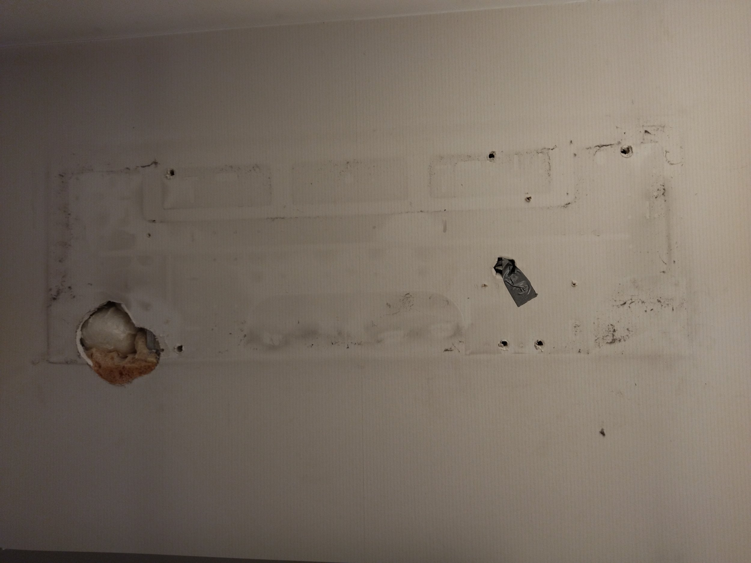 Õhksoojuspumba eemaldamisest seina jäänud aukude parandus, uue tapeedi paigaldamine.