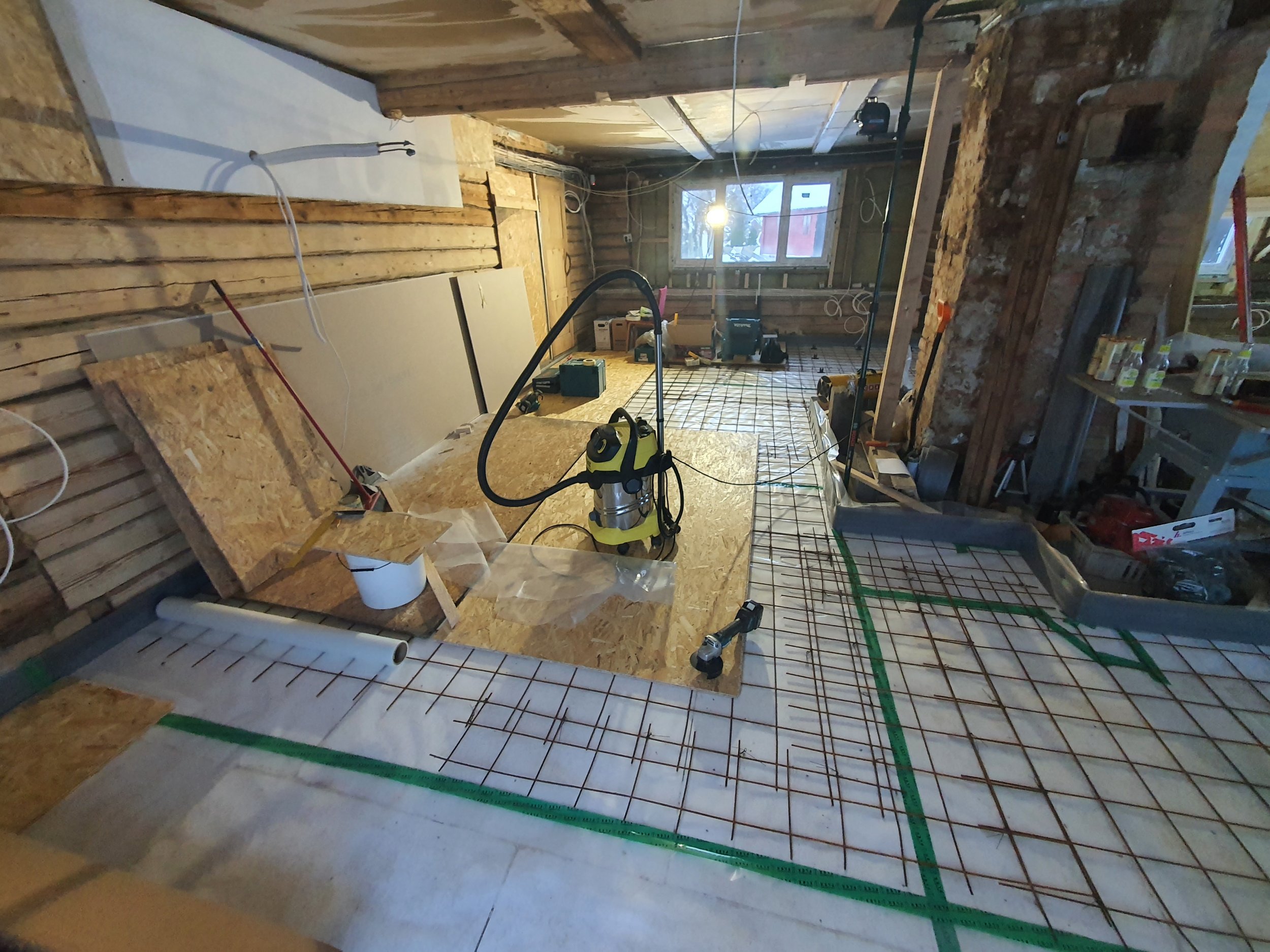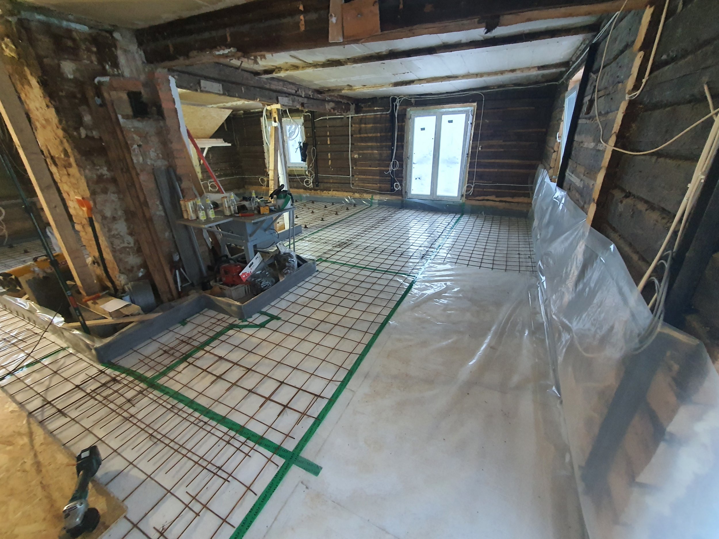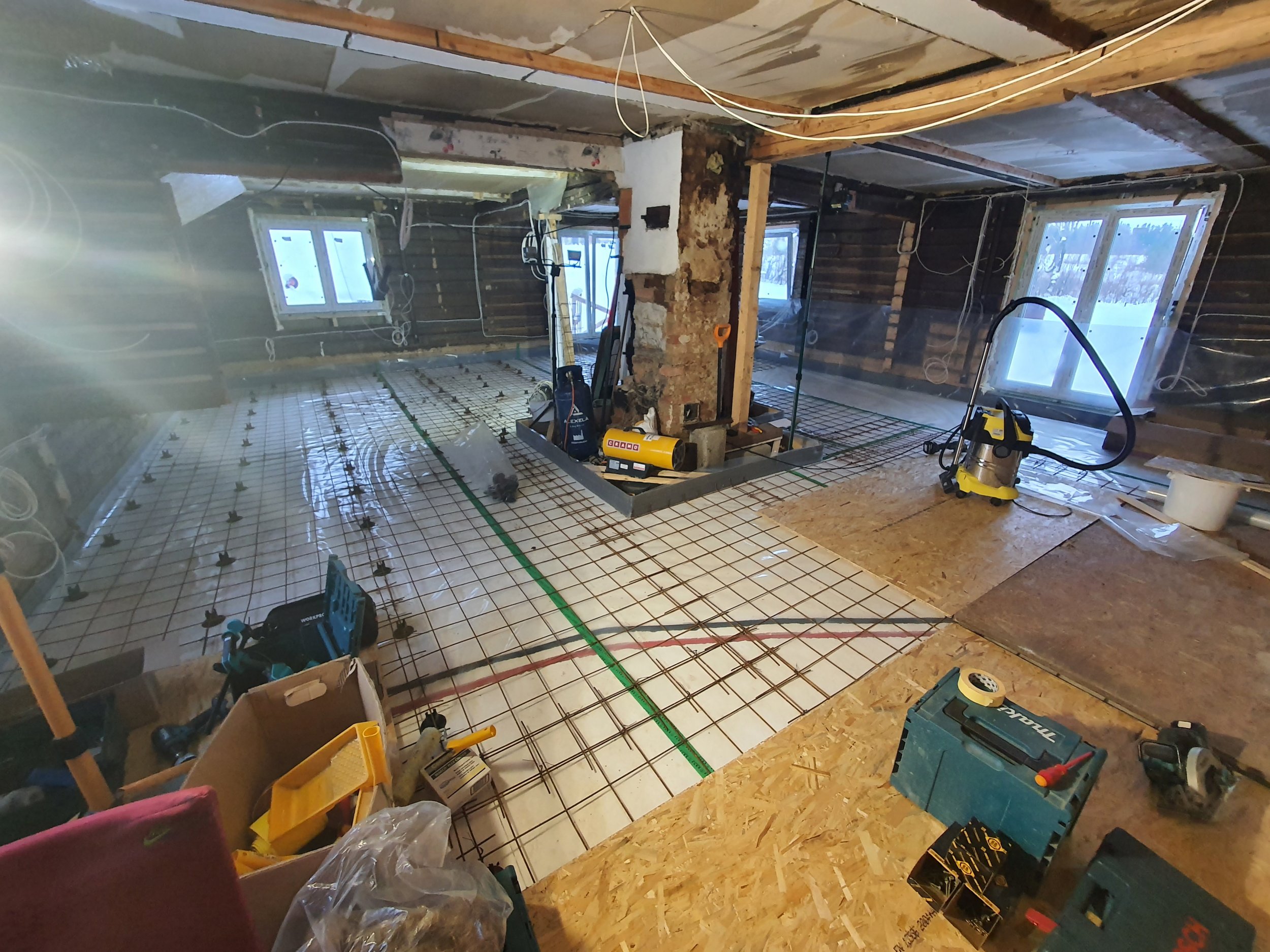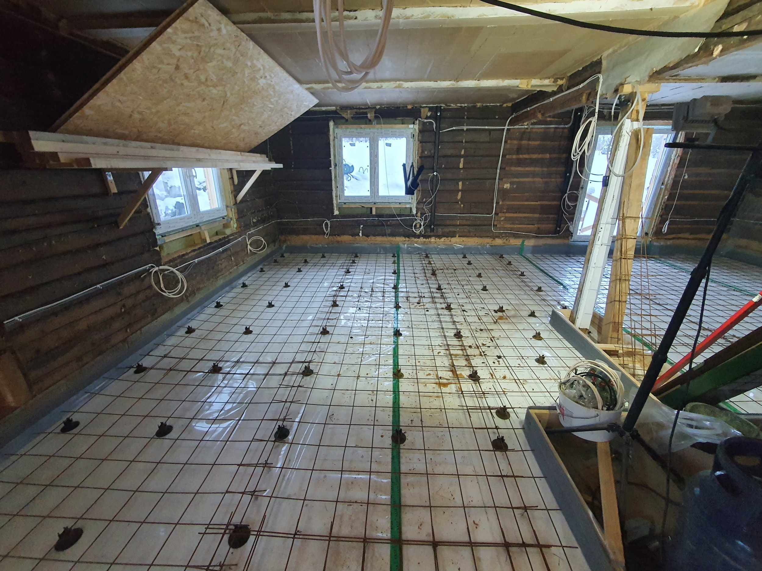Põrandakütte torude paigaldus armatuurvõrgule (toru läbimõõt 22mm).
