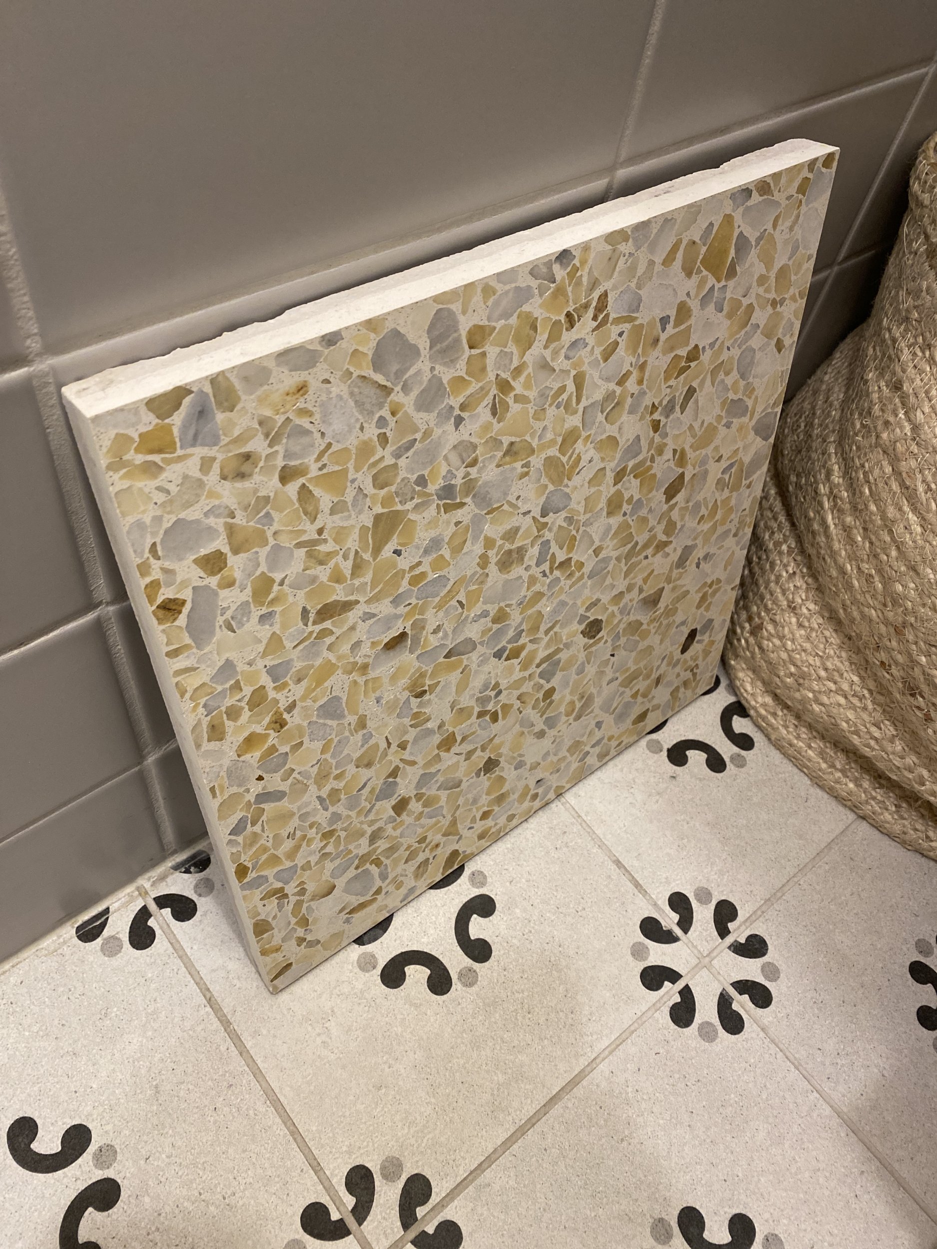 Vastavalt joonisele vaja ehitada 300x300x20 terrazzoplaatidest tualettruumi valamu ning paigaldada sanitaartehnika: äravoolutoru, segisti.