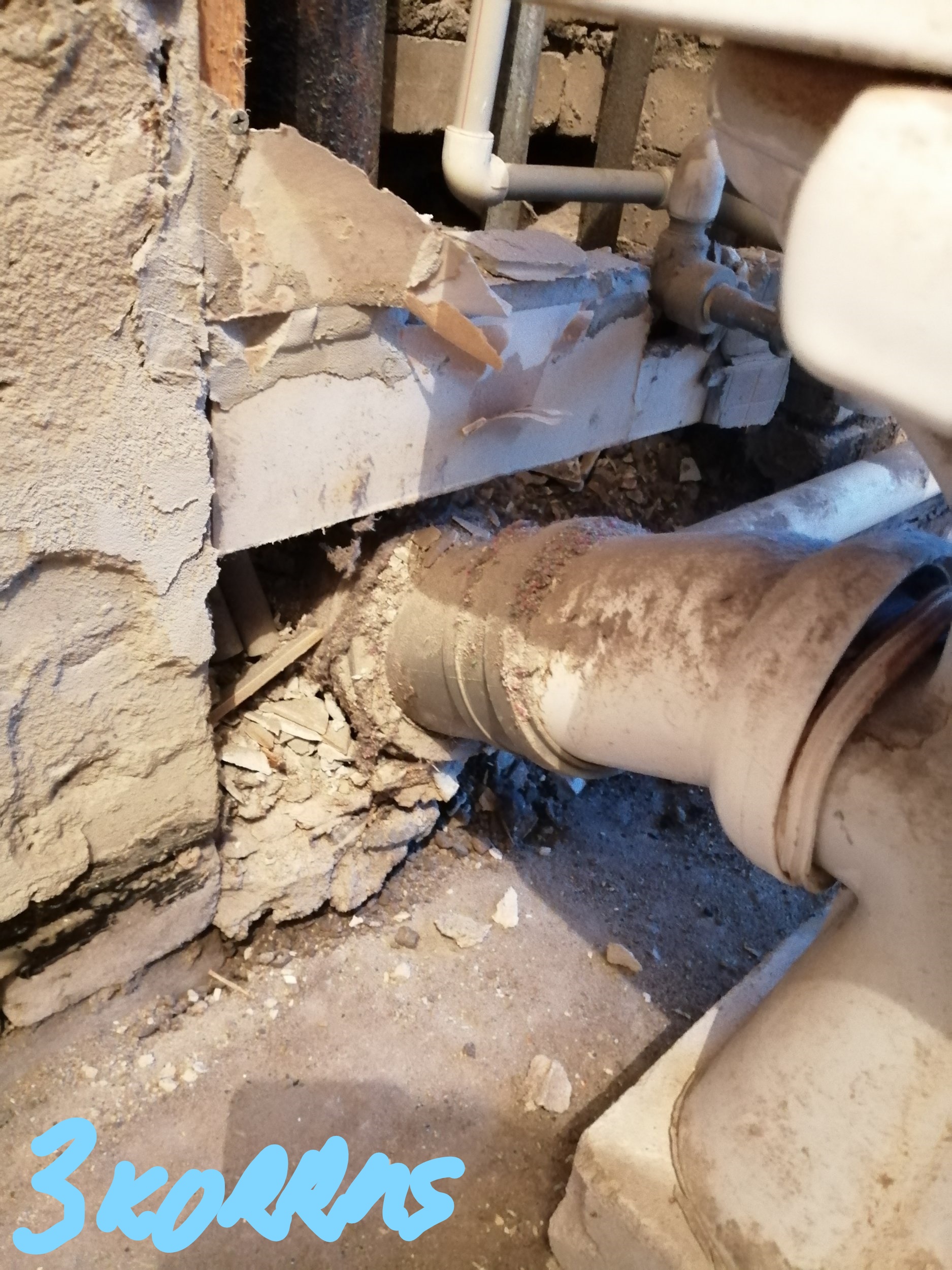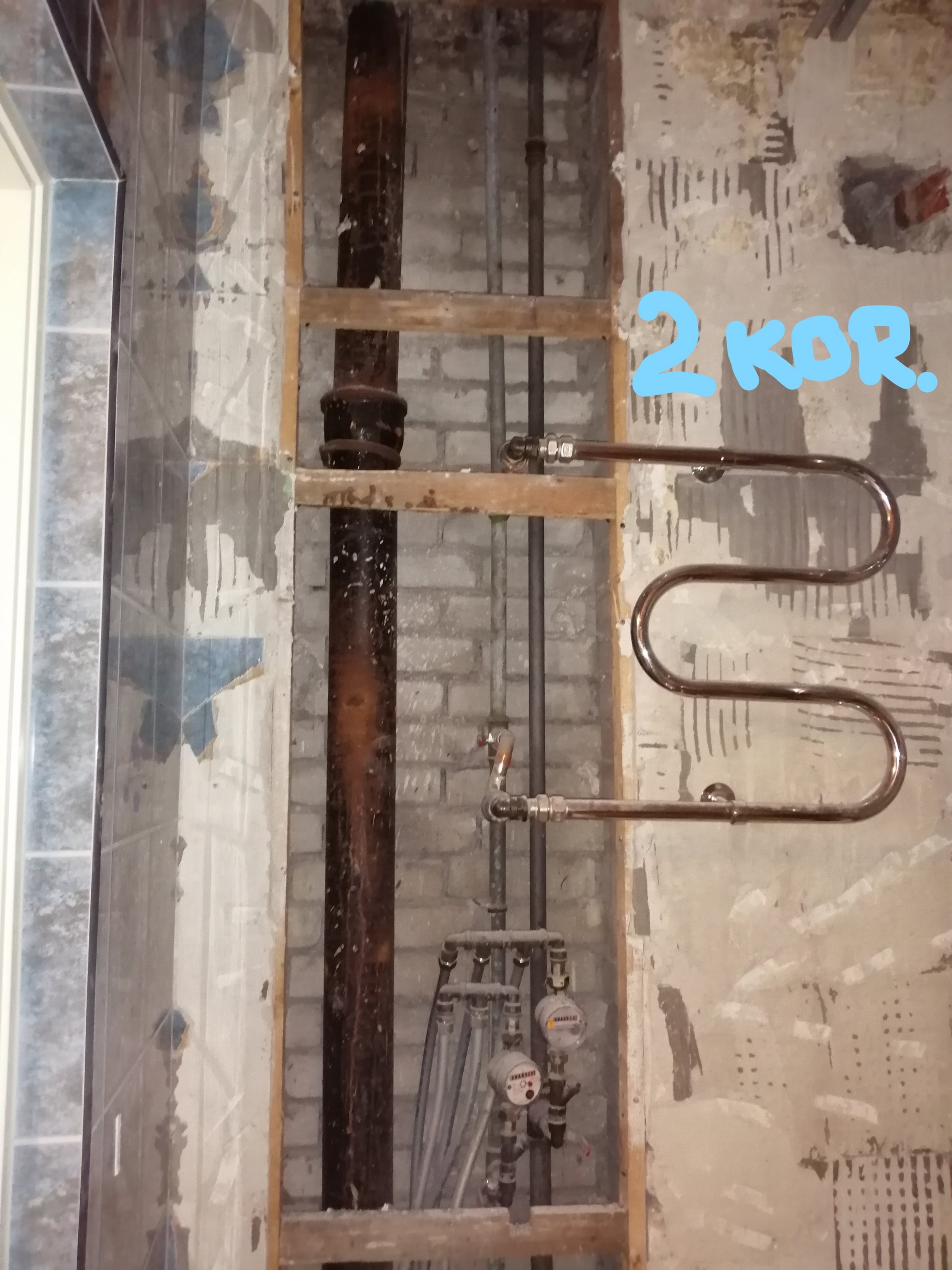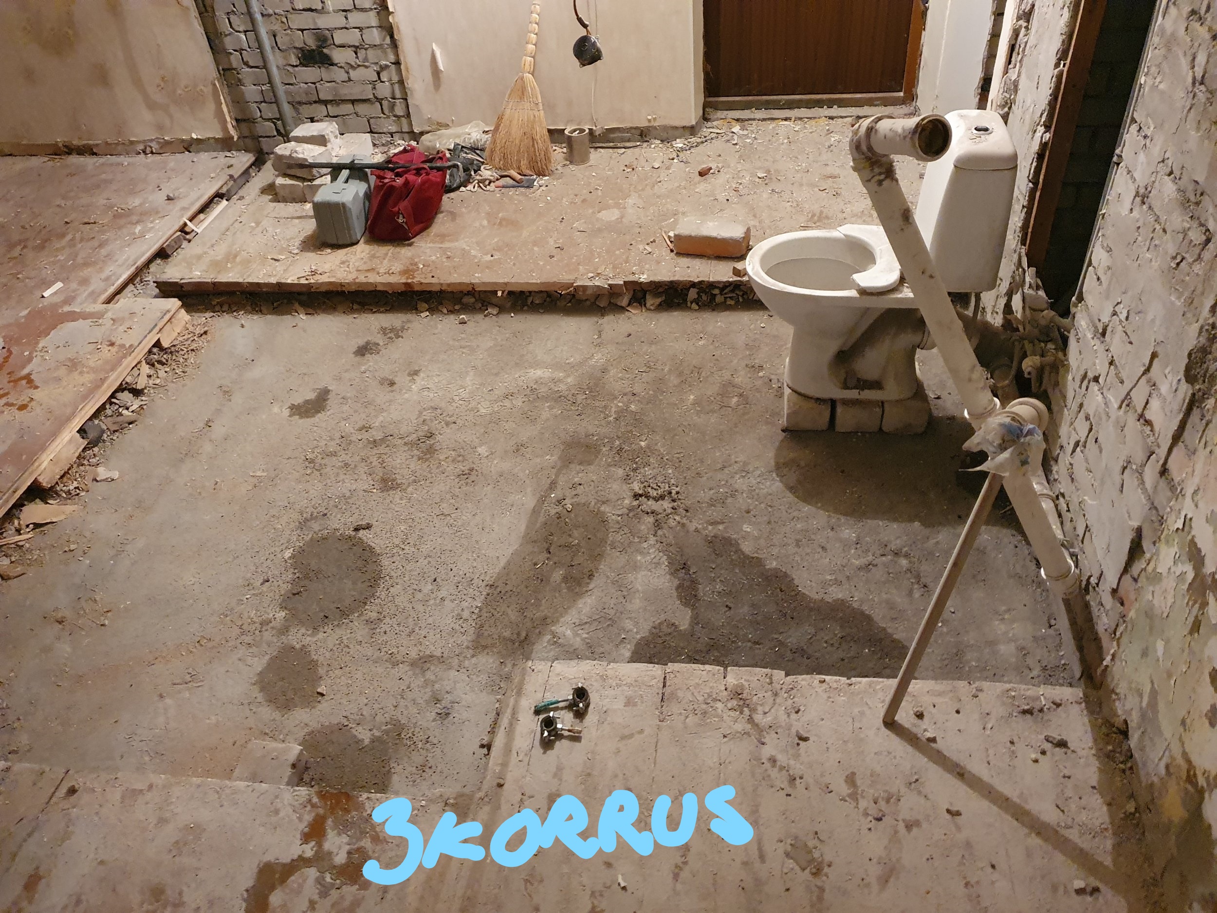 Esimese korruse korteris tuleb lisaks lammutada osaliselt sein, kus on püstak ja torud ning pärast torustiku vahetust katta auk "musta seinaga". Korteris elatakse püsivalt ja on tähtis, et antud korteris tööd lõpetaks esimesena (prahi koristamine ja augu katmine).