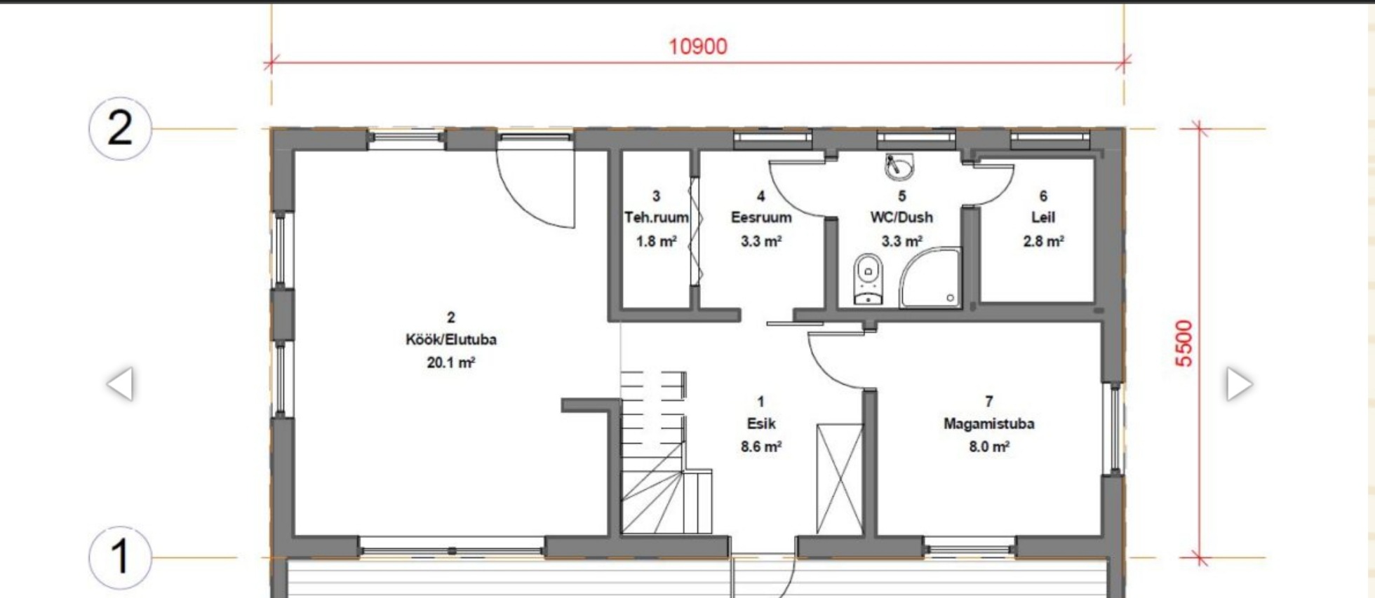 torud dušširuumi ning kööki