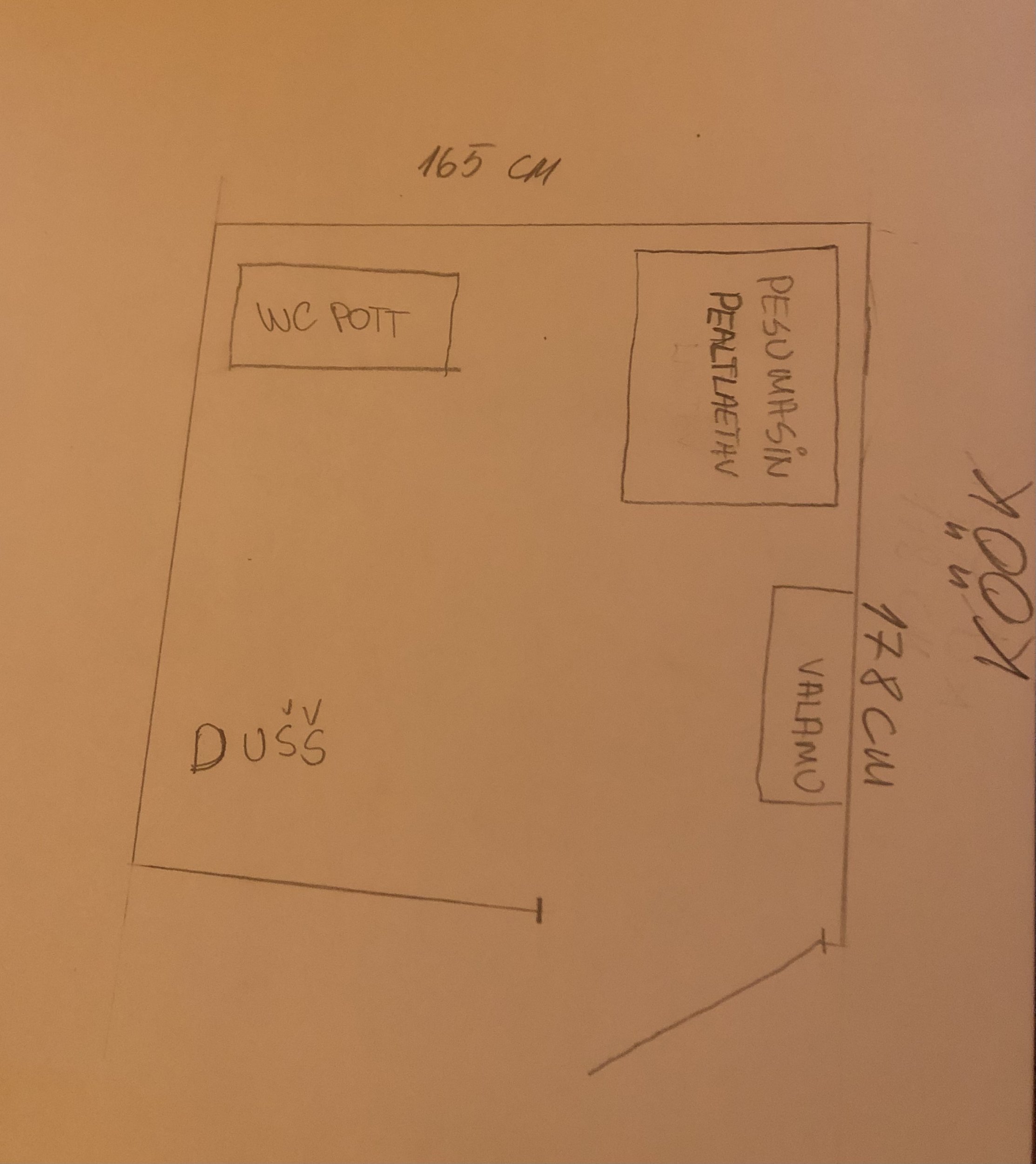WC potist otse on köögisein ja sealt peaks köögi äravool ka sinna nurka jõudma.