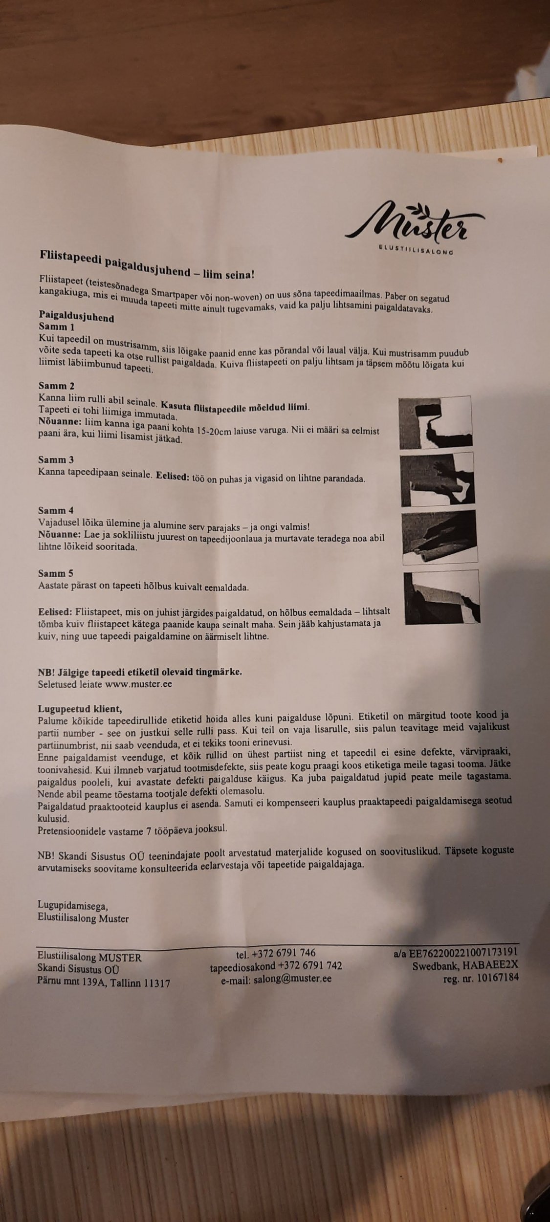 Teie poolt ainult tapeet. Tasudes sularahas ei lisandu km |