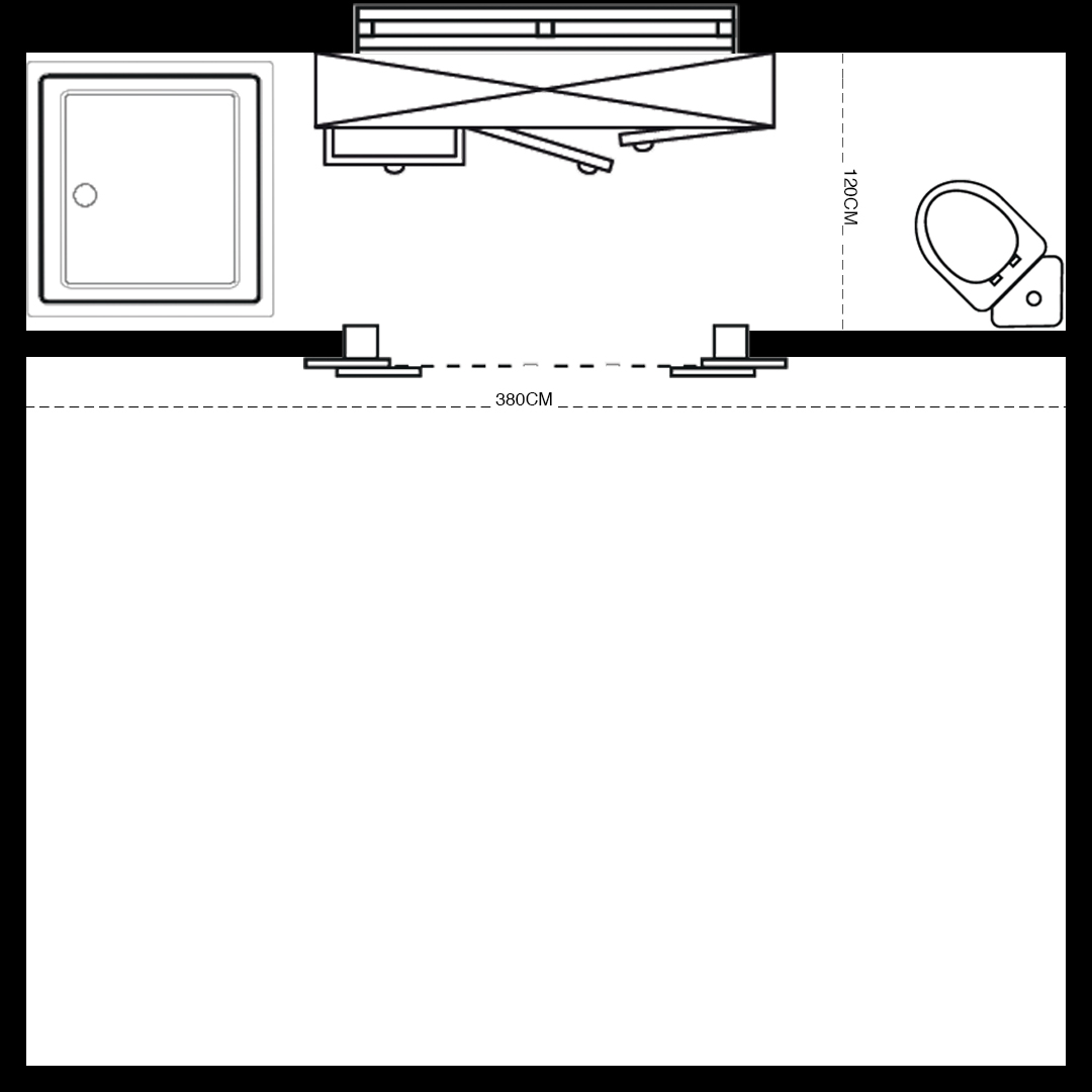 2) Vannitoa ühte nurka tuleb duššinurk koos dušialusega. Kuna toa kõrgus on ainult 200cm, siis trappi või mingit konkreetse äravooluga dussinurka ei saa ehitada vaid dussinurk tuleb ehitada kõrgendatult (nt dušialusega) või ehitada ise karkass, et duššinurk oleks põrandast kõrgemal ja aluse alt jookseks äravool seinast välja.