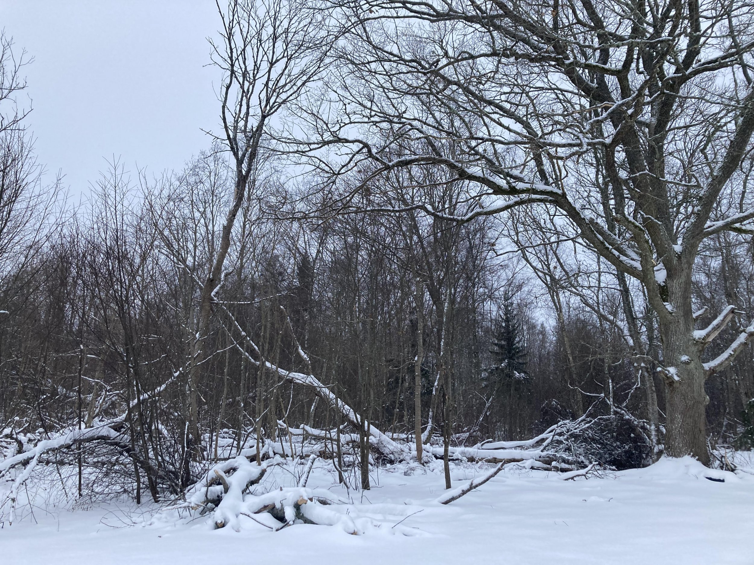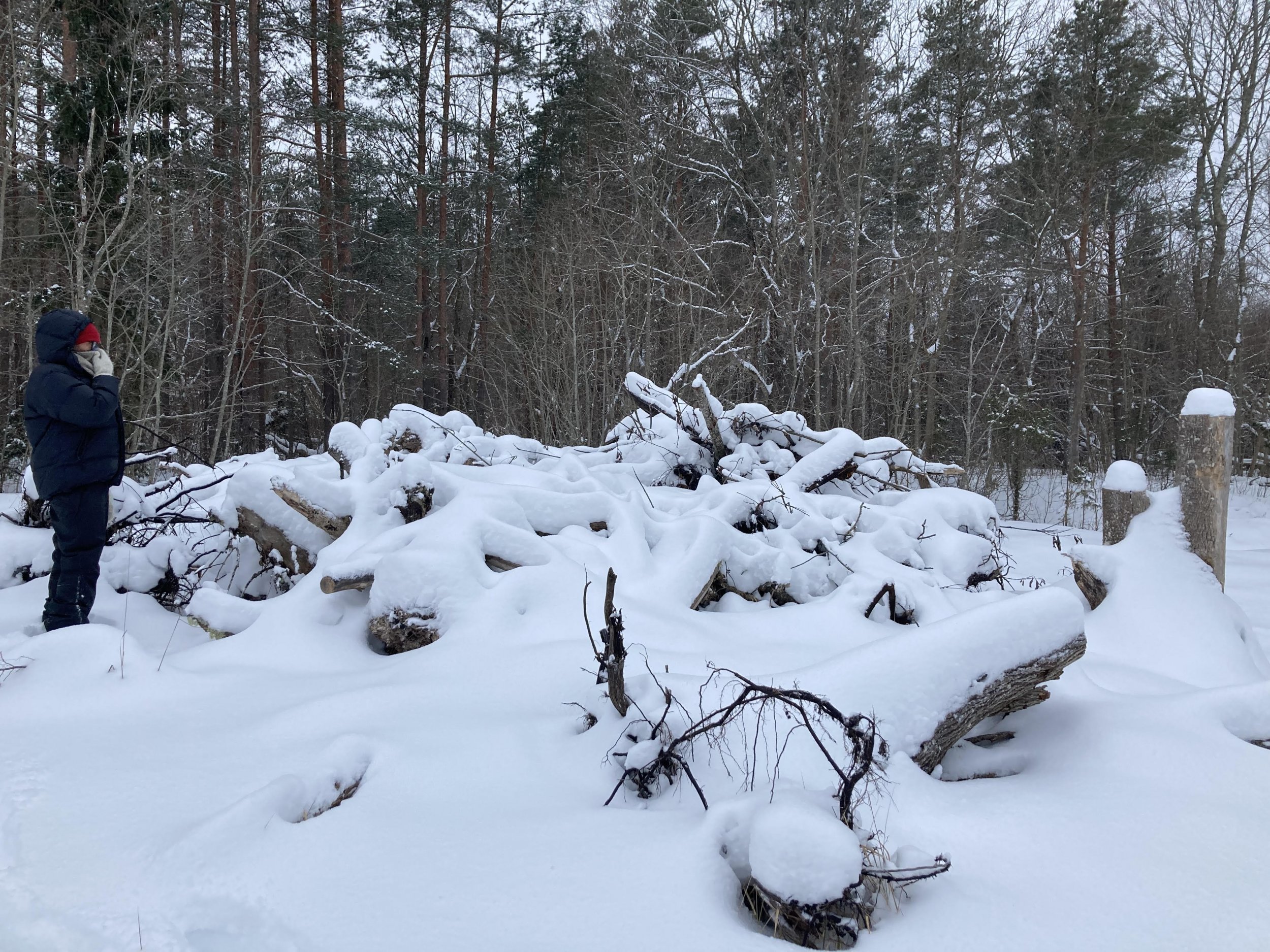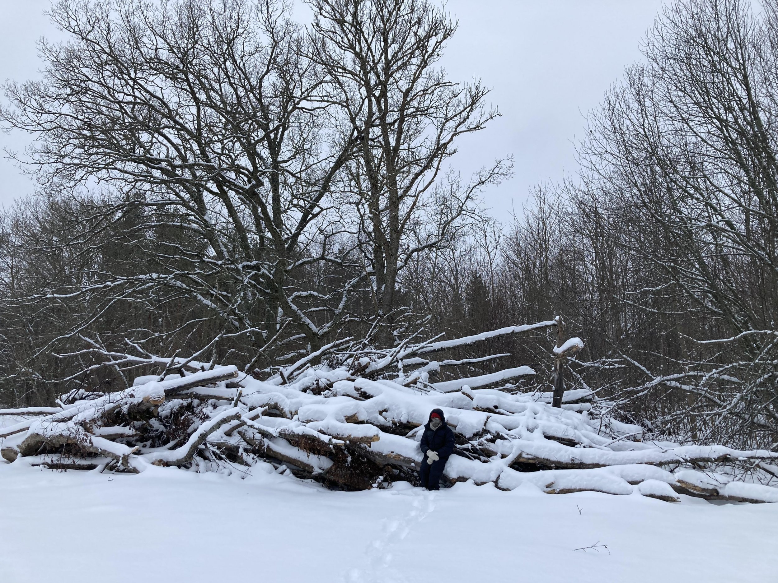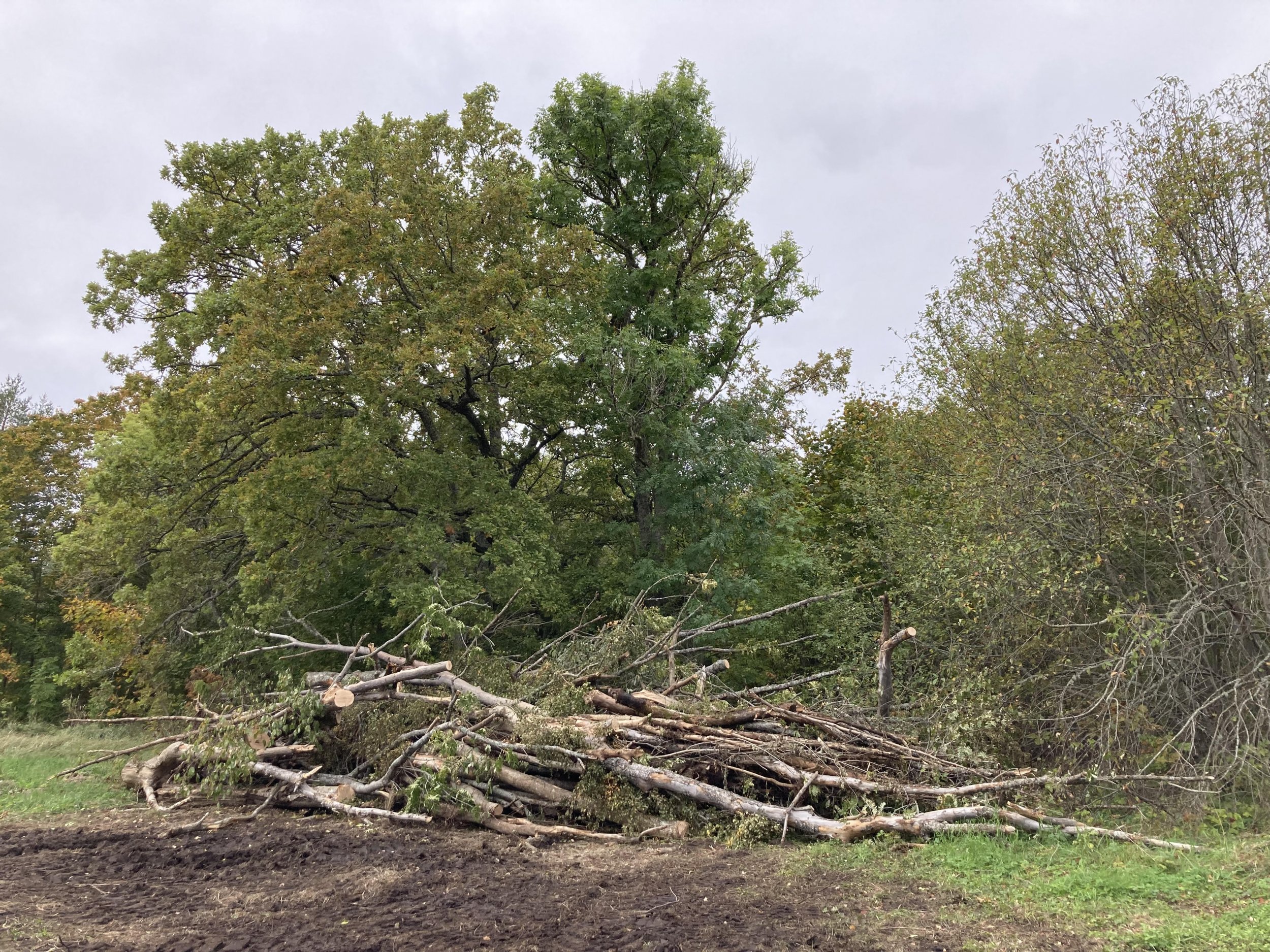 Puud on hunnikusse laotud suvi 2021. Osaliselt tegemist pikemalt maas olnud vanade langenud puudega, mis on territooriumilt hunnikusse veetud.