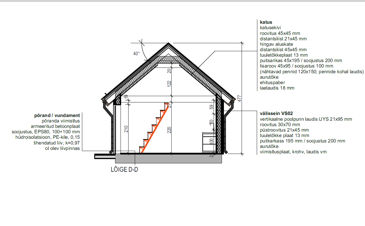 Pakkumises ehitusprojekt eelprojekti staadiumis vastavalt eelprojektile esitatavatele nõuetele. Kasutusloaga/kasutusteatisega seonduvat pakkumises ei ole. Ehitusloa taotlemine on riigilõivuga. Ehitusteatise esitamine on riigilõivuvaba. Pakkumine ei sisalda hoone mõõdistust, riigilõivusid, tehnosüsteeme/eriosasid, energiamärgist, uuringuid ega tasulisi kooskõlastusi ja taotlusi.