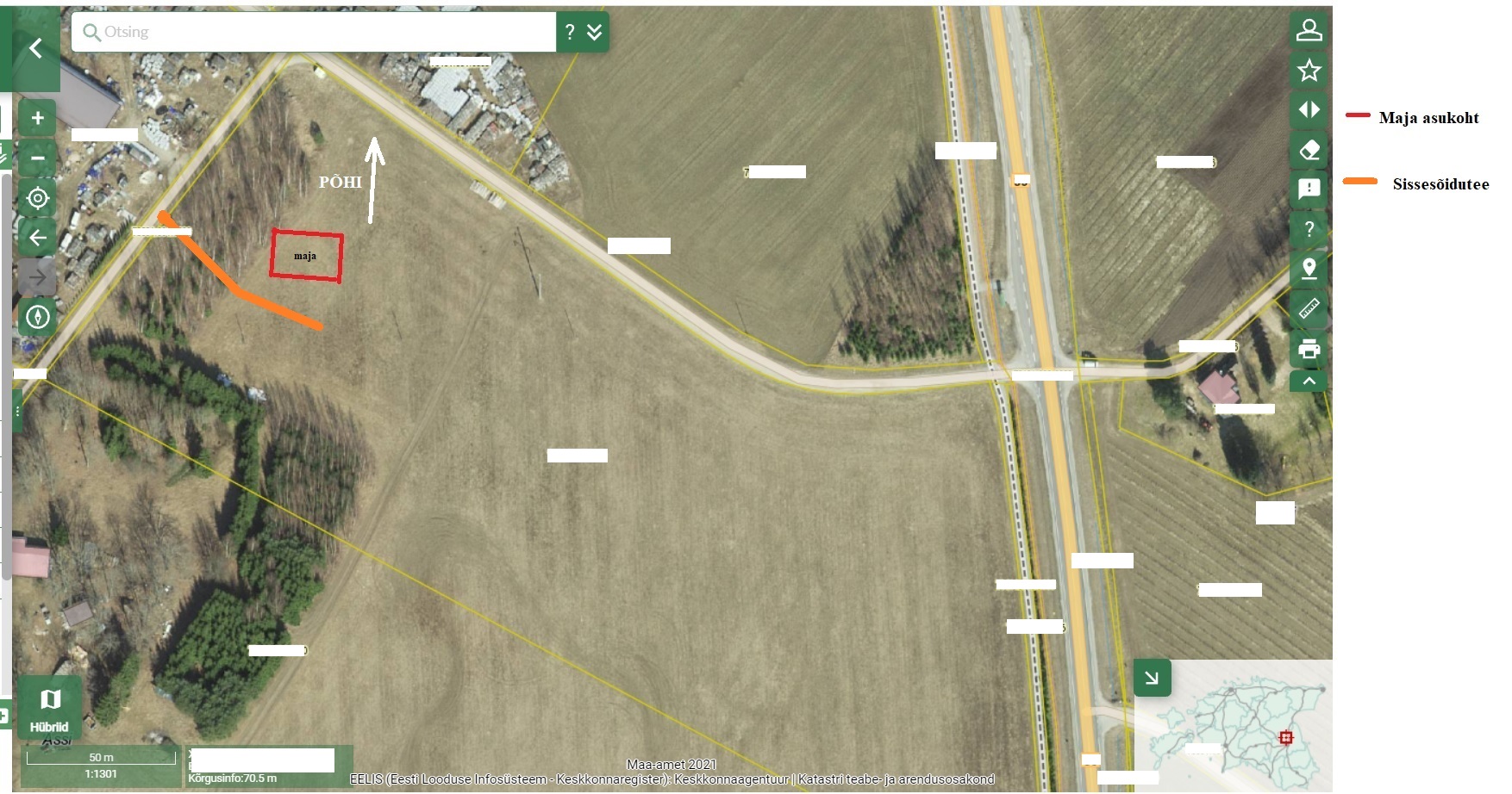 Lisaks kaardil märkida ära ka maja juurde minev tee
