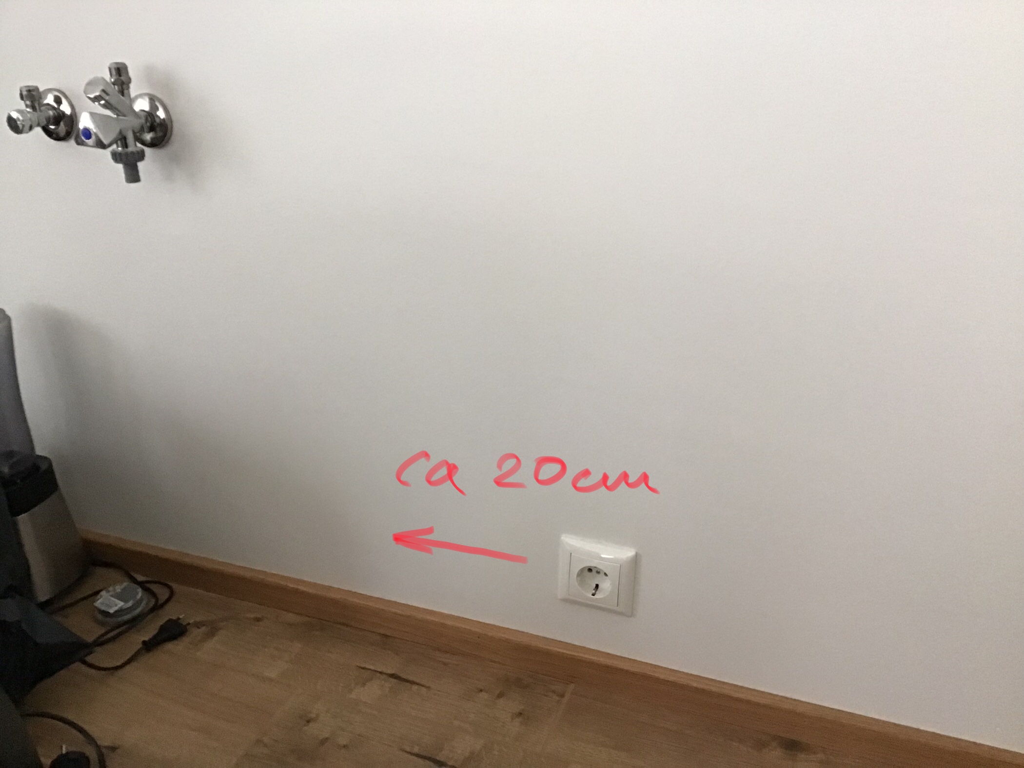 2. pistik on 15cm kõrgusel ja peab paiknema ca 20cm vasakul.