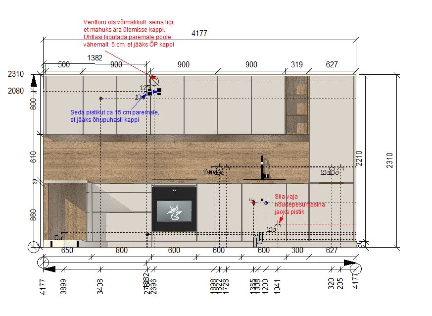 Juhtmed pistikuteni kulgevad seina sees, tõenäoliselt horisontaalselt. Seepärast tuleb arvestada nii uute pesaaukude kui ka kaabli soonte seina freesimisega.