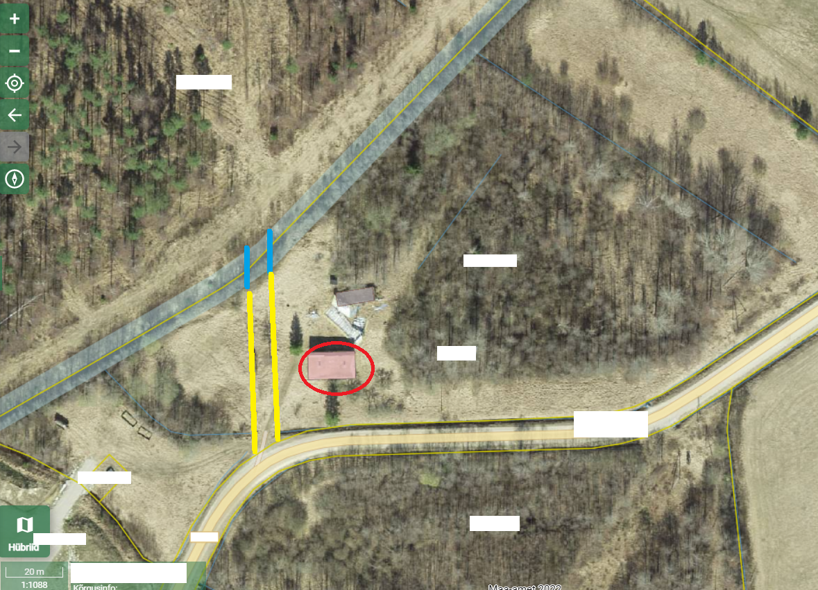Silikaadi saab ära kasutada et teha krundile tee (helerohelisega märgitud) ja truup (sinisega märgitud).