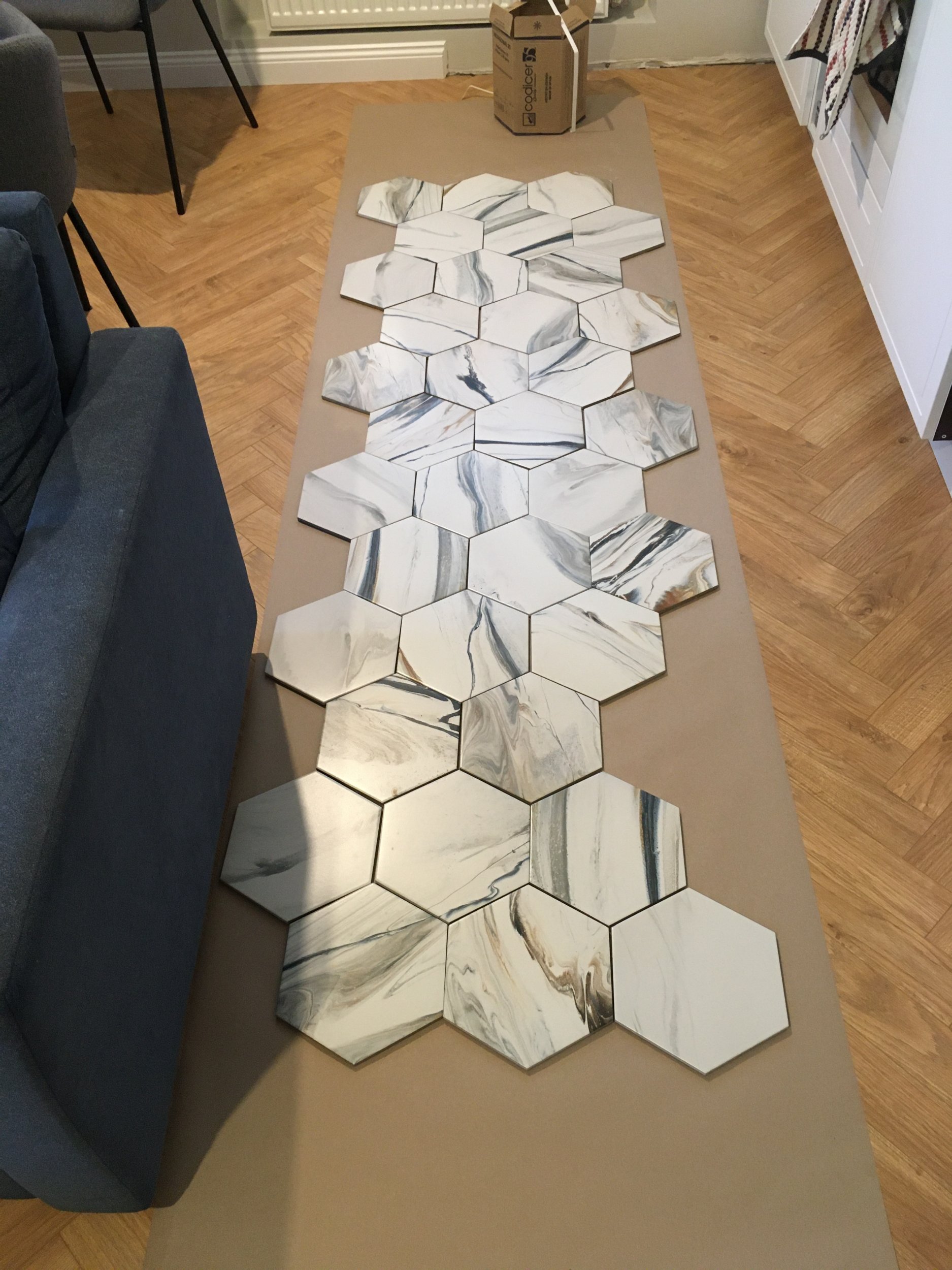 Vaja oleks plaatida köögi töötasapinna tagune sein. Mõõdud on 550x2200. olemas on plaat, segu, vuugitäidis, silikoon ja otsaliist. Seinas on ka kolm pistikupesa.