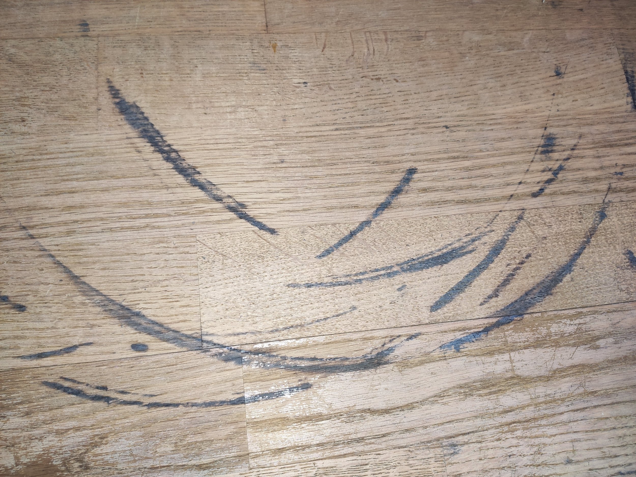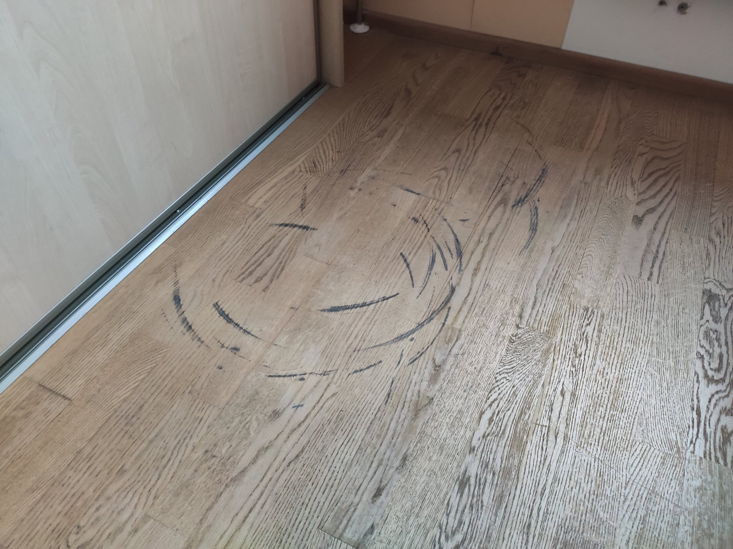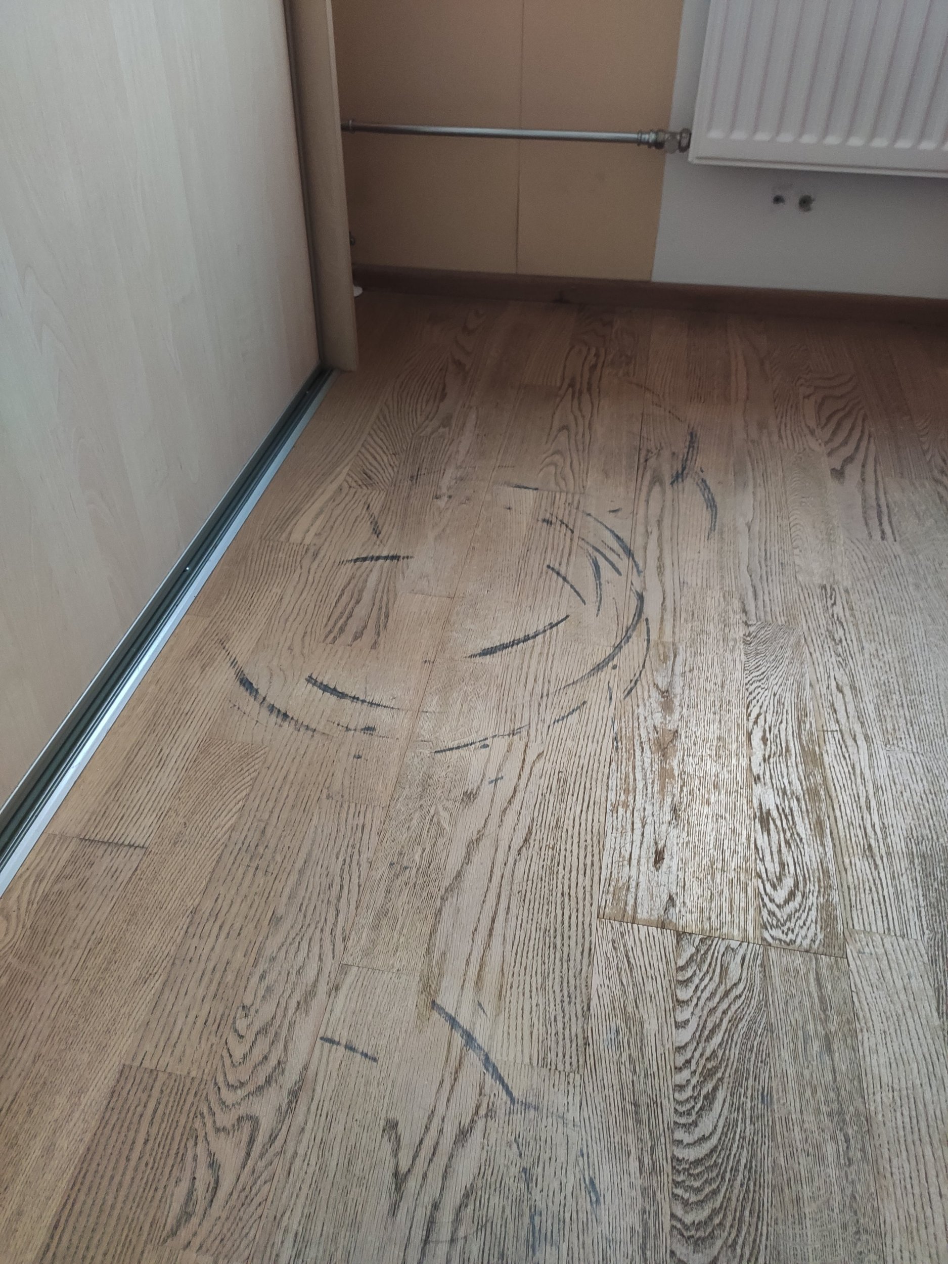 Puitparketile on suudetud tekitada fotodel olevad jäljed. Erinevate vahenditega eemaldamine ei õnnestunud. Võimalik, et tuleb põrand lihvida.