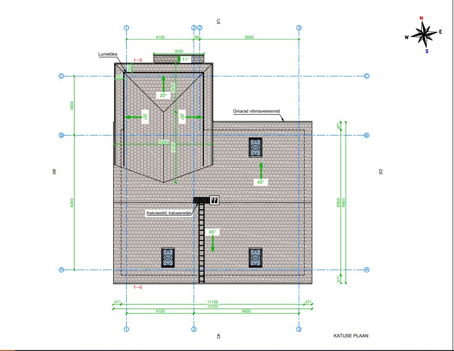 Soetanud on aknad, OSB plaadid ning bituumensindlid (neeluriba, aluskate, räästa ja katuse ribad.), korstnakivid. Töö teostajale jääb ülejäänud vajaliku materjali soetamise.