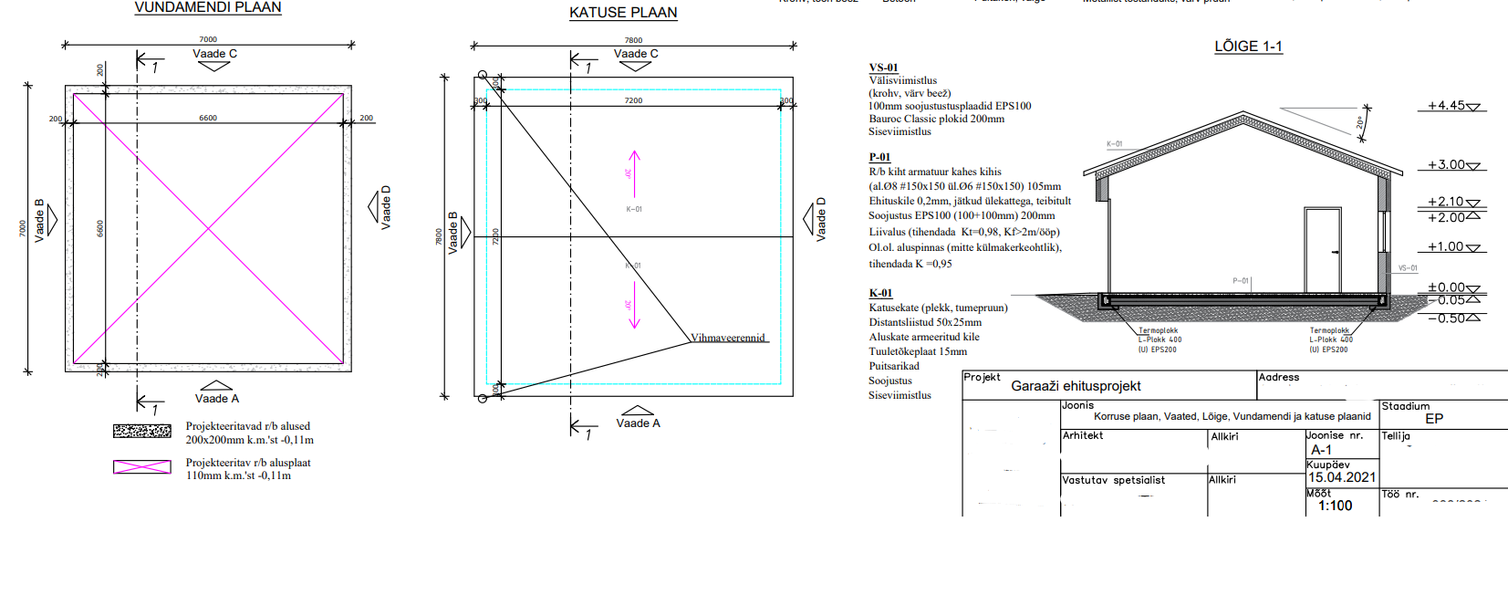 | Ehitusmaterjalid: | Töö tegija poolt |