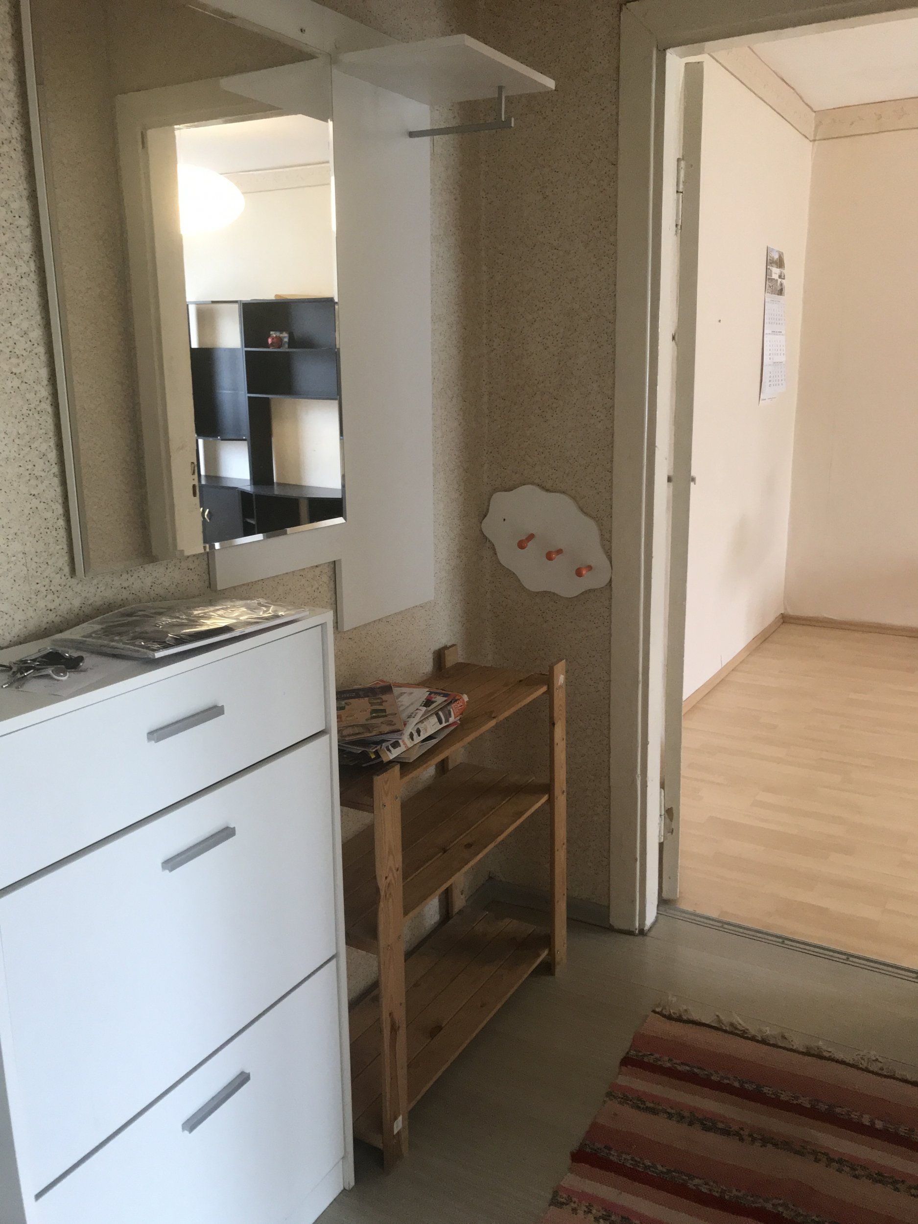 Töö sisu: vana mööbli (diivan, 2xriidekapp, voodi, köögimööbel, 5xuksed) utiliseerimine, elektrijuhtmete vahetus, vannitoa kapitaalremont, köögi ja vannitoa vaheseina lammutamine, seinte ja lagede pahteldus/värv.