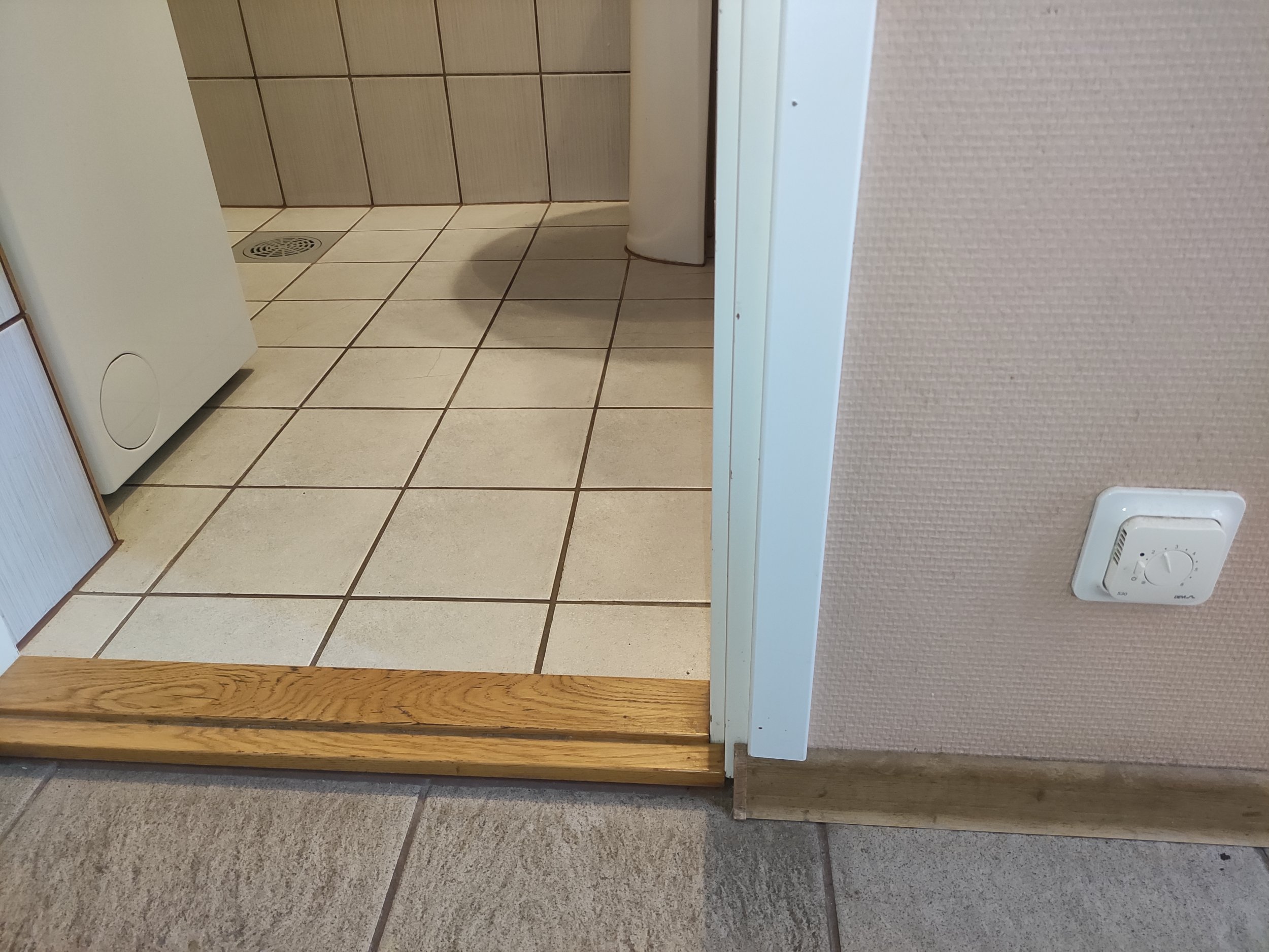 Pärnu rannarajoonis puitmaja II korrusel on toimunud väike vajumine. Duširuumi plaaditud põrand (2.1m2), kus all hüdroisolatsioon ja el.põrandaküte, laseb vett läbi I korrusele.
