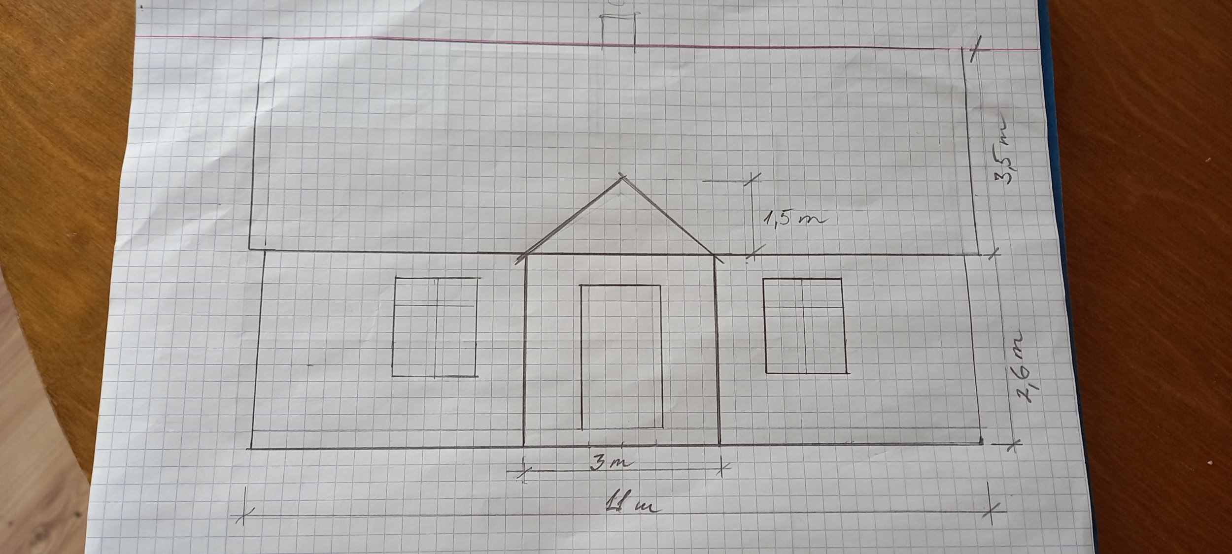 Maja plaani mõõdud: 11x9 m; kõrgus soklist räästakastini 2,6 m