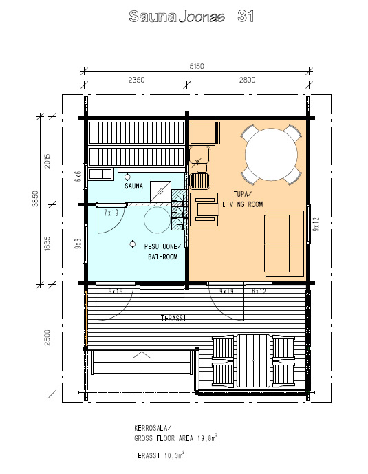 -Saunmaja pindala 19,8m2