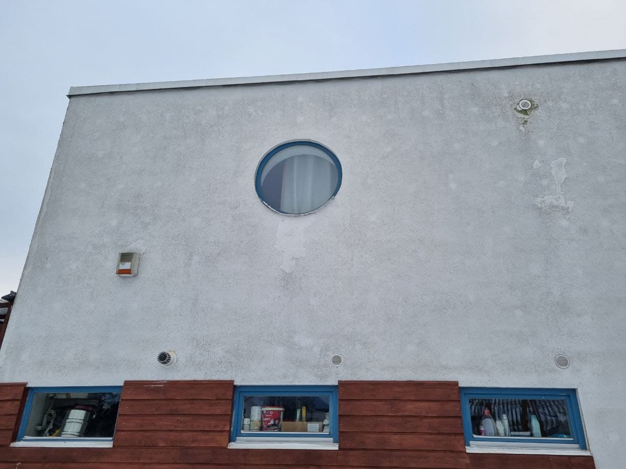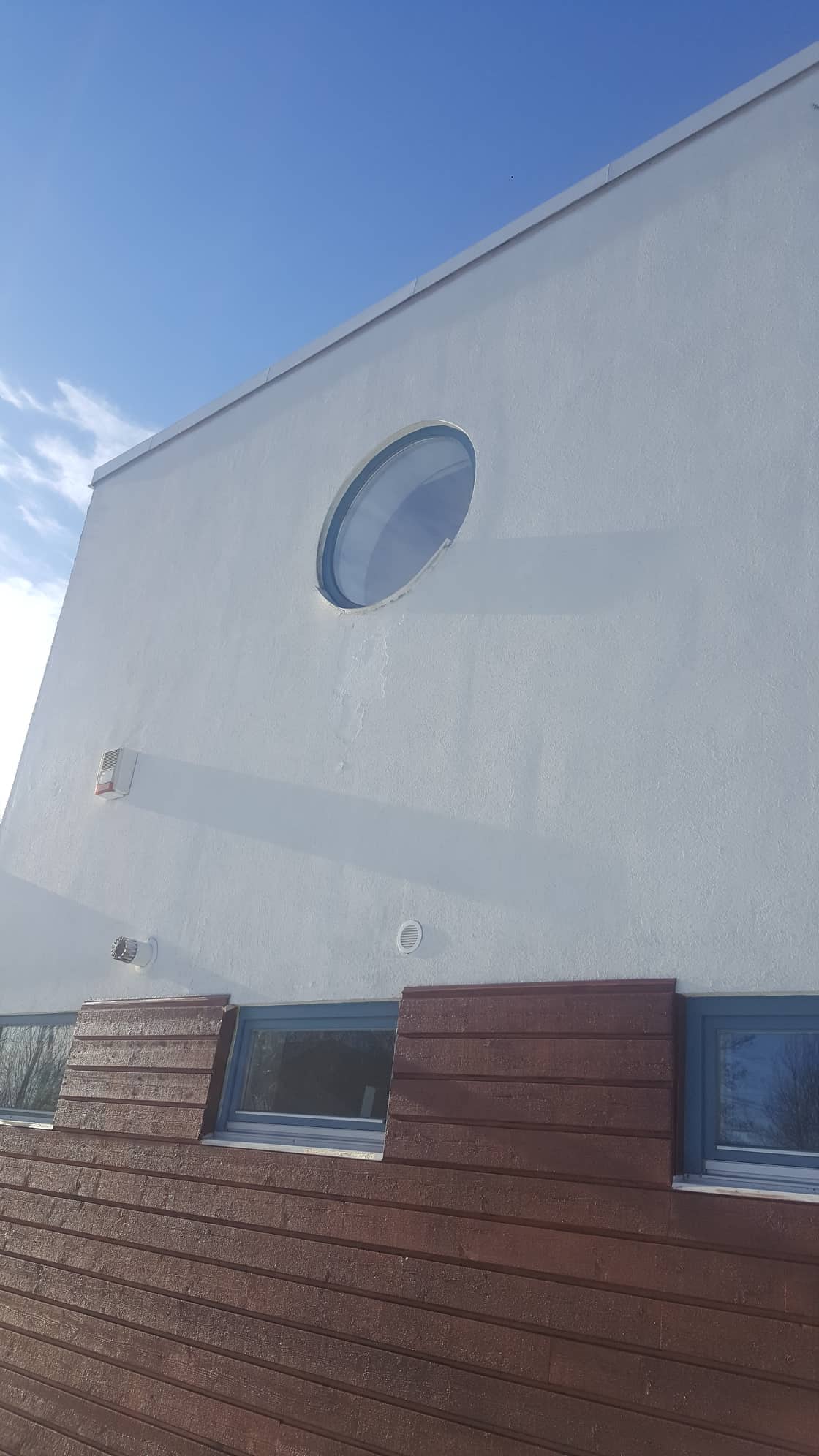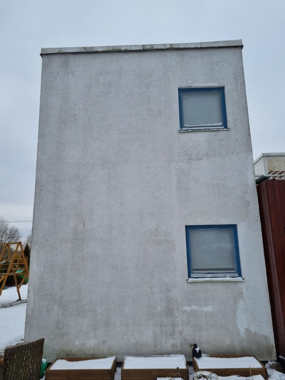 Maja fassaadi krohv on mõnedes kohtades lagunenud, vaja oleks kogu fassaad uuesti üle krohvida ja värvida (värv valge). Töö maksumus peab sisaldama kõike - materjalid, akende kiletamine, enda järgi koristamine jm vajalik tööde teostamiseks.