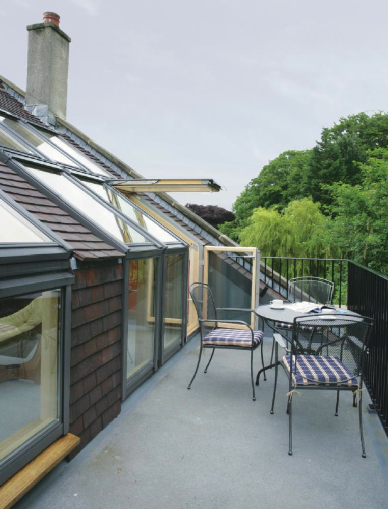 Ümberehitada olemasoleva varikatuse mõttetu tühi "prisma" - paigaldada sinna VELUX GEL/VEA 3065 (või alternatiivne lahendus) ja välja ehitada katuseterrass-piire.
