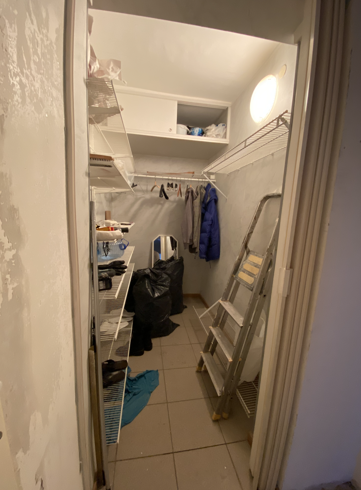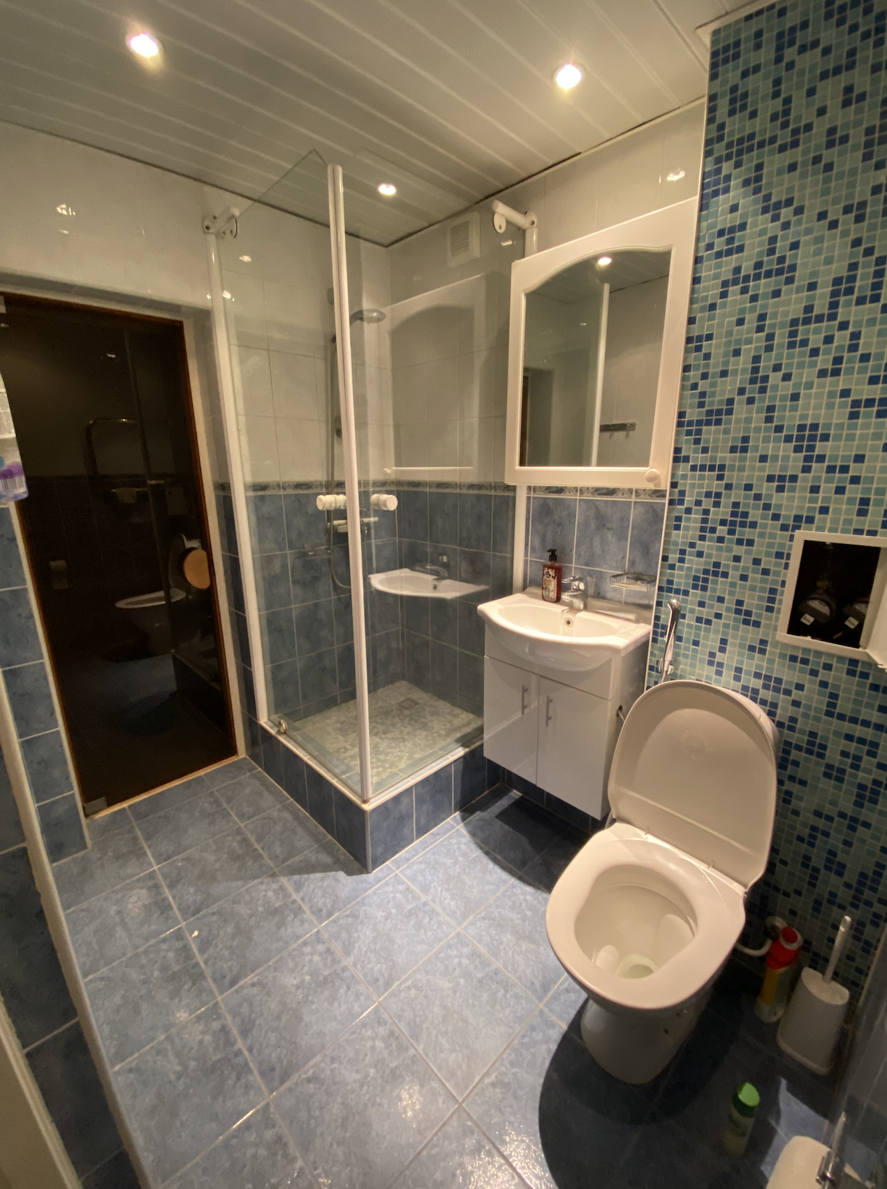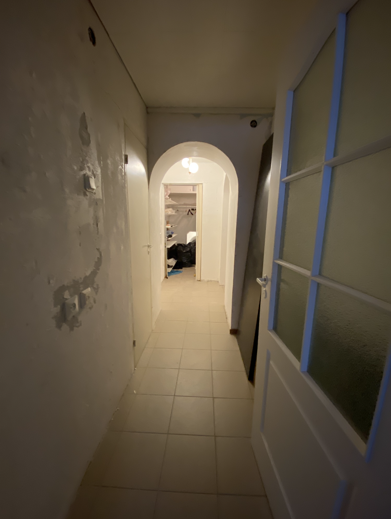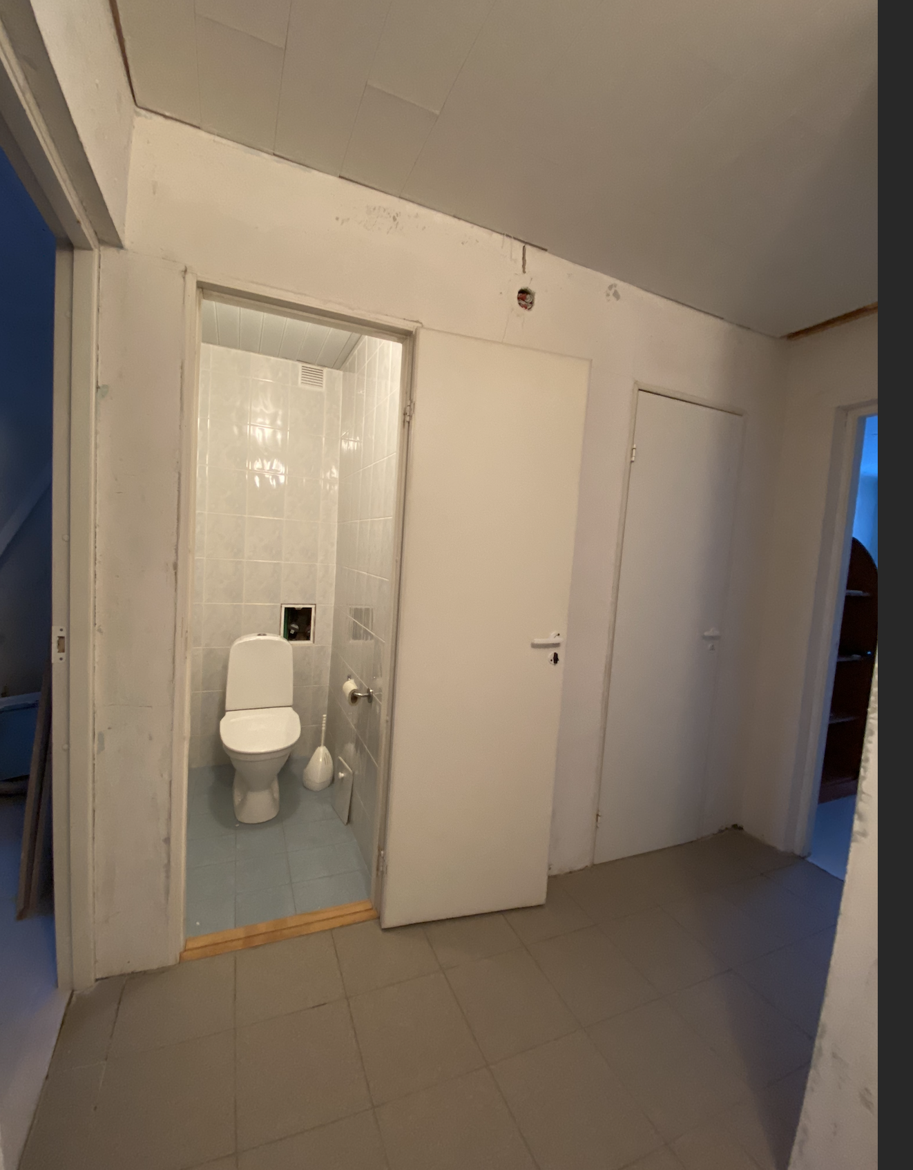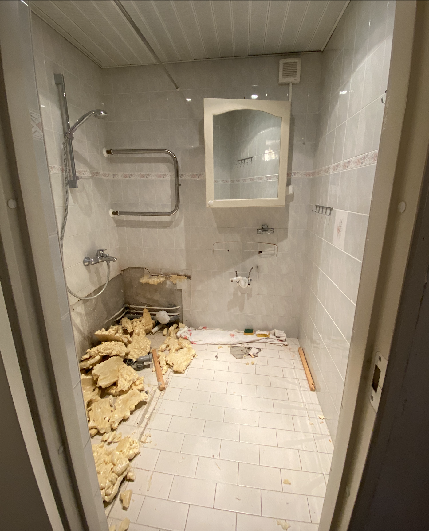ülemise wc ja vannitoa seinte lammutus + põranda plaatide eemaldamine