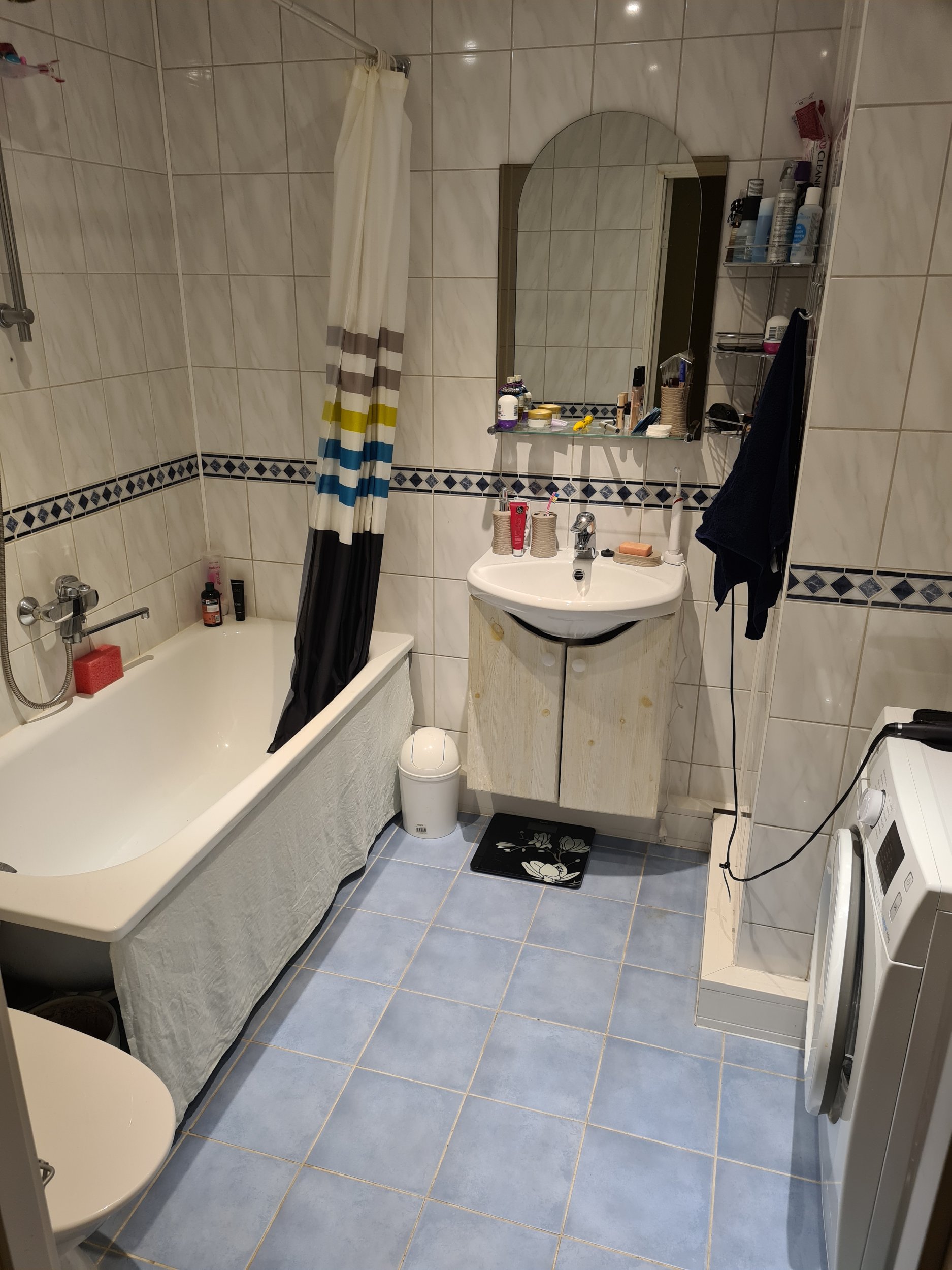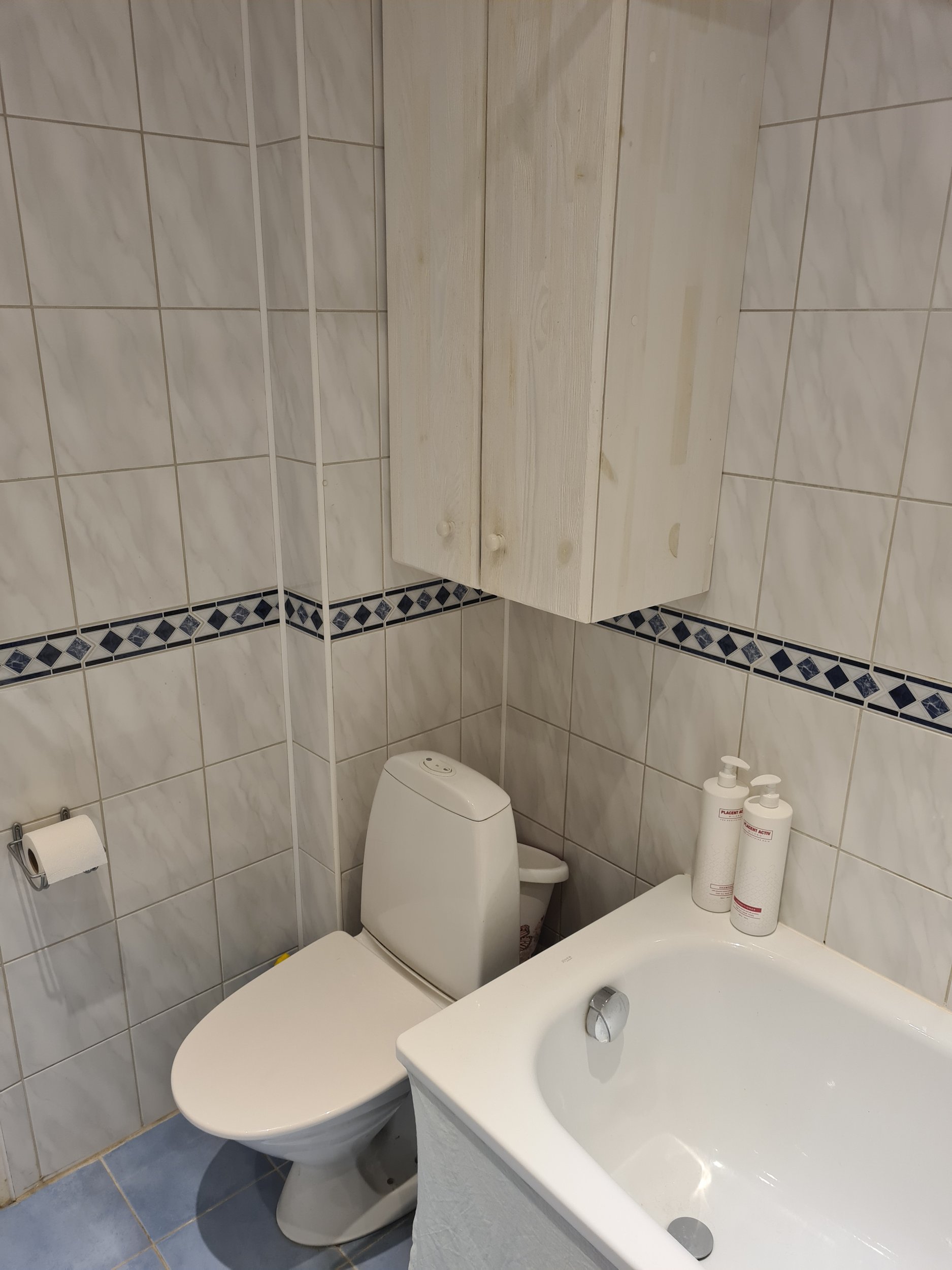 Vannitoa mõõdud on 2,15m x 2,4m, kõrgus 2,3 m. Korter asub 3.korrusel, lifti pole.