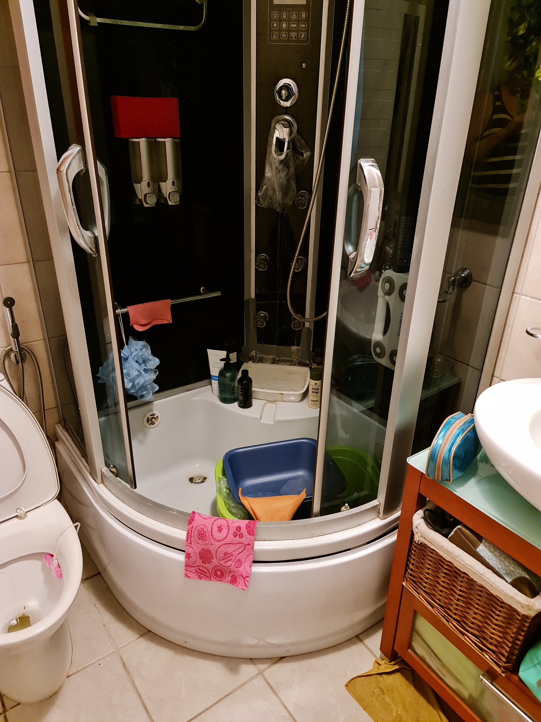 Uue kabiini aluse puhastamine. Uue kabiini paigaldus. Võmalike lekete kontroll ja uue kabiini test. |